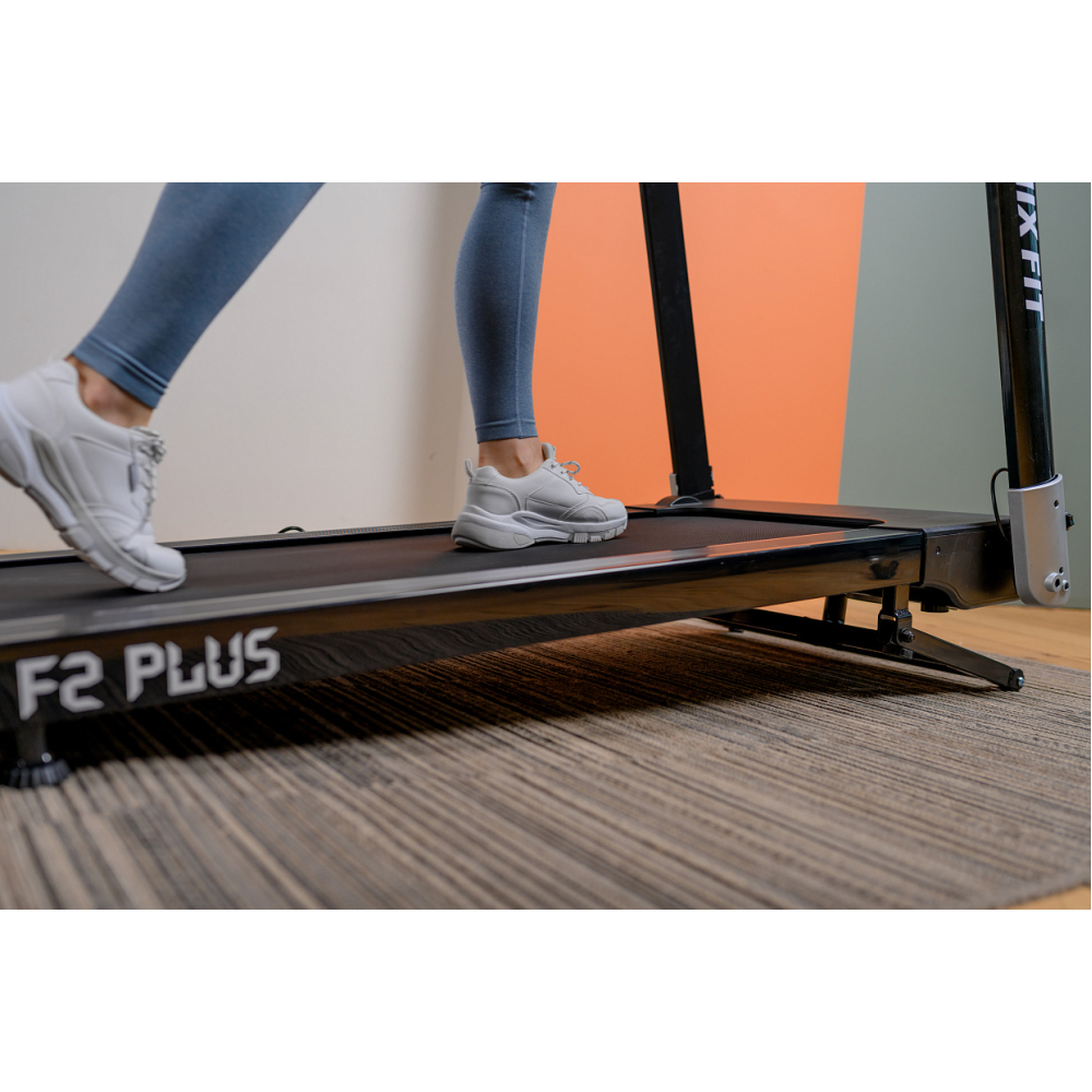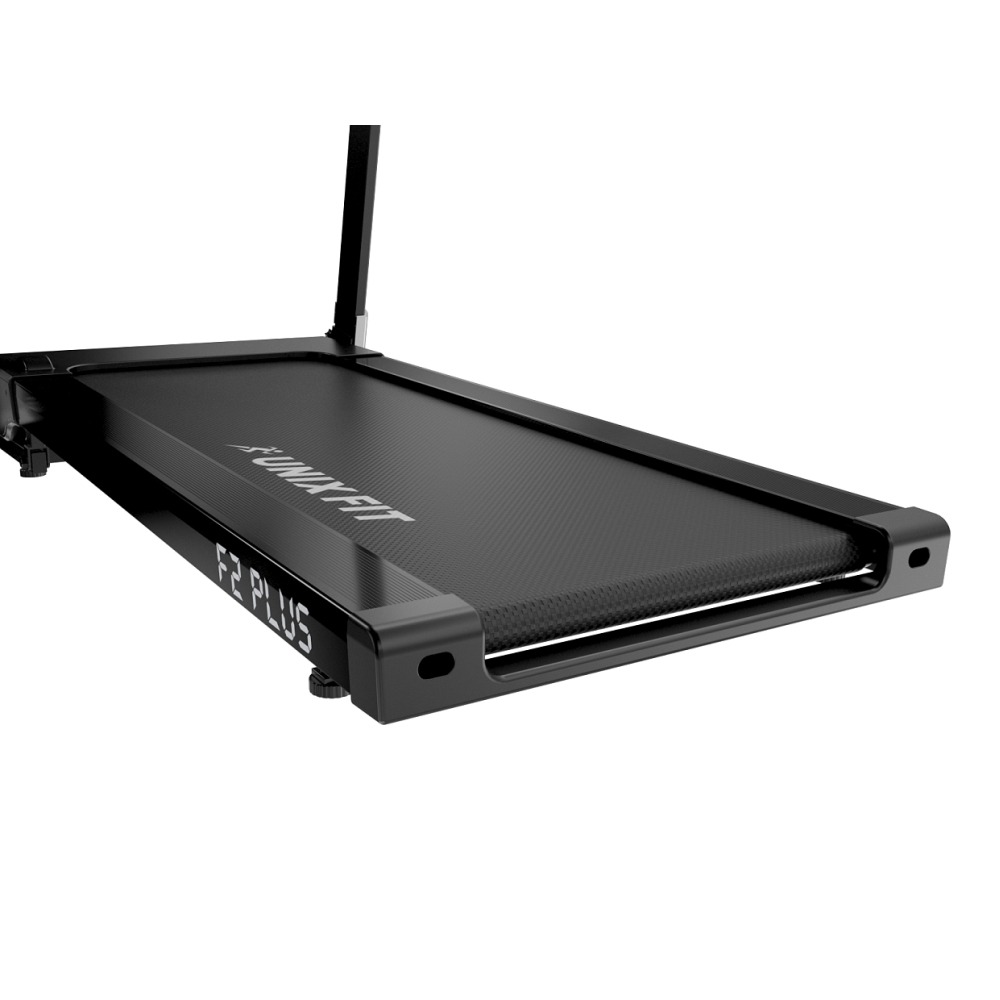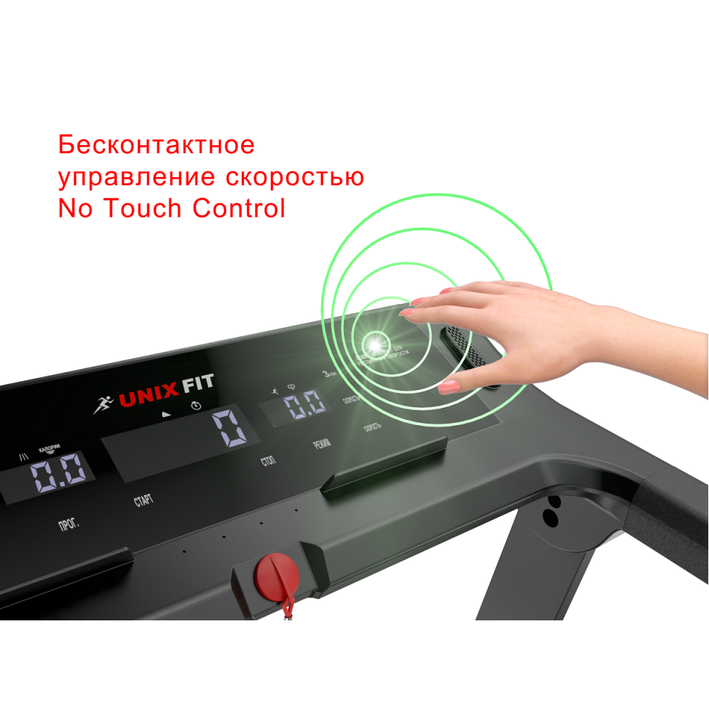 Беговая дорожка UNIX Fit Hi-Tech F2 Plus - это инновационная модель, обладающая мощными характеристиками для домашних тренировок. Модель Hi-Tech F2 Plus - сочетание компактности и стильного дизайна, а также это идеальный вариант для тех, кто хочет повысить свою выносливость, сбросить лишний вес, а также поддерживать в тонусе сердечно-сосудистую систему. Дорожка обладает инновационной функцией “NO TOUCH CONTROL”, которая с помощью инфракрасного датчика позволяет пользователю бесконтактно изменять скорость во время тренировки, а так же установить нужный параметр целевой тренировки (расстояние, калории и время тренировки). Трехслойное беговое полотно размером 121х46 см оптимально подходит как для ходьбы, так и для интенсивных беговых тренировок. Тщательно разработанная система амортизации снижает нагрузку на позвоночник и суставы. Транспортировочные ролики позволяют перемещать дорожку в удобное для вас место, а компактная система складывания хранить в горизонтальном положении. Вес беговой дорожки Hi-Tech F2 Plus составляет 45 кг. Среди характеристик данной дорожки стоит отметить: двигатель мощностью 2,5 л.с. (при пиковых нагрузках мощность достигает 3 л.с.); максимальная скорость составляет 16 км/ч, что позволяет использовать её как для ходьбы, так и для интенсивного бега; 3 уровня автоматической регулировки угла наклона бегового полотна от 0 до 15%; 20 тренировочных программ: 12 предустановленных, 3 пользовательские и 3 целевые (скорость, калории, расстояние), быстрый старт. Устройство обладает интуитивно понятной панелью управления, 3 дисплея с белой подсветкой отображают необходимые параметры тренировки: скорость, расстояние, потраченные калории, время тренировки, пульс, угол наклона. На поручнях расположены датчики пульса, которые помогут отследить сердечный ритм во время тренировки. А так же кнопки "быстрого доступа": изменение скорости и угла наклона. Для того, чтобы тренировка прошла легко, можно подключиться к встроенным динамикам с помощью Bluetooth и прослушивать любимые треки или подкасты прямо во время занятий. Кроме того, у дорожки есть специальная подставка для телефона или планшета. *Также, имеется возможность синхронизации беговой дорожки с мобильным устройством при помощи приложений FitShow, Kinomap (подключение через Bluetooth) с возможностью управления беговой дорожкой и сохранения тренировок. *Для данной модели подходит коврик UNIX Fit 190x75 см.