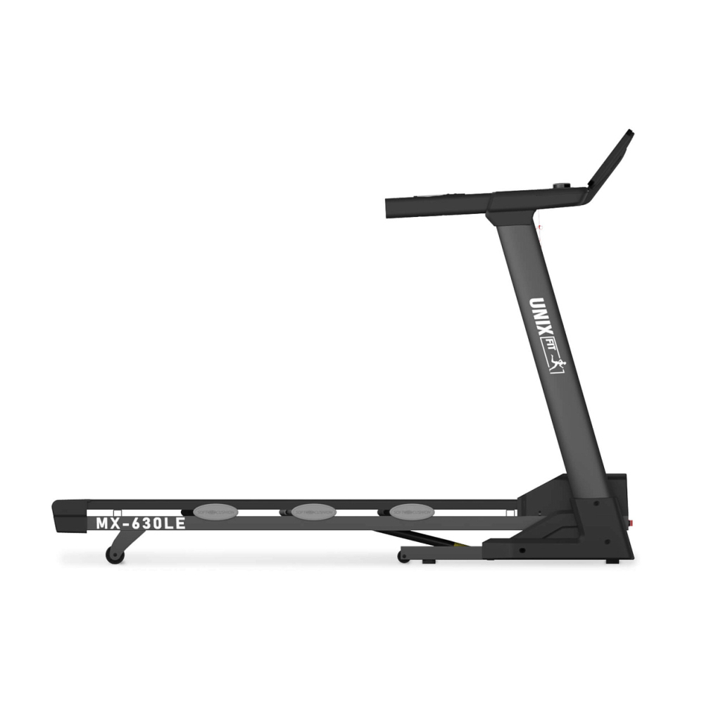 Электрическая беговая дорожка UNIX Fit MX-630LE - современная версия кардиотренажера для дома с достойными техническими характеристиками. Этот высокотехнологичный тренажёр предлагает широкие функциональные возможности, сочетающие удобство, безопасность и максимальный эффект от каждой тренировки. Беговая дорожка MX-630LE поможет поддерживать тонус мышц, эффективно худеть и сбрасывать лишний вес без необходимости посещения спортзала и независимо от погодных условий за окном. Она идеально подходит для тех, кто хочет привести себя в отличную форму, занимаясь спортом комфортно и продуктивно в домашних условиях. Дизайн модели ориентирован на простоту и максимальное удовлетворение потребностей пользователей. Складная дорожка оснащена мощным двигателем с пиковой мощностью 4 л.с., обеспечивающим максимальную скорость движения ленты до 16 км/ч. Это позволяет легко варьировать интенсивность нагрузок в зависимости от ваших целей и уровня подготовленности. Благодаря наличию встроенной системы охлаждения и бесшумному режиму работы мотор обеспечивает долгую эксплуатацию устройства без перегрева и шума даже при длительных интенсивных занятиях.. . Особый акцент сделан на комфорте пользователей весом до 130 кг благодаря продуманной конструкции бегового трехслойного полотна размером 135x45 сантиметров. Его усиленная износостойкость и устойчивость к скольжению гарантирует долговечность и безопасность при любых нагрузках. Дополнительно домашний кардио тренажер оборудован уникальной системой амортизации из 6 пружинных эластомеров с силиконовыми демпфирующими подушечками ElasticShock. Такая комбинация поглощает практически всю ударную нагрузку на ноги и спину, снижая риск травмирования позвоночника и суставов.. . Дорожка для дома оснащена автоматической регулировкой угла наклона до 15%, благодаря чему существенно повышается эффективность занятий, что способствует быстрому достижению результатов в похудении, укреплении сердечно-сосудистой системы и поддержании формы тела.. . Панель управления представлена тремя большими LED-экранами с интуитивно понятным интерфейсом и удобным сенсорным управлением и диммером с дисплеем для быстрого изменения скорости. Вам доступна информация обо всём ходе вашей тренировки дома: время, скорость, расстояние, пульс, уровень наклона, количество сожженных калорий. Предусмотрена кнопка быстрого запуска и выбор скорости и угла наклона. Дорожка для ходьбы и бега UNIX Fit MX-630LE поддерживает интеграцию с мобильным приложением FitShow, которое открывает доступ к широкому спектру интерактивных возможностей. Пользователи могут выбирать различные программы тренировок, отслеживать статистику прогресса, делиться результатами с единомышленниками и даже заниматься вместе с друзьями онлайн! 24 автоматические и 3 встроенные программы тренировок помогут разнообразить занятия. Выбирайте подходящий режим — от легкой разминки до интенсивного тренинга! Поручни обеспечивают дополнительную поддержку во время бега или ходьбы, что делает тренировки более безопасной. Встроенная функция ИМТ - функция подсчета индекса массы тела помогает определить, насколько масса тела соответствует норме. Индекс массы тела (FAT) измеряет соотношение между ростом и весом человека, а не пропорции тела. FAT отдельно считается для мужчин и женщин и вмес