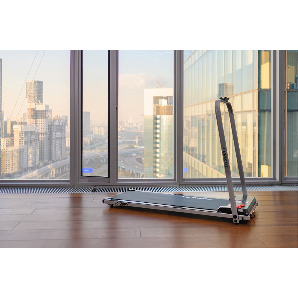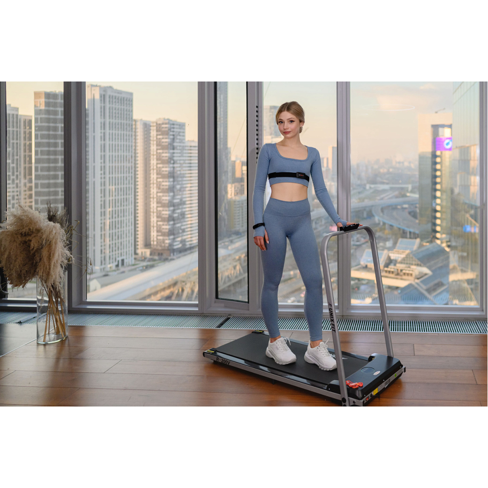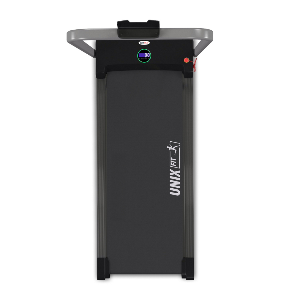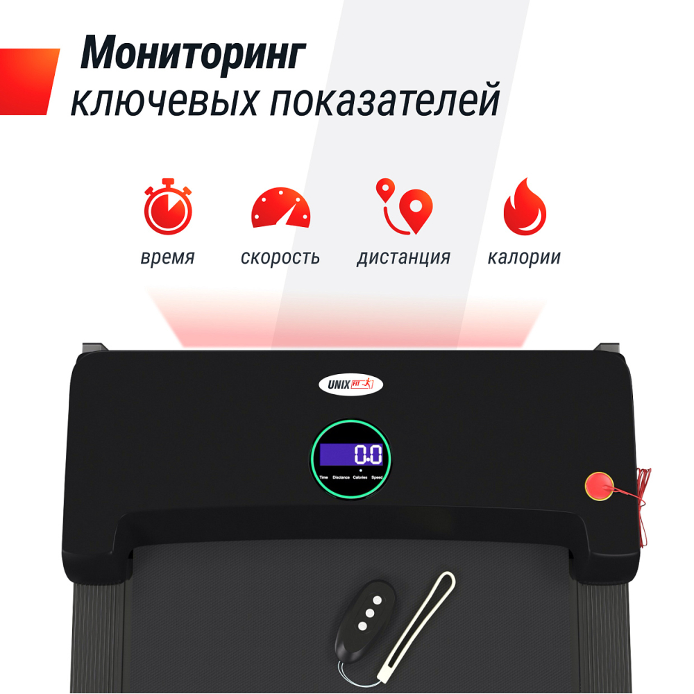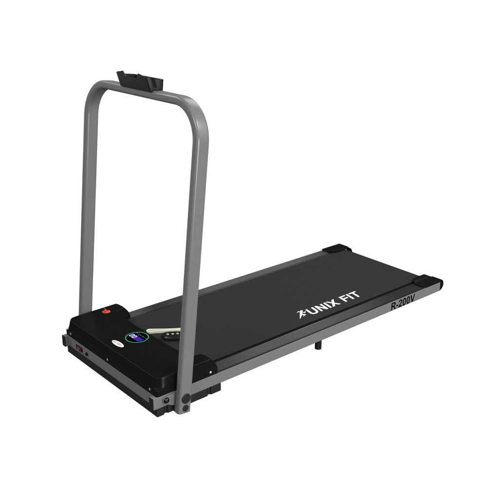 Беговые дорожки UNIX Fit™ серии Ultra-Slim - сочетание инновационных технологий, стильного дизайна, компактности и легкости. Беговая дорожка UNIX FitR-200V – это полноценный кардиотренажер для ходьбы и бега в легком темпе. Беговую дорожку UNIXFIT R-200V можно убрать под диван или за дверь (толщина рамы составляет всего 11 см). Трехслойное беговое полотно (38*105 см) оптимально подходит для умеренных физических нагрузок, максимальная скорость бега составляет 7,5 км/ч. Беговая дорожка оснащена удобным поручнем с подставкой под планшет. Пульт дистанционного управления (ДУ) поставляется в комплекте. *Для данной модели подходит коврик UNIX Fit 135x75 см.