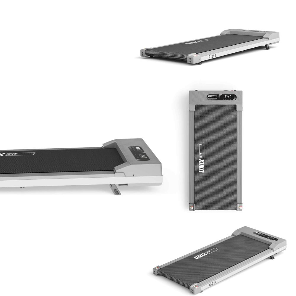 Компактная беговая дорожка для дома UNIX Fit R-210 поможет поддержать отличную физическую форму, позаботиться о здоровье своего тела!. . Беговая дорожка без поручней UNIX Fit R-210 предлагает оптимальное сочетание качества материалов, продуманного дизайна и функциональности. Тренажер для ног, ягодиц позволяет вручную регулировать наклон полотна в двух положениях. Чем выше наклон, тем интенсивнее становится ваша кардионагрузка и эффективнее расходуются лишние килограммы. Также, вы можете выбрать между режимами: ходьба (скорость от 1 до 5 км/ч), позволяющая плавно войти в тренировочный процесс, и бег (до 8 км/ч) . Особенное внимание уделено комфорту. Толщина антискользящего покрытия составляет 1,4 мм, обеспечивая безопасность движений даже при максимальных нагрузках. Ширина рабочей зоны 39 см идеально подойдёт людям среднего и малого роста и комплекции, а мощная стальная рама выдерживает пользователей весом до 110 кг. Удобная транспортировка обеспечивается двумя роликами, а возможность хранить компактный кардиотренажер горизонтально под диваном или кроватью позволит сэкономить пространство дома.. . Сердце тренажера для похудения — мощный двигатель постоянного тока DC с пиковой мощностью 1,75 л.с., обеспечивающий стабильную работу устройства и тихий запуск/остановку. Специальная технология подавления шума Smartex сделает ваши занятия практически бесшумными, позволяя заниматься спортом, не мешая домочадцам отдыхать или работать. Благодаря встроенной воздушной системе охлаждения срок службы мотора значительно продлевается, а расход электроэнергии минимален. . . Светодиодный дисплей выводит всю необходимую информацию о вашей тренировке прямо перед глазами: время, пройденное расстояние, скорость движения и количество потраченных калорий. А наличие пульта дистанционного управления обеспечит дополнительный комфорт и удобство тренировок . Универсальность, надёжность и эффективность делают электрическую домашнюю беговую дорожку для бега и ходьбы UNIX Fit R-210 отличным выбором для тех, кто стремится поддерживать себя в форме. Начните путь к стройному телу и здоровому сердцу вместе с UNIX Fit! .