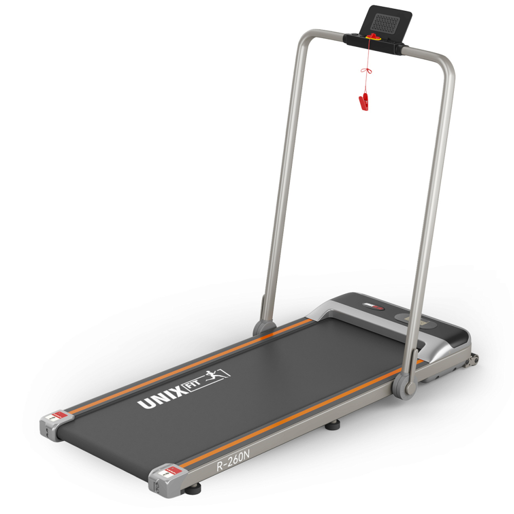 Беговая дорожка для дома UNIX Fit R-260N станет для вас надежным помощником на пути к достижению идеального, подтянутого тела. Каждая тренировка — это инвестиция в прекрасную физическую форму и хорошее настроение. . . Важной особенностью ультратонкой беговой дорожки R-260N являются ее компактные размеры, которые в рабочем состоянии составляют 127,5 х 60 х 106 см. Беговая дорожка R-260N займёт мало места в квартире и отлично впишется в любой дизайн, ведь ее габариты в сложенном виде составляют 140 см х 63 см х 11,5 см, ее можно убрать под диван или кровать. . . Двигатель с системой шумоподавления Smartex с пиковой мощностью 2.55 л.с., обеспечивает плавное и бесшумное движение кардио тренажера, разгоняя дорожку до 10 км/ч. Для новичков оптимальной будет скорость от 1-3,0 км/ч, 4,0-5,0 км/ч для ходьбы в обычном темпе, а от 6,0 до 10 км/ч для быстрой ходьбы и бега. Благодаря тренировкам вы сможете улучшить самочувствие, похудеть, приобрести подтянутое и стройное тело не выходя из дома. Механическая регулировка угла наклона в двух положениях может увеличить сложность тренировки, имитируя реальные условия и тем самым делая вашу тренировку похожей на бег на свежем воздухе. . . Двуслойное беговое полотно 105 х 41 см оптимально подходит для умеренных физических нагрузок, а дека толщиной 15 мм и тщательно разработанная система амортизации снижают нагрузку на позвоночник и суставы. Допустимый вес пользователя 110 кг является достойным показателем для такой компактной модели, обеспечивая долговечность и надежность в использовании тренажера. Результаты тренировок не заставят себя долго ждать, ведь дорожка является отличным кардиотренажером для укрепления рук и ног, улучшения сердечно-сосудистой системы и повышения выносливости. Физическая активность снижает уровень стресса, что так необходимо в условиях современной жизни. Беговое полотно оборудовано современной 6-точечной системой амортизацией, которая снижает нагрузку на позвоночник и суставы.. . У дорожки имеется интуитивно понятная панель управления с LCD дисплеем, который отображает параметры времени, скорости, дистанции, потраченных калорий. Управление дорожкой осуществляется с пульта ДУ, который представлен в виде браслета-часов. 12 предустановленных программ тренировок помогут вам разнообразить тренировочный процесс и сделать его более эффективным. Вы сможете выбрать программу, которая соответствует вашим целям - от похудения и укрепления сердечно-сосудистой системы до повышения выносливости и улучшения общей физической формы. Программы рассчитаны таким образом, чтобы вы могли достигать различных целей и проводить активные тренировки, развивая выносливость.. Тонкая беговая дорожка не требует сборки, поэтому получив ее, вы сможете сразу же приступить к тренировкам. В комплекте идет силиконовая смазка, чтобы подготовить тренажер к первому запуску, а благодаря русифицированной инструкции, управление дорожкой не составит труда. . Беговая дорожка UNIX Fit R-260N – отличный выбор для всех, кто хочет оставаться физически активным и поддерживать высокий уровень здоровья и хорошее настроение, не выходя из дома! Каждый шаг на беговой дорожке — это шаг к более здоровому и счастливому “я”, а также вклад в будущее!. Тренируйтесь вместе с UNIX FIT!. . *Для данной модели подходит коврик UNIX Fit 135x75 см. .