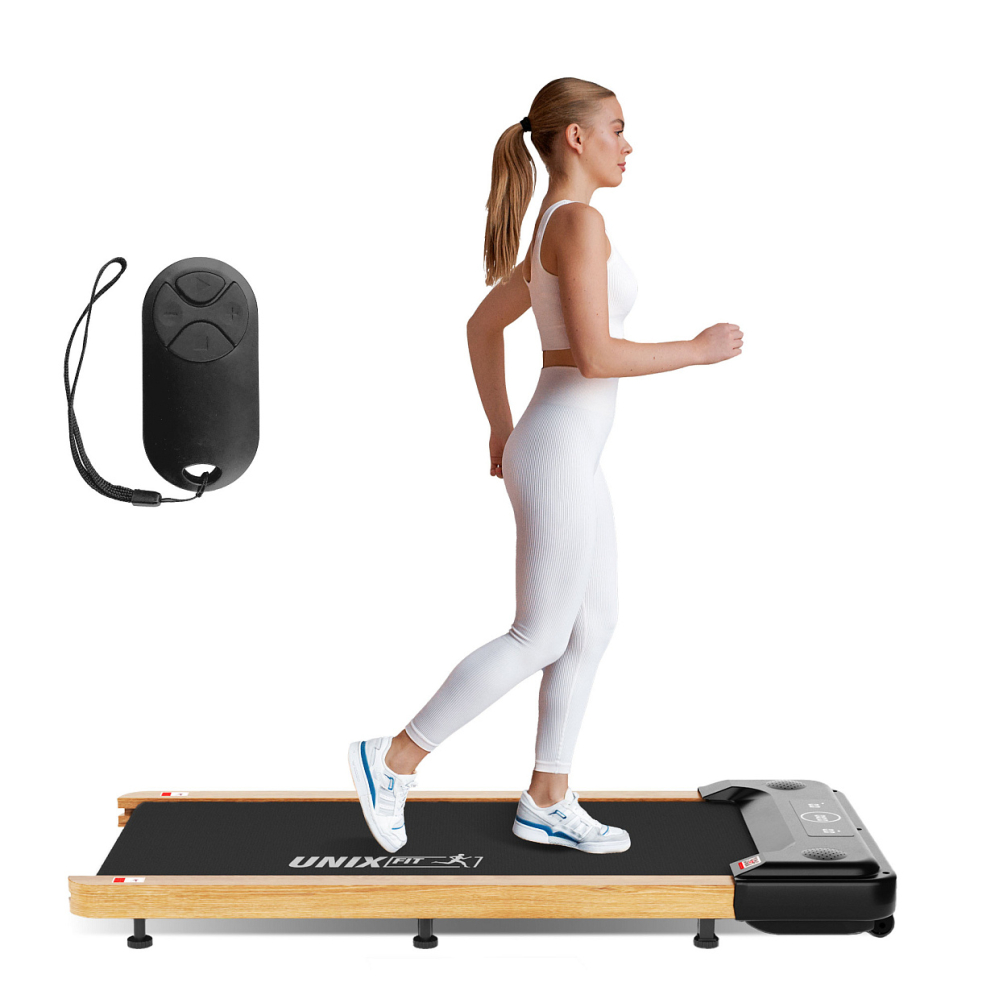 Беговая дорожка UNIX Fit Wood Way 2.0 APP – отличное решение для тех, кто хочет оставаться в форме и поддерживать физическую активность не выходя из дома! Дорожка для ходьбы и бега сочетает в себе компактность и функциональность, чтобы вы могли наслаждаться полноценной тренировкой, не покидая свой уютный уголок. Электрическая беговая дорожка оснащена передовыми технологиями, которые обеспечивают комфорт и безопасность во время тренировки. Антискользящее амортизационное покрытие 1,6 мм снижает нагрузку на суставы и предупреждает травмы, а система шумоподавления обеспечивает тишину во время тренировки. Благодаря настройке скорости от 0,5 до 8,5 км/ч, вы можете настроить тренировку под свои индивидуальные потребности и достичь желаемых результатов. Интерактивный дисплей отслеживает время, скорость, дистанцию и калории, чтобы вы всегда знали о своих достижениях. Современный и привлекательный дизайн домашнего кардио тренажера привлекает внимание и станет стильным элементом комнаты. Благодаря компактным размерам, вы можете легко убрать мини дорожку за дверь или под кровать после тренировки и освободить пространство. Для управления своими тренировками можно подключиться к фитнес-приложениям FitShow (подключение через Bluetooth).