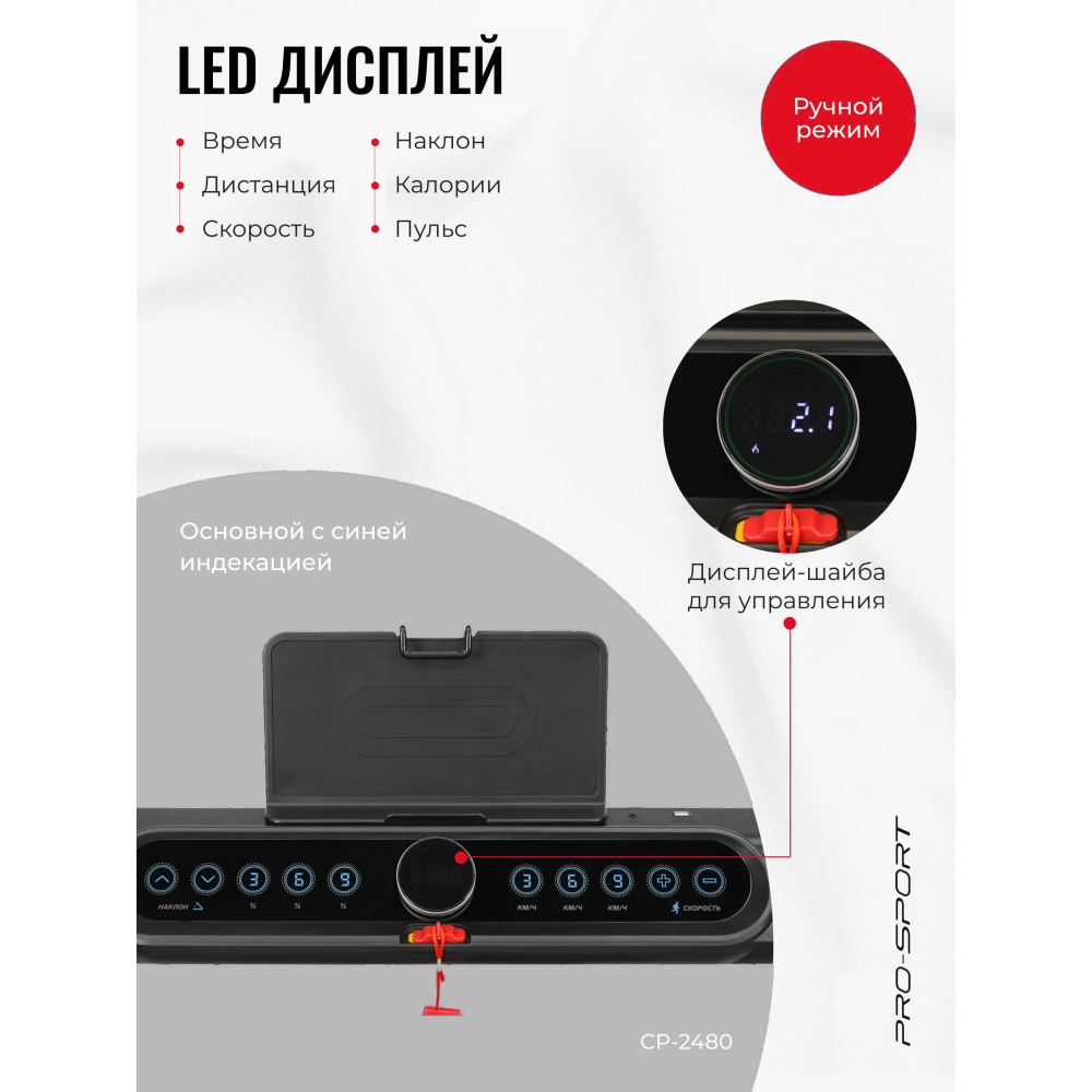 Забудьте о скучных тренировках и ограниченном пространстве. Беговая дорожка PRO-SPORT CP-2480 — это больше, чем просто тренажер. Это ваш высокотехнологичный портал в мир эффективного спорта, комфорта и современных фитнес-возможностей, гармонично встроенный в домашнюю среду.
