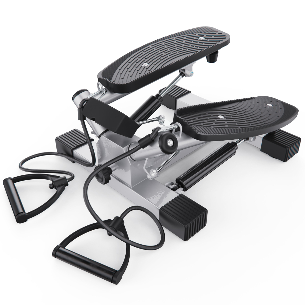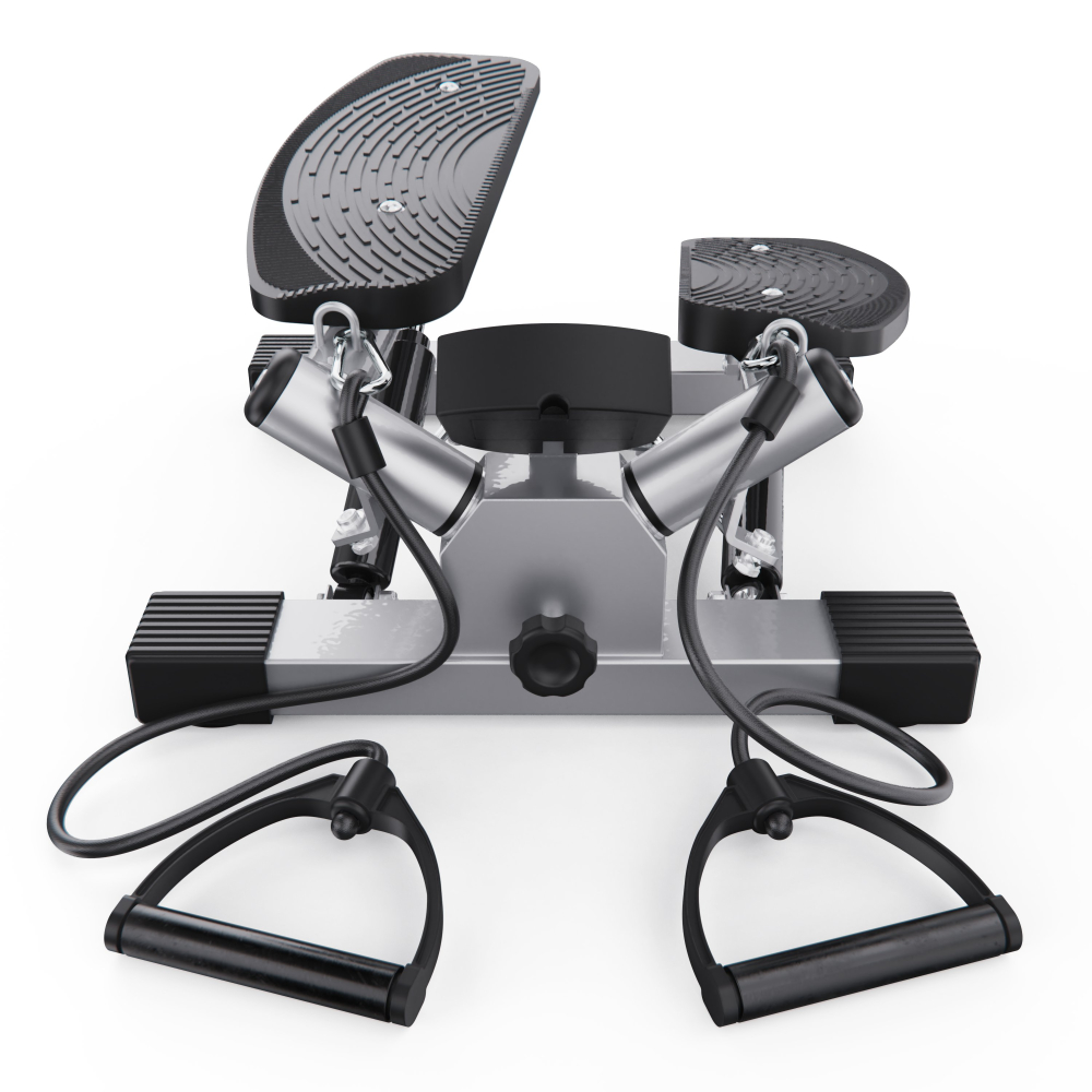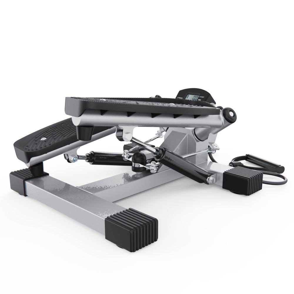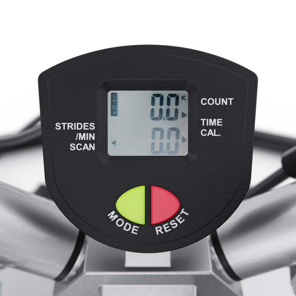 Большой поворотный степпер DFC X-STEPPER — идеальный выбор для домашних тренировок. Это компактный, но функциональный тренажёр, оснащенный двумя эспандерами для дополнительной нагрузки на руки и плечи, развивает выносливость и координацию движений. Министеппер поворотный способен выдержать пользователя весом до 120 кг. Поворотный степпер оснащён гидравлической системой нагрузки, которая обеспечивает плавный и тихий ход педалей. Вы можете механически регулировать уровень нагрузки, подстраивая интенсивность тренировки под свои цели и физическую подготовку. Педали степпера имеют размеры 36 х 15 см, а благодаря ручке на раме тренажёра вы можете регулировать высоту их подъёма, выбирая оптимальный уровень нагрузки. Чем выше поднимаются педали, тем больше усилий вам нужно прилагать, и наоборот. Поворотный степпер отличается от обычного тем, что при каждом шаге пользователь поворачивает корпус, что позволяет дополнительно тренировать мышцы кора и спины. Это делает упражнения на поворотном степпере более эффективными и разнообразными. В комплекте со степпером идут съёмные эспандеры, смазка и батарейка типа “АА” (1,5В). Монохромный LCD дисплей степпера отображает такие данные, как время тренировки, сожженные калории, количество сделанных шагов в минуту и режим сканирования, делая ваши тренировки универсальными. Министеппер поворотный DFC X-STEPPER не требует подключения к сети, легко помещается под кровать или в шкаф и готов к тренировке в любое время. Компактные размеры в рабочем виде делают этот тренажёр идеальным выбором для занятий в квартире или офисе. Гарантия на детали подверженные естественному износу в процессе эксплуатации — до 6 месяцев с момента установки тренажера при условии регулярного планового ТО. Важно: гарантия не распространяется на преждевременный износ из-за чрезмерной эксплуатации тренажера.