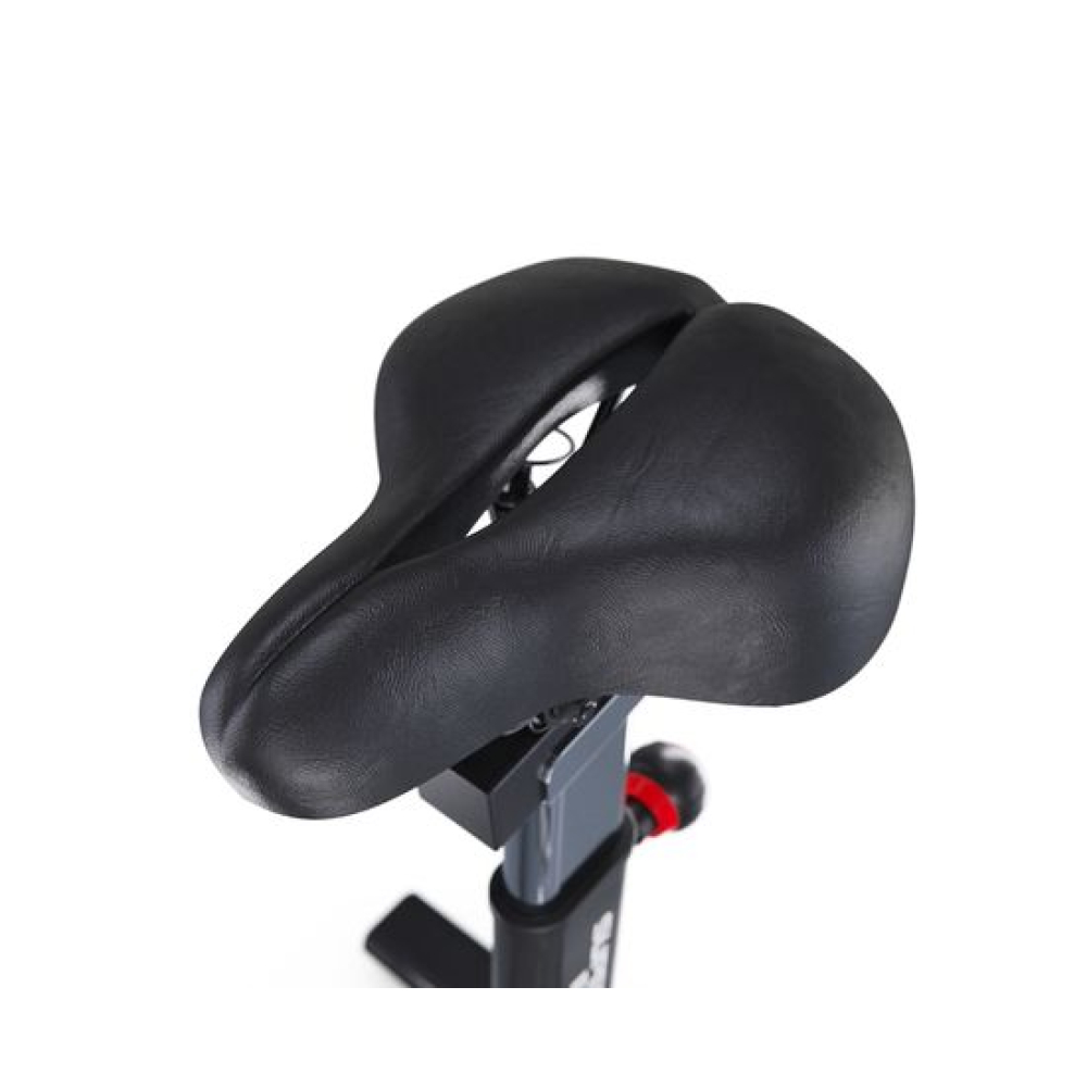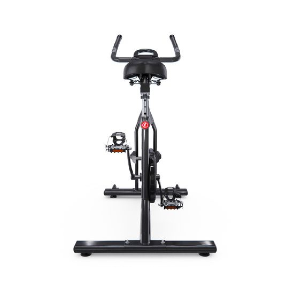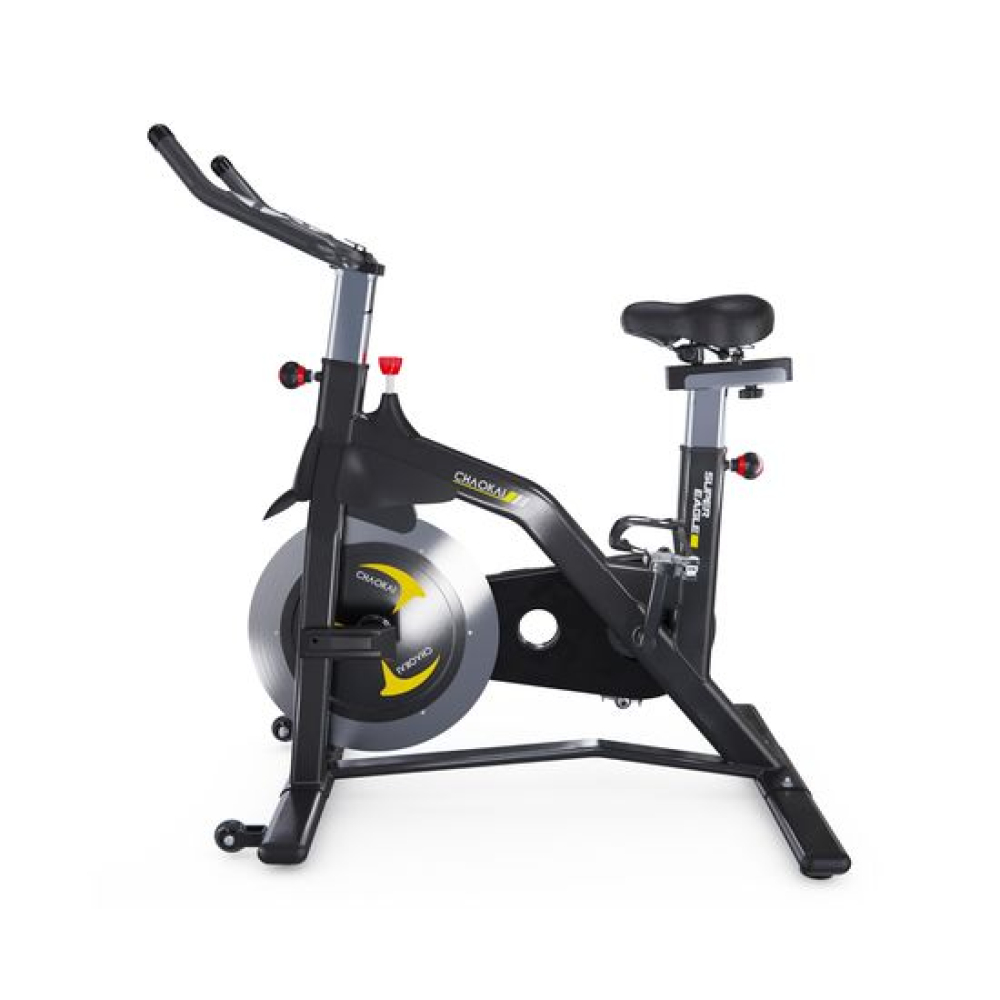 Спин-байк CHAOKE чёрного цвета удобнее и тише других. Прочная стальная рама и алюминиевый маховик весом 19 килограмм обеспечивают устойчивость во время езды на велосипеде. Он выдерживает нагрузку до 150 кг и подходит для пользователей ростом от 146 до 198 см.Система магнитного сопротивления позволяет легко и удобно изменять интенсивность тренировки, что делает ее идеальным выбором как для начинающих, так и для профессионалов. Гибридная система с магнитом обеспечивает плавную, почти бесшумную езду на велосипеде, обеспечивая полную безопасность благодаря нажимному аварийному тормозу.Благодаря 5 уровням регулировки высоты сиденья и 6 уровням высоты руля этот велотренажер отвечает потребностям людей разного роста. Большое, мягкое и дышащее сиденье обеспечивает комфорт при длительной езде на велосипеде.Держатель для планшета позволяет вам слушать музыку или смотреть видео во время тренировки, что делает ваши тренировки более приятными.Нескользящие педали в форме стальной клетки подходят для всех размеров стопы и обеспечивают полную защиту, предотвращая скольжение и движение вперед. Они также оснащены регулируемыми ремешками для надежной фиксации. Транспортировочные колеса велосипеда облегчают его перемещение.