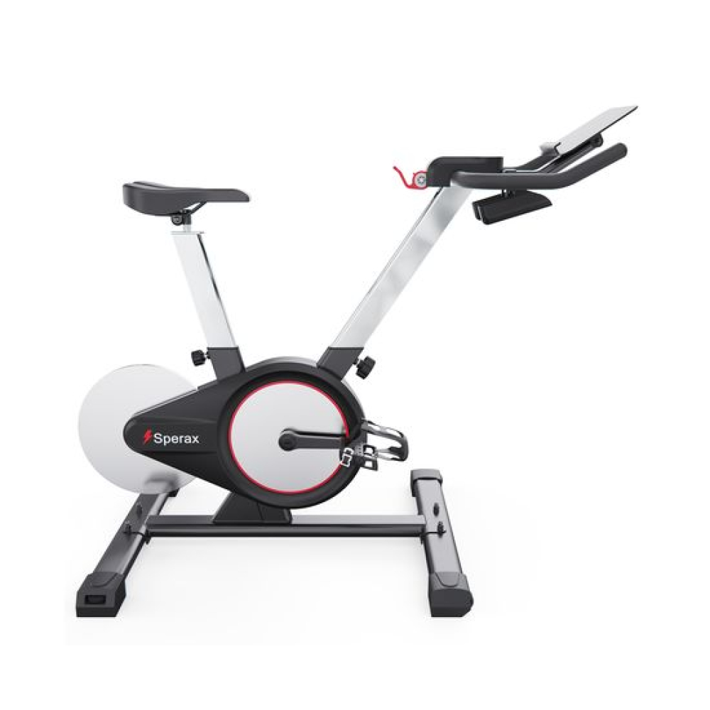Спин-байк DFC Sperax DC001 — велотренажёр для дома, сочетающий кардио и силовую нагрузку. Этот многофункциональный кардиотренажер для ног и рук домашний разработан для эффективных тренировок в домашних условиях. Он идеально подходит как для начинающих, так и для опытных пользователей, стремящихся к похудению, улучшению выносливости и укреплению сердечно-сосудистой системы. Тренажер кардио типа имитирует езду на велосипеде, активно включая в работу мышцы ног, ягодиц и корпуса.Максимальный вес пользователя — 136 кг. Велотренажер оснащён магнитной системой нагрузки и механической регулировкой сопротивления. Вы можете увеличить или снизить интенсивность одним движением: достаточно повернуть рукоятку вверх или вниз. Также предусмотрена функция экстренной остановки маховика — для полной безопасности во время тренировки. Это делает велотренажер домашний максимально удобным для индивидуальных занятий.Велотренажер для ног оснащён регулируемым сиденьем (9 уровней) и рулём (4 уровня), чтобы адаптировать его под ваш рост и предпочтения. Размер сиденья — 26 х 18 х 9,5 см — гарантирует удобство даже при длительных сессиях. Нескользящие педали с фиксирующими ремешками и противоскользящие ручки обеспечивают надёжную фиксацию. Компенсаторы неровности пола позволяют установить тренажёр даже на неидеальных поверхностях, а транспортировочные ролики облегчают перемещение.Встроенный Bluetooth-модуль позволяет синхронизировать велотренажёр с мобильным приложением Sperax, которое предлагает онлайн-курсы, персонализированные планы тренировок и статистику в реальном времени: время, частота оборотов, дистанция, калории. Установите ваше устройство на встроенную подставку для планшета, включите тренировку и наслаждайтесь процессом. Для удобства также предусмотрен держатель для бутылки.Спин-байк DFC Sperax DC001 — это надёжный тренажер для ног и полноценный велотренажер для дома, который поможет вам тренироваться в удобное время и без походов в спортзал.