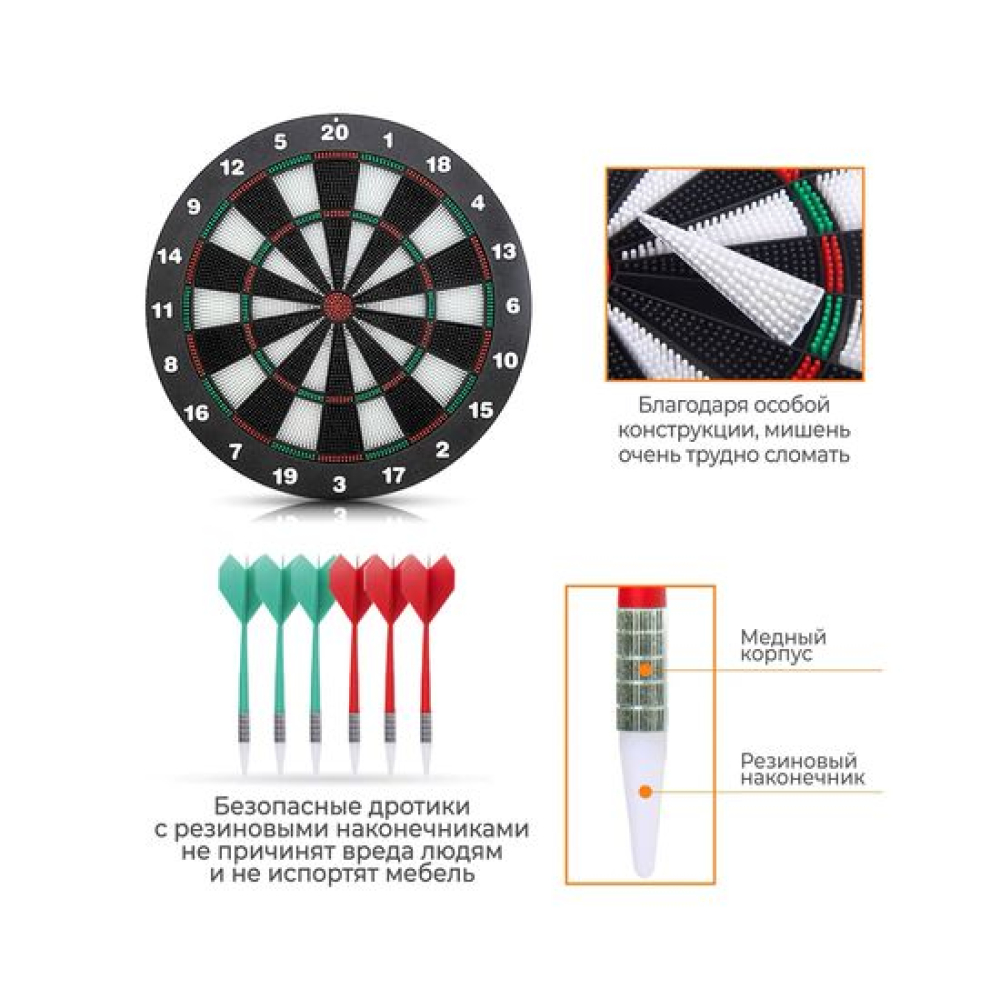 Дартс DFC DARBE20 - это стандартная мишень для домашнего использования. Она представляет собой надежную и прочную мишень, которую можно поставить на стол или повесить на стену.Одновременно в дартс могут играть любое количество игроков. Диаметр мишени составляет 34,5 см, а материал изготовления - пластик.В комплект изделия входят 6 дротиков с мягким наконечником и 6 сменных наконечников. Таким образом, вы получаете все необходимое для начала игры.