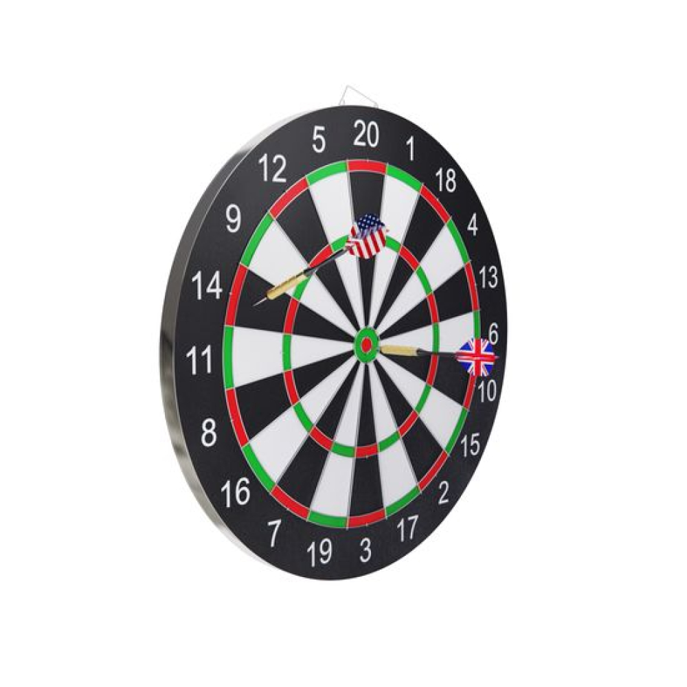 Мишень DFC DAR2318D представляет собой идеальное решение для любителей дартса, которые хотят наслаждаться игрой в уютной домашней обстановке. Это прекрасное развлечение для всех возрастов, и в игру можно включить любое количество игроков.Комплект мишени включает в себя 6 дротиков с металлическими наконечниками и имеет 2 разные мишени с двух сторон. Кроме того, в комплекте идут флайты с американским и английским флагами, что делает эту мишень еще более интересной. Диаметр мишени составляет 43 см.В комплекте с мишенью идет металлическое крепление, которое обеспечивает уверенную и надежную фиксацию на стене. Это обеспечивает безопасность во время игры, а также позволяет настроить высоту мишени и выбрать место для игры, которое наиболее удобно для вас.