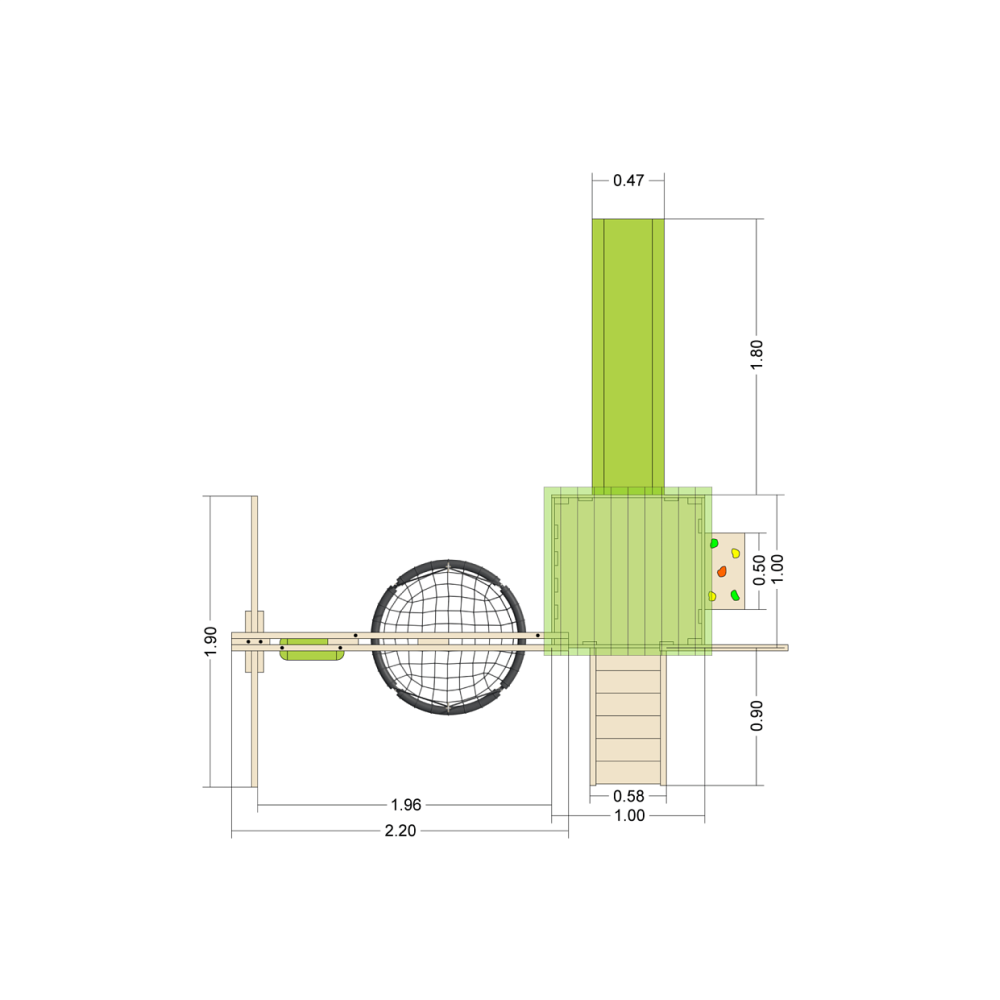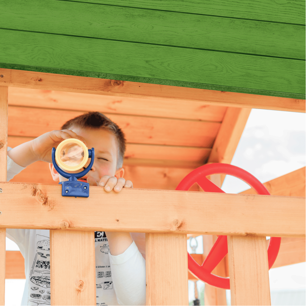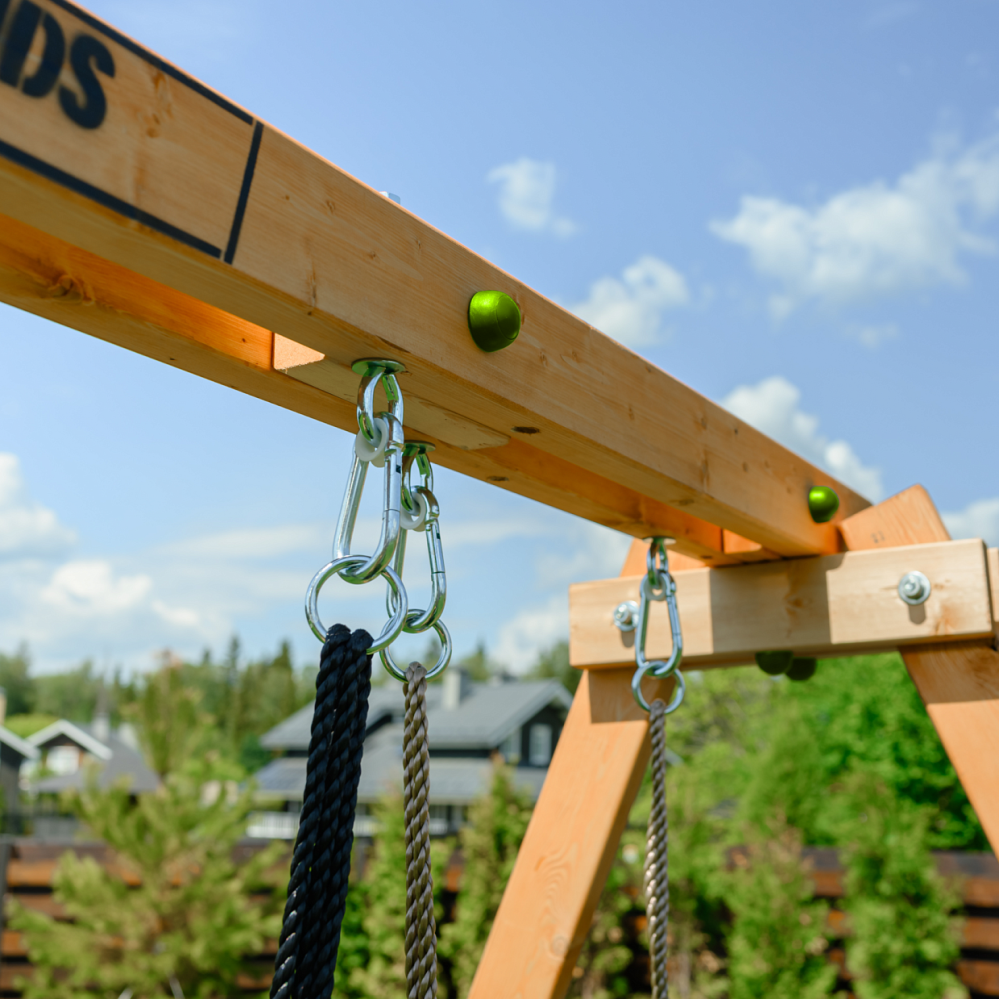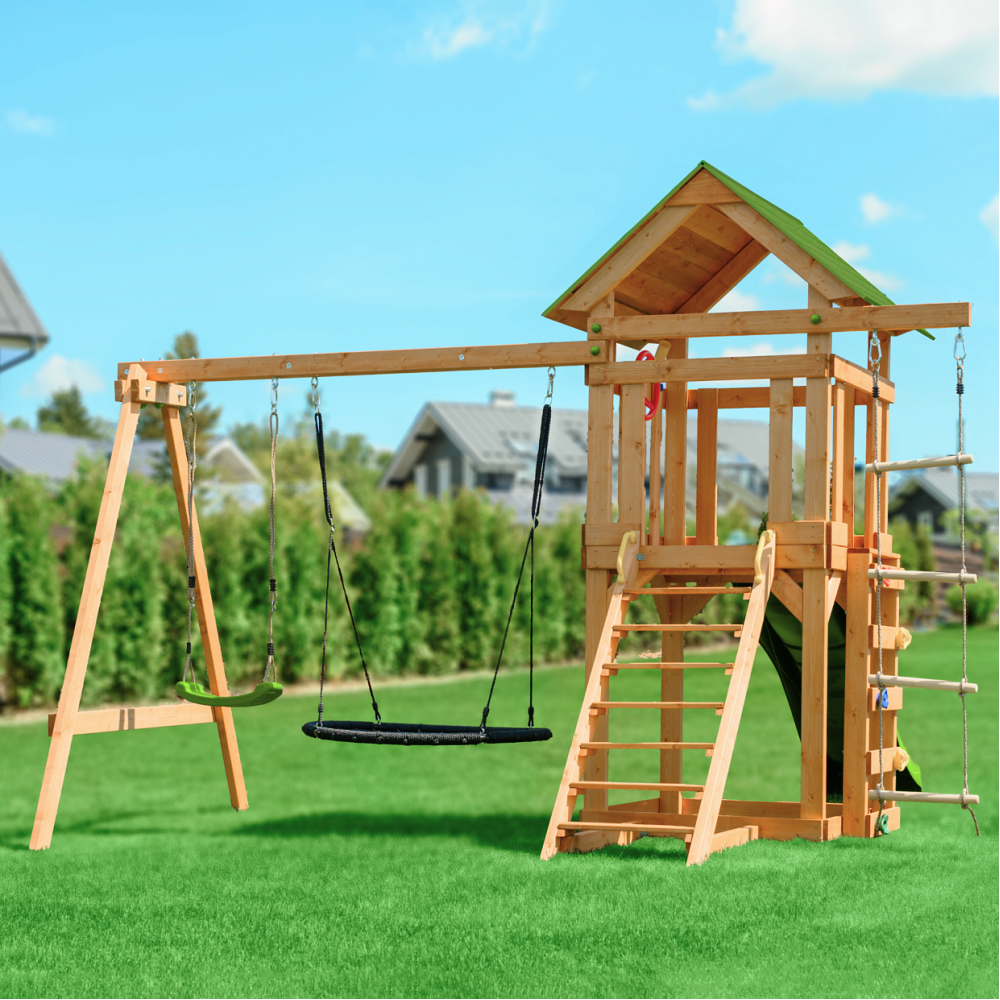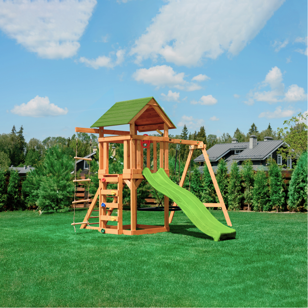 | Комплектация | Горка, скалодром, песочница, качели обычные, качели - гнездо, штурвал, подзорная труба, верёвочная лестница, крепежные элементы, инструкция по сборке изделия |