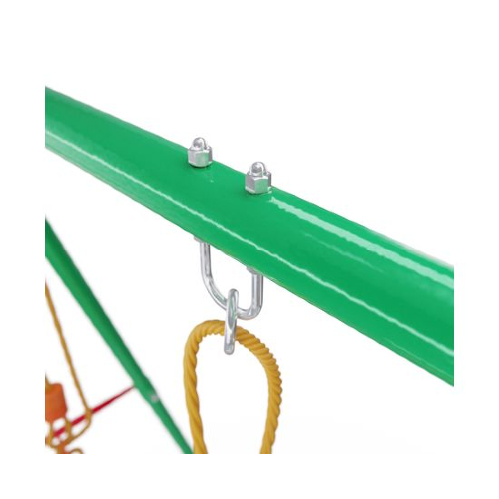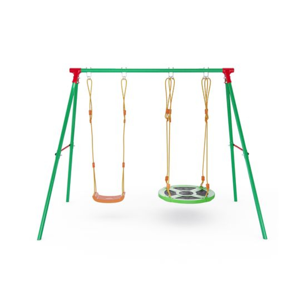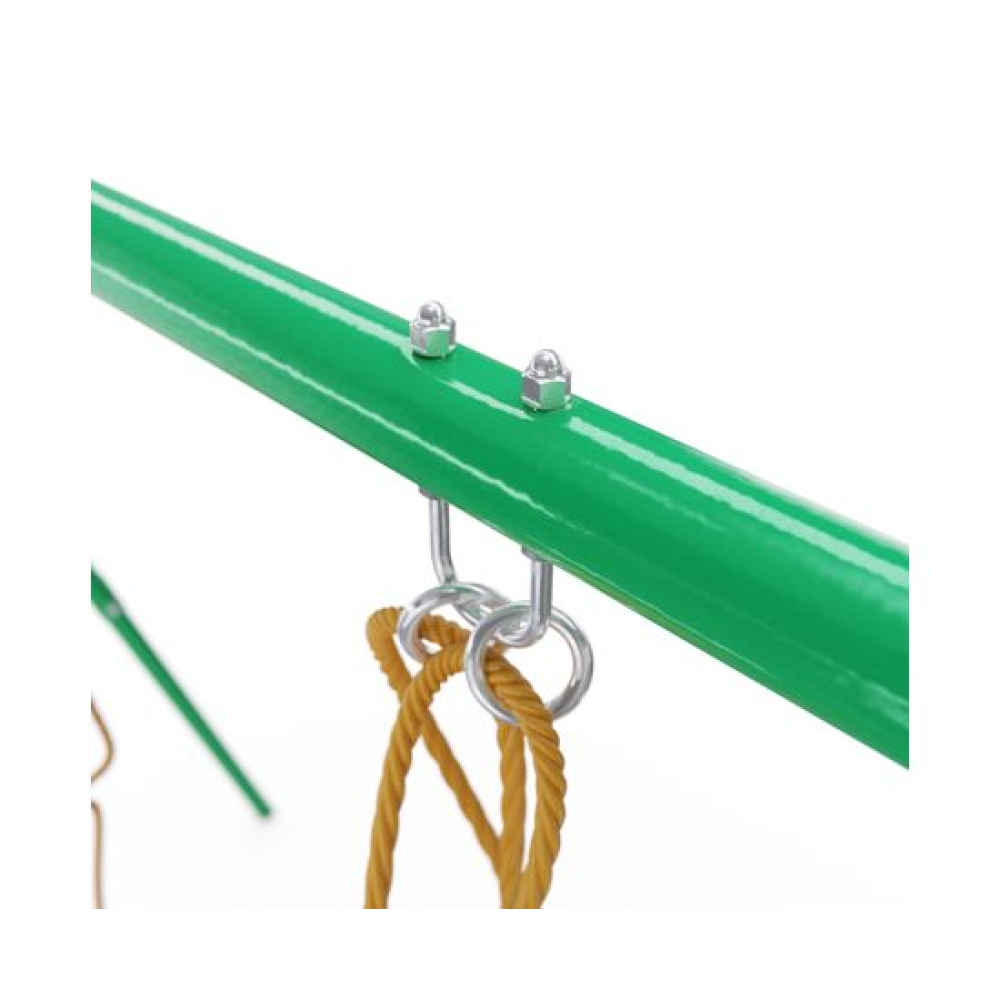 Активные развлечения на свежем воздухе — это прекрасно, а сон на природе — ещё лучше. Детский игровой комплекс SRN-01 серии DFC Kids сочетает в себе площадку для игр и зону отдыха, где ребенок сможет поиграть и расслабиться после активного дня или развлечься с друзьями.Габариты комплекса составляют 274×156×196 см и обеспечивают достаточное количество свободного пространства для исключения травматизации детей, при этом разместить его можно и дома, поскольку он довольно компактен. В состав комплекса входят веревочные качели, которые мы так любили в детстве, и качели-гнездо — уже более современный вариант.Опорные элементы качелей выполнены в виде каркаса из стального профиля 25, 4×1,0 мм, 45×1,5 мм и 50,8×2 мм повышенной прочности — характеристики стали соответствуют государственным стандартам и требованиям безопасности; каркас усилен дополнительными элементами для увеличения жесткости и надежности. Играть на комплексе разрешается детям от 3 лет. Максимальная нагрузка 70 кг. В комплекте с комплексом поставляются анкеры крепления к земле, повышающие устойчивость конструкции. Под каждый анкер выкопайте яму глубиной 60 см и залейте бетонным раствором 30x30x50 см (ДxШxВ). Воткните анкеры в раствор, пока он не застыл.