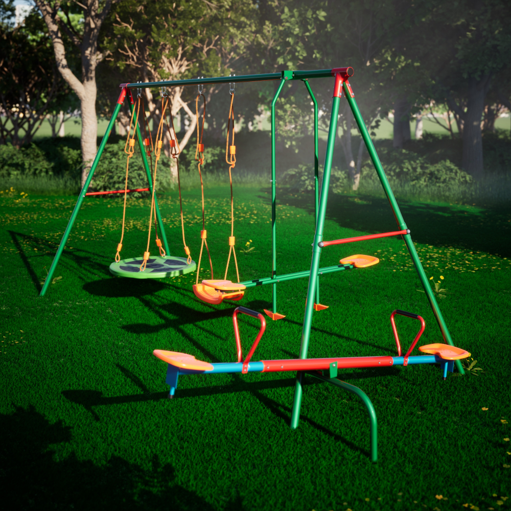 Технические характеристики Детский комплекс DFC MULTIPLAY качели: планер, верёвочные, гнездо и балансир