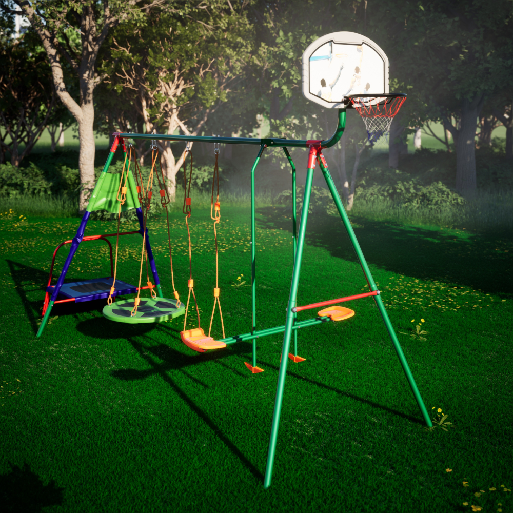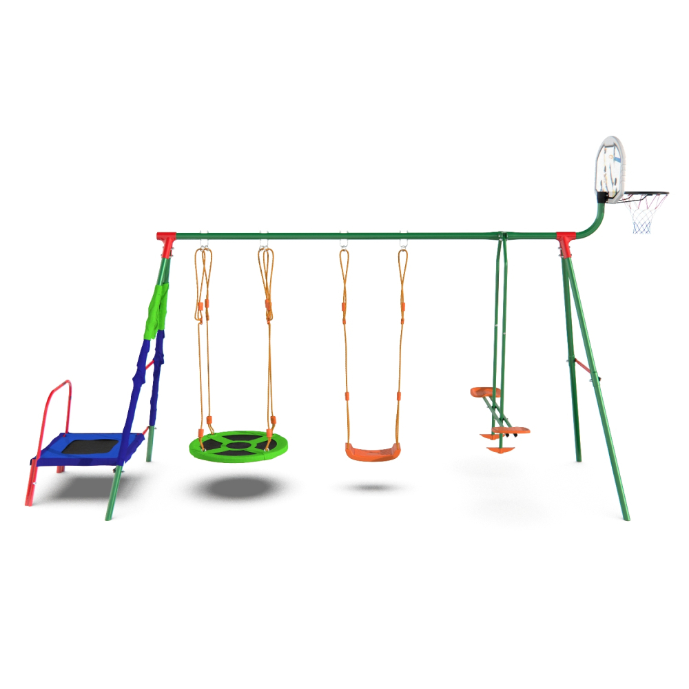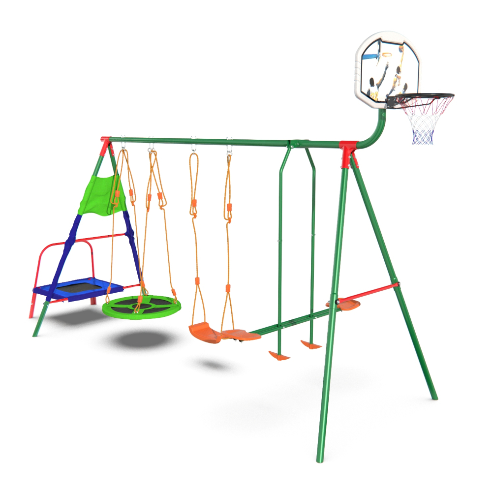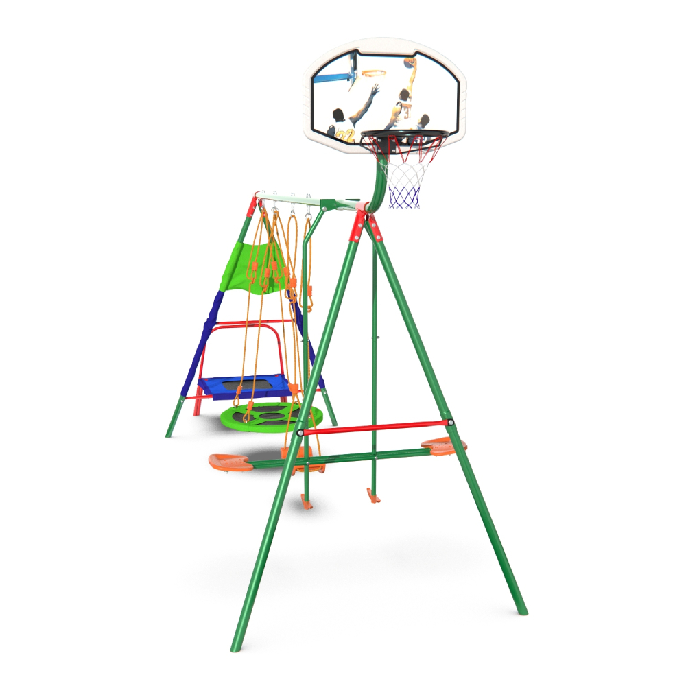 Детский комплекс DFC MULTIPLAY качели: планер, верёвочные, гнездо; мини-батут и баскетбольный щит