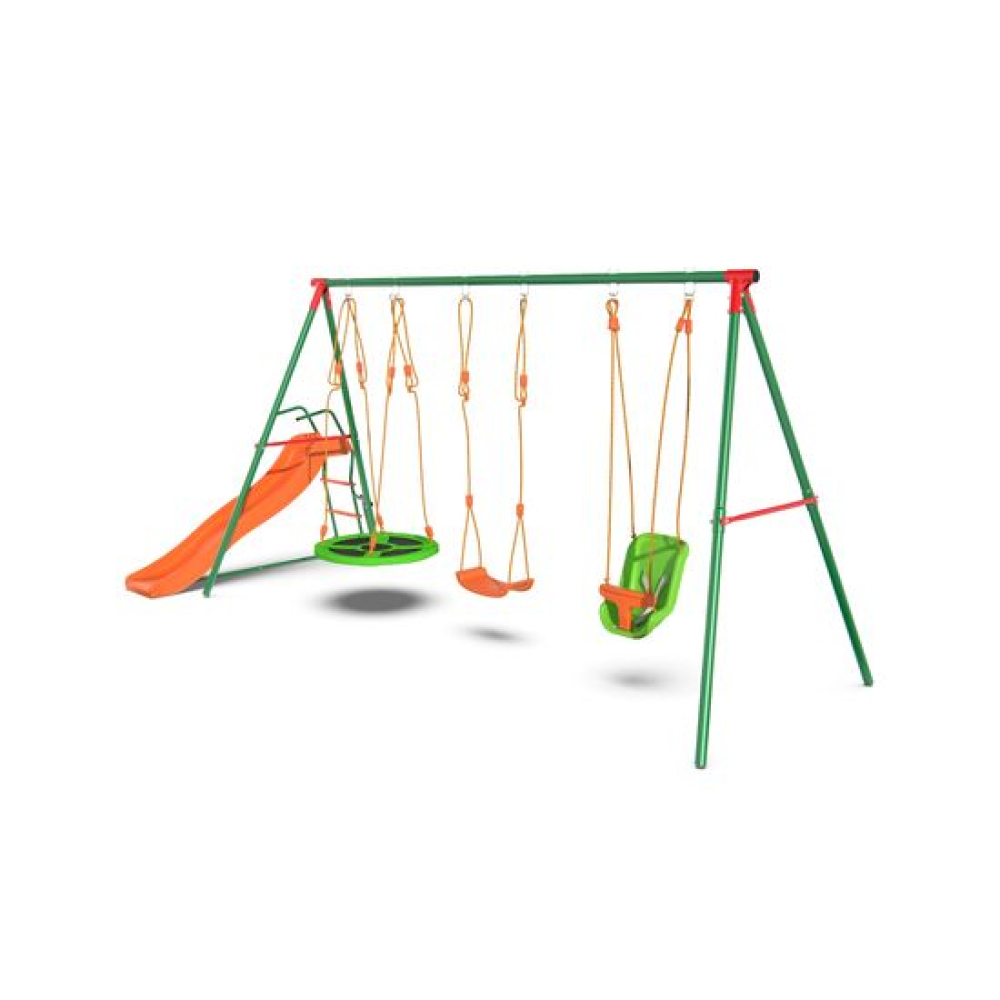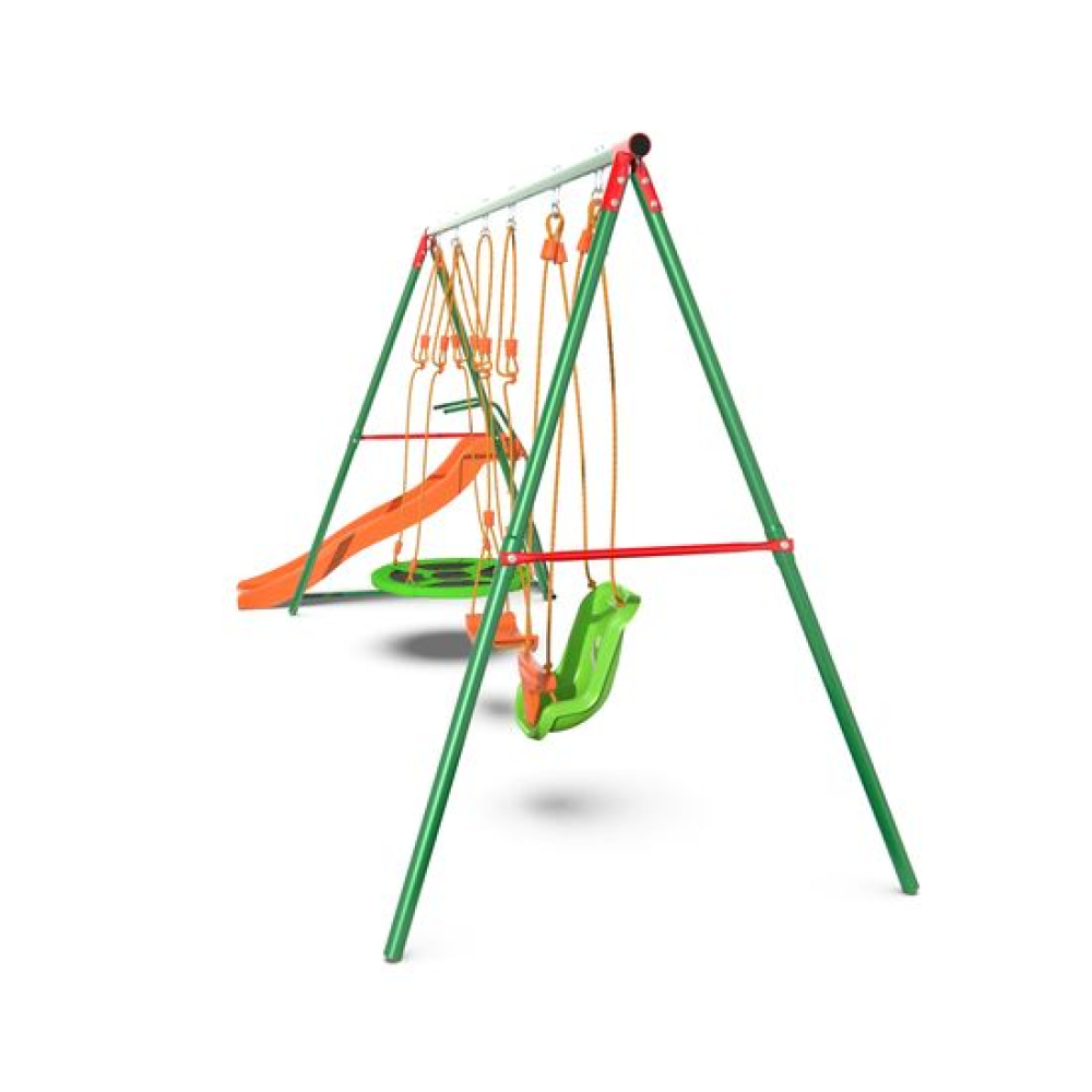 Технические характеристики Детский комплекс DFC MULTIPLAY качели: верёвочные, для малышей, гнездо; горка