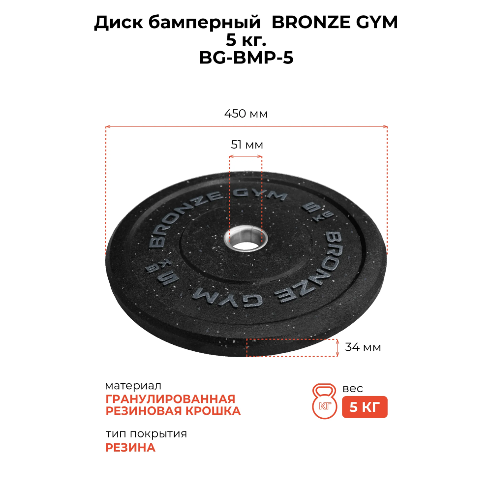 Технические характеристики Диск бамперный BRONZE GYM 5кг д50