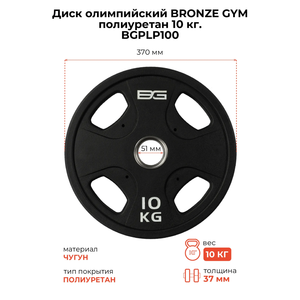 Технические характеристики Диск олимпийский профессиональный BRONZE GYM полиуретан 10 кг