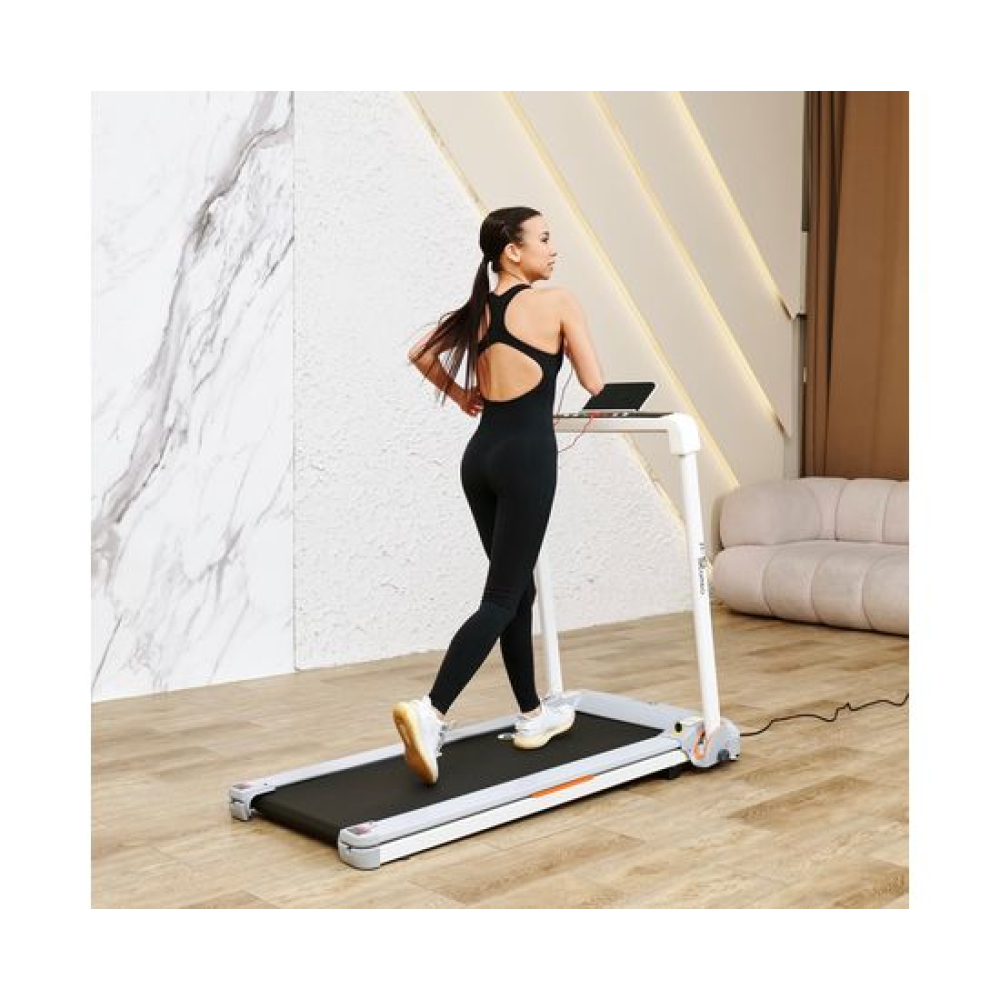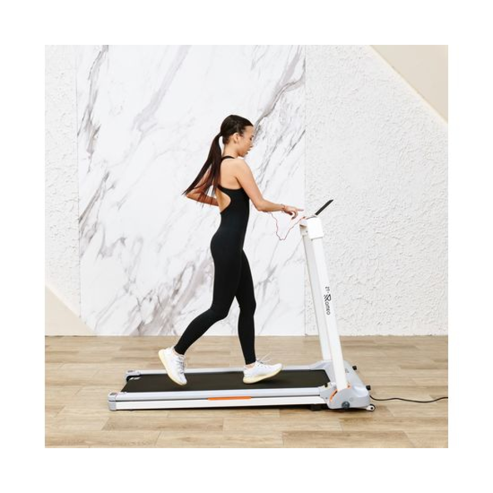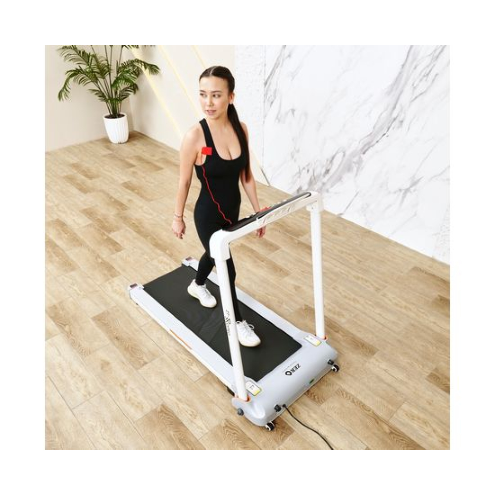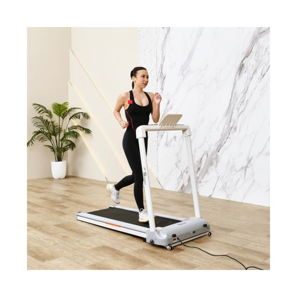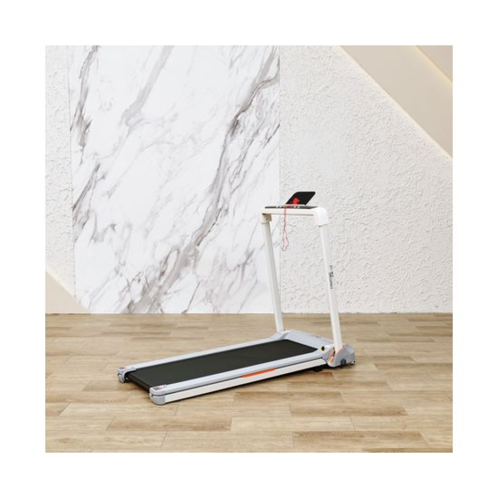 Беговая дорожка DFC ZERO — отличный выбор для домашних тренировок. Эта модель поддерживает приложение SPAX и подходит для пользователей ростом от 140 см.Максимальная нагрузка на дорожку составляет 120 кг, а скорость может варьироваться от 1 до 14 км/ч. Мощный двигатель 2 л.с. обеспечивает надёжность и эффективность работы. Размер бегового полотна составляет 121 х 41 см, а его толщина 1,4 ммАмортизационная система состоит из 4 резиновых и 2 силиконовых амортизаторов, что гарантирует комфорт во время бега. Транспортировочные ролики и компенсаторы неровности пола облегчают установку и использование дорожки.Монохромный LCD-дисплей показывает время, скорость и дистанцию, а также оснащён 12 программами для различных видов активности, что делает тренировку максимально информативной и удобной.Благодаря Bluetooth и наличию держателя для планшета, вы можете наслаждаться тренировками с максимальным комфортом. Складная конструкция позволяет удобно хранить дорожку, экономя пространство в вашем доме.