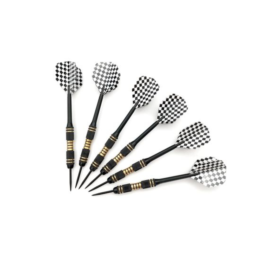 Набор дротиков для дартса DAR3324, состоящий из 6-ти дротиков с чёрно-белым узорчатым флайтом и металлическим держателем. Каждый дротик имеет вес 24,5 грамм, что делает их подходящими для использования опытными или профессиональными игроками. Толщина хвата (баррель) составляет 9 мм.