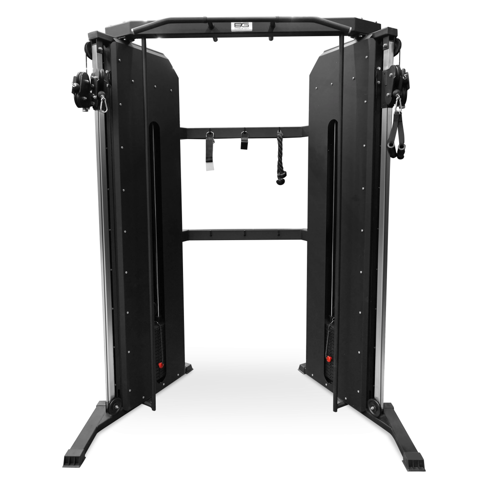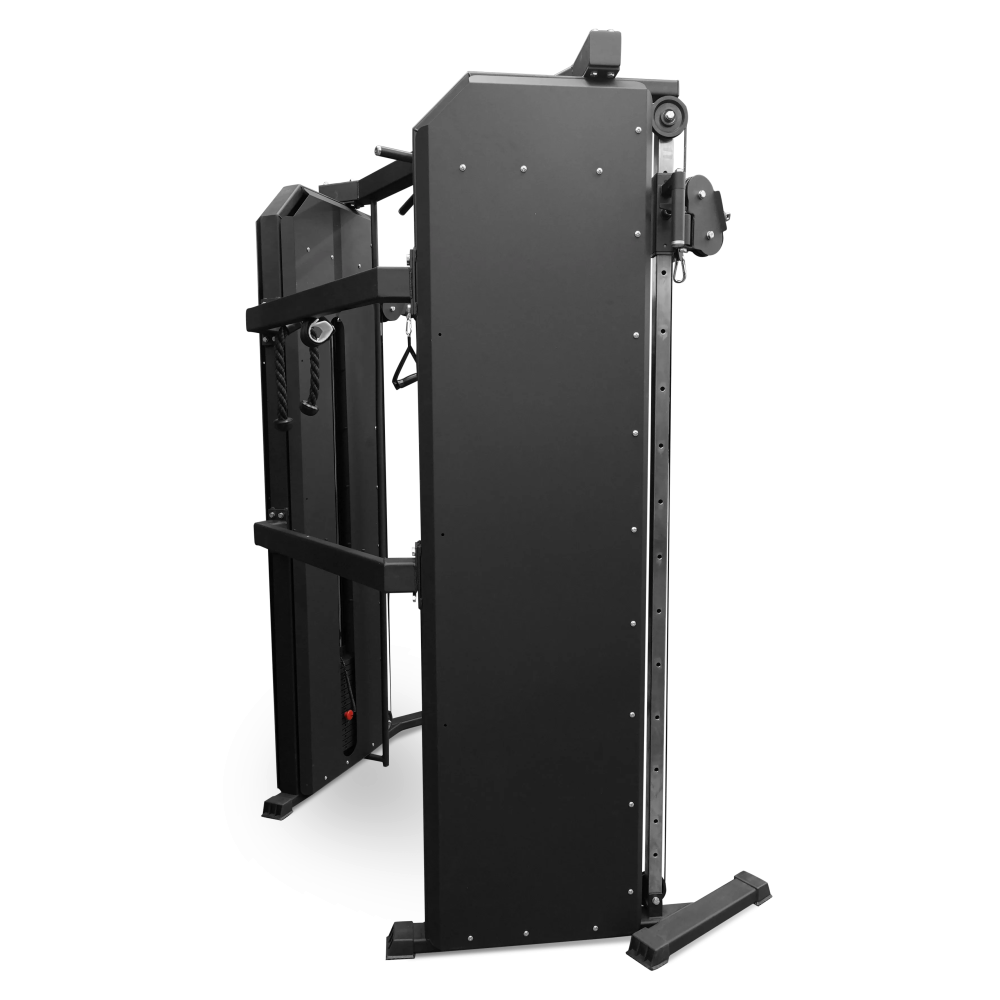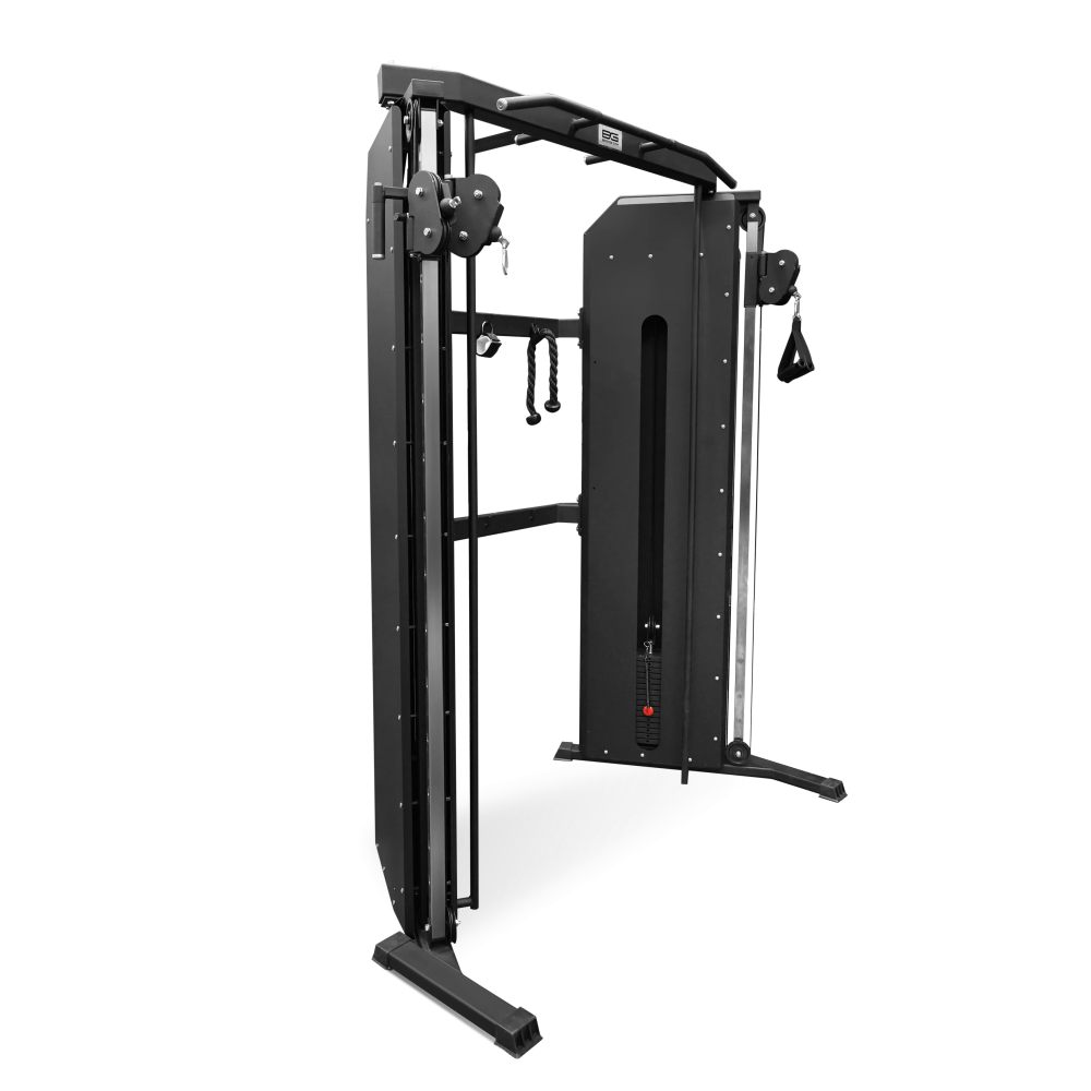 Система протяжки троса запатентована и позволяет легко менять нагрузку во время тренировок. Вес стека составляет 2*80 кг, что позволяет настроить тренировку под свои потребности. Тренажер оснащен многопозиционным турником, который позволяет выполнять разнообразные упражнения для развития мышц рук, бицепса, а также для работы с тягами и жимами. В комплекте поставляются различные рукоятки, которые позволят вам варьировать нагрузку и улучшить результаты тренировок.