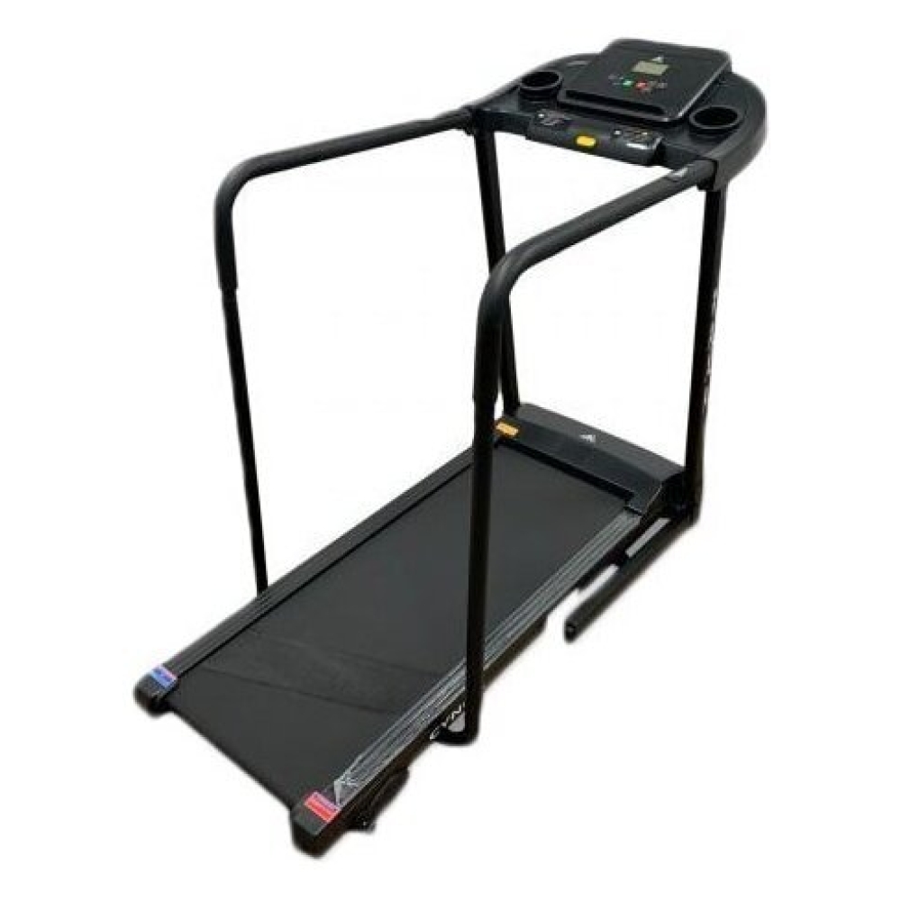 | Особенности | Модель отличается присутствием в комплектации специальных удлиннных поручней для реабилитационных занятий, возможностью регулировки наклона бегового полотна в трх положениях. |