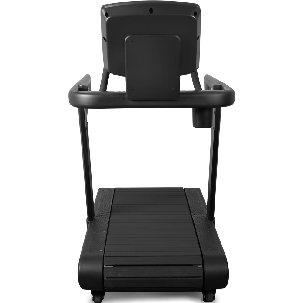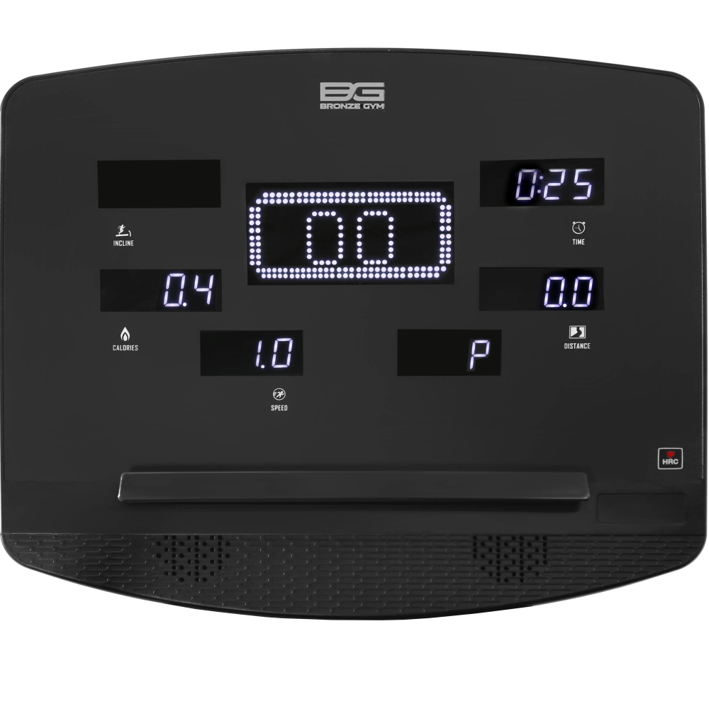 Тренировочный компьютер оборудован профессиональным LED-дисплеем с точечной матрицей. Основной экран дополняют 6 небольших буквенно-цифровых LED-дисплеев. На мониторах отображаются следующие данные: программный профиль, время, скорость, дистанция, калории, пульс, угол наклона, уровень вибрации. Все клавиши и дисплеи оснащены белой подсветкой. В число программ входит 4 вида тренировок. В механическом режиме предусмотрено 36 уровней регулировки сопротивления. Есть здесь и режим вибрации (релакса) с 10 уровнями изменения показателей.