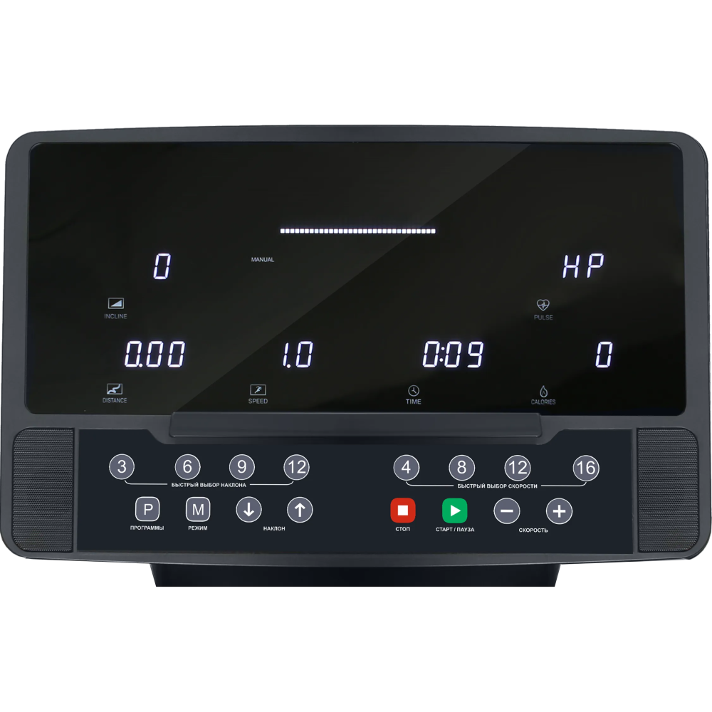 | Показания на дисплее | программный профиль, время, скорость, дистанция, калории, пульс, угол наклона |