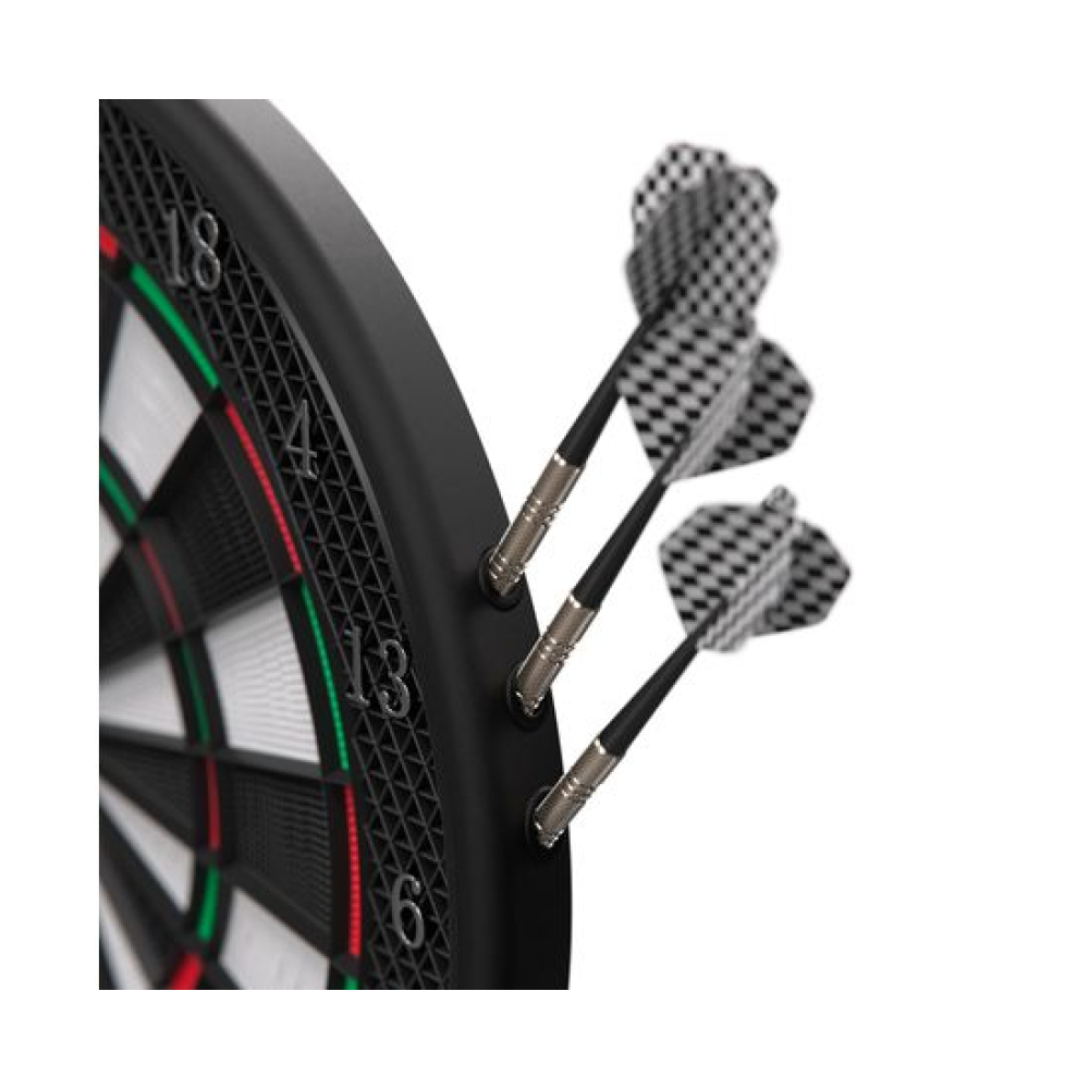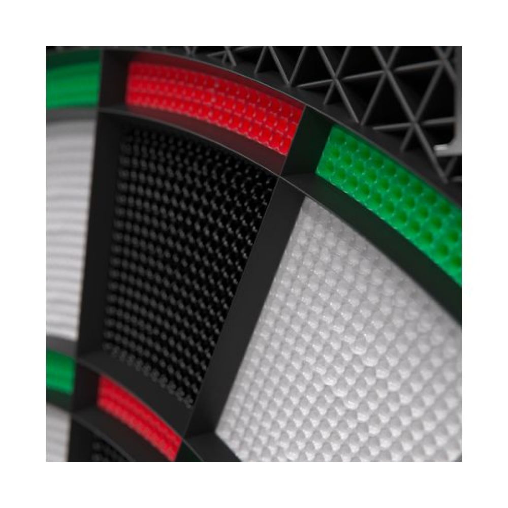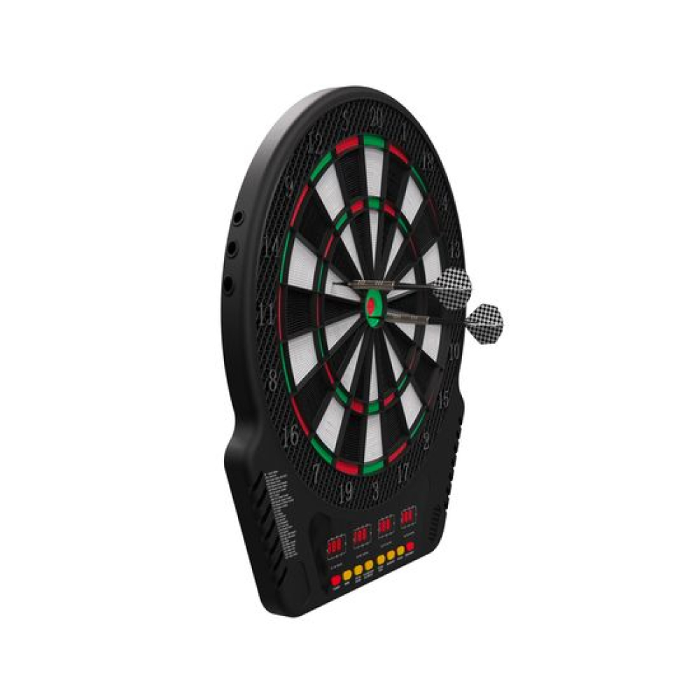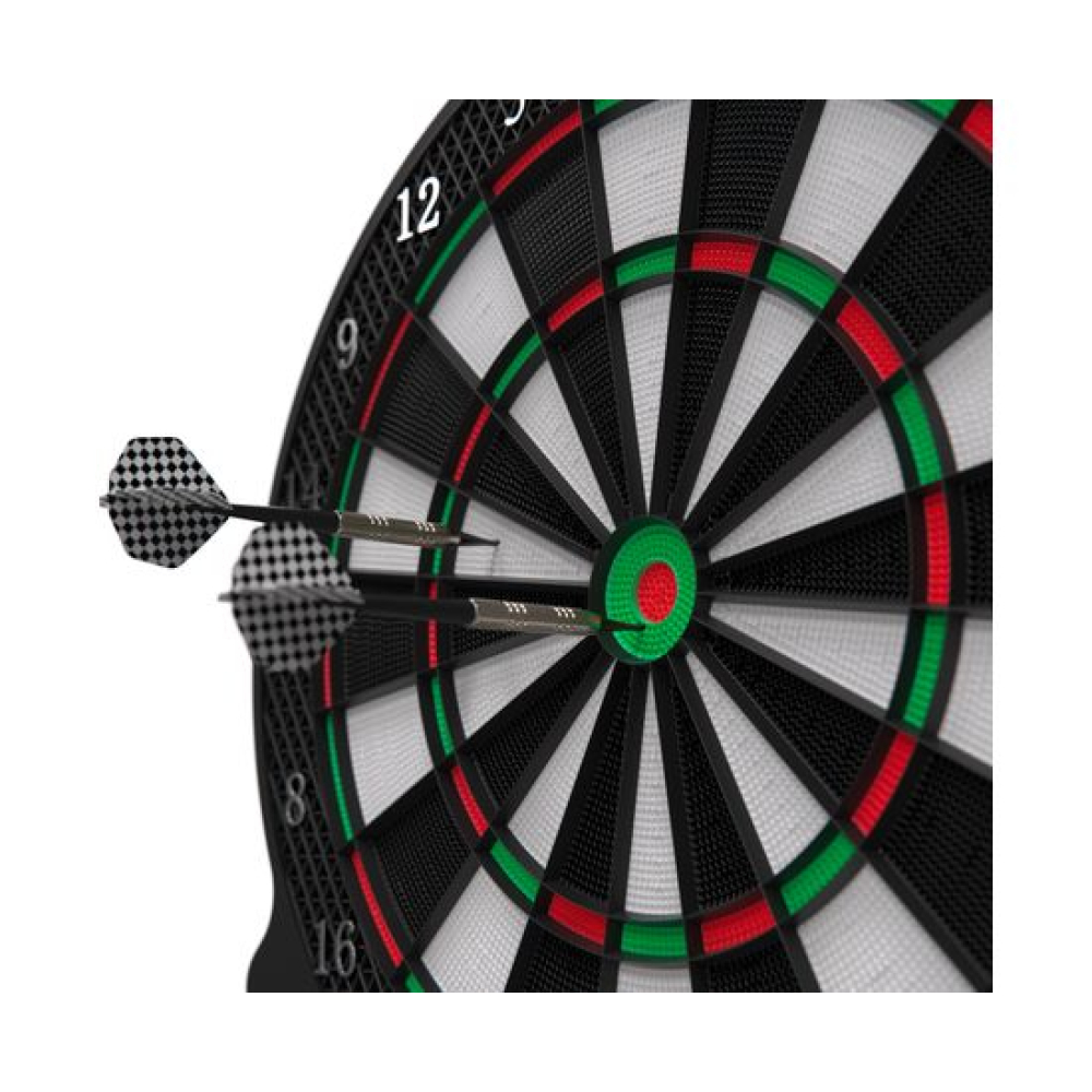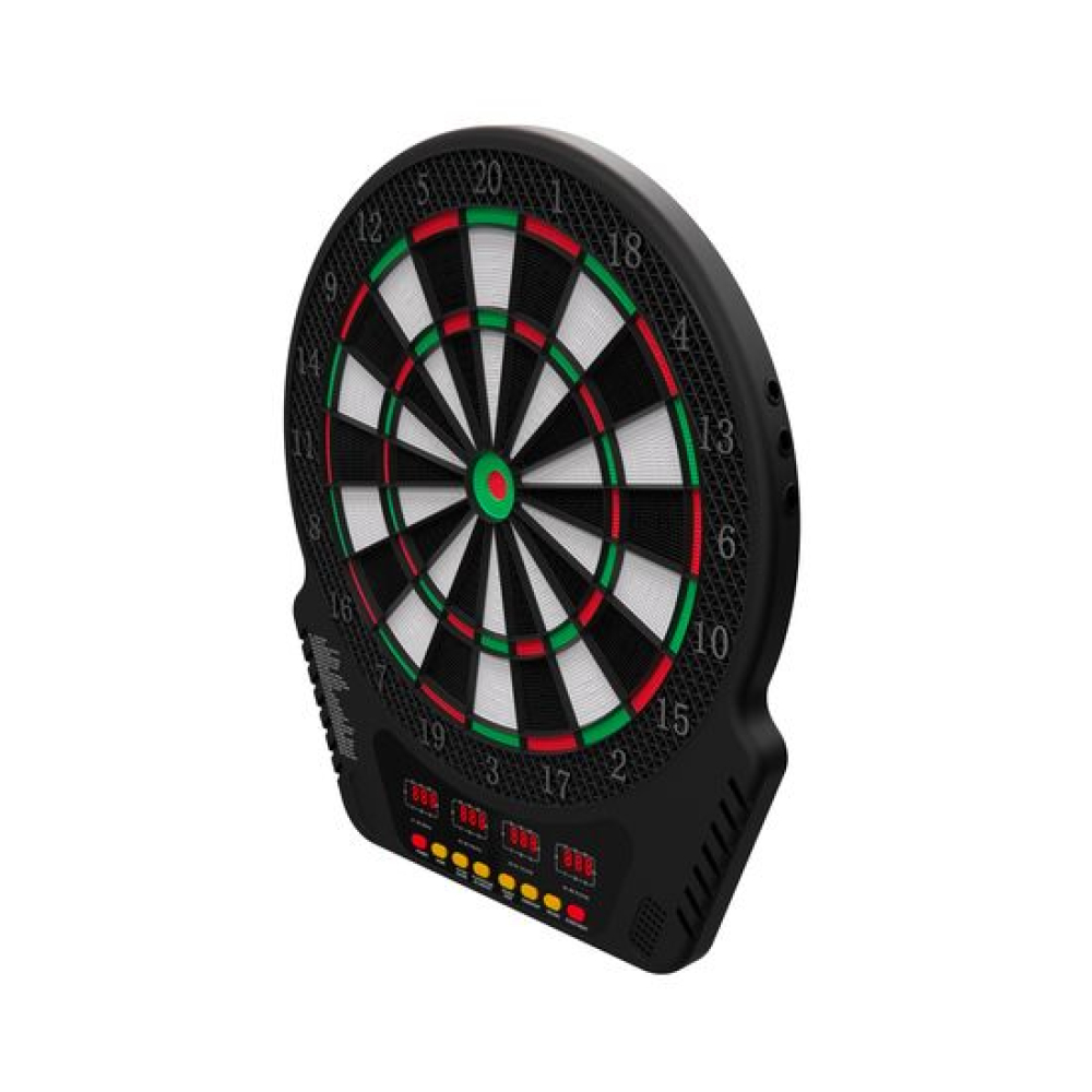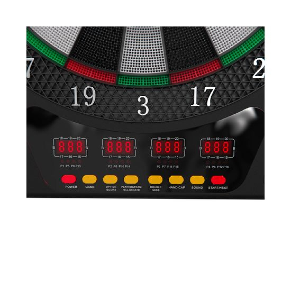 Дартс DFC DARB06E - усовершенствованная электронная мишень для дартса, предназначенная для домашнего использования. Изделие оснащено 4-мя светодиодными дисплеями с красной подсветкой, на которых отображается вся необходимая информация для игроков. В системе предусмотрено 27 видов игр и 243 опции, что позволяет играть вместе от 1 до 16 игроков. А звуковое сопровождение игры добавит интереса и азарта.Для работы мишени требуется 4 батарейки типа АА (1,5В, в комплект не входят) или адаптер питания (постоянного тока). Адаптер является опциональным, в комплект поставки не входит. В комплекте поставки есть крепление, чтобы повесить мишень на стену.Материал изготовления - ABS пластик. В комплект изделия входят 6 дротиков и 24 наконечника, также выполненных из ABS пластика. Вес дротика составляет 13 грамм, а диаметр мишени - 35 см.
