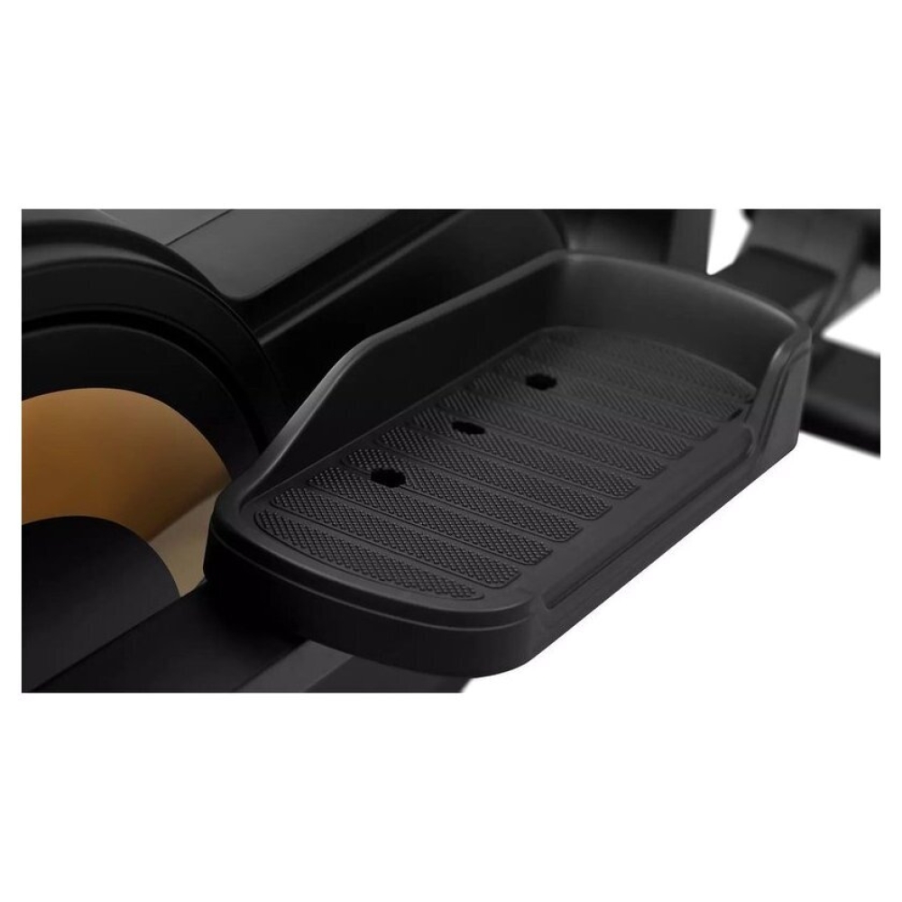 | Особенности | качественная эргономика, правильная биомеханика траектории движения;эффективный шаг 432 мм, регулировка положения педалей;плавная траектория и стабильная нагрузка, без скачков и перепадов;энергонезависимая магнитная система сопротивления 8 уровней;сенсорный датчики пульса на поручнях тренажера;надежная рама и прочная конструкция допускают интенсивные тренировки пользователям до 140 кг;высококонтрастный легкочитаемый LCD дисплей нового поколения отображает все параметры тренировки, обеспечивая легкое восприятие и понимание процесса;анатомические педали с антискользящим покрытием — обеспечивают устойчивость и безопасность спортсмена;экологичный пластик АВS первичной обработки — не выделяет канцерогенов. |