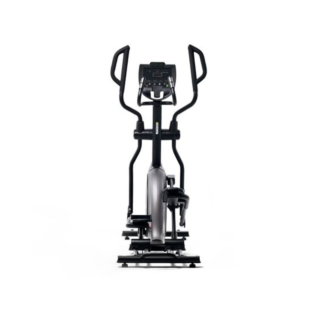 Эллиптический тренажёр премиум-сегмента для домашнего использования. Достаточно компактный и производительный, позволяет поддерживать мышцы в тонусе, используется для кардио-тренировок.Нагрузка тренажёраДомашний тренажёр E200 оснащён электромагнитной системой нагрузки с электронной регулировкой. Предусмотрено 32 уровня сложности, которые можно подбирать в соответствии с задачами и целями занятия. Максимально допустимый вес пользователя — 150 кг.МультимедиаНа передней консоли имеется LED-дисплей размерами 33 х 30 см. на нём удобно отслеживать параметры тренировки: скорость, уровень сложности, время занятия, расстояние, пульс, затраченные калории и другие. Можно выбрать одну из 12-ти предустановленных программ, также в арсенале тренажера 3 пользовательские и 1 ручная программы тренировки. В комплектацию входят адаптер и шнур питания. Музыкальный динамик и функция USB-зарядки является опцией за дополнительную плату. Заказ возможен в другой модели с опциями.Комфортные тренировкиМаховик (вес 12 кг) этого домашнего тренажёра расположен спереди. Длина шага составляет 50,8 см, что оптимально для большинства пользователей. Пульс считывается при помощи сенсорных датчиков на поручнях: достаточно держать на них руки во время тренировки для постоянного контроля. На передней консоли есть держатель для планшета. Также имеется держатель для бутылки.Хранение и транспортировкаУдобство перемещения обеспечивают транспортировочные ролики и специальная ручка для подъёма тренажёра. Благодаря компактным размерам (214,5 х 66,6 х 174 см), его удобно хранить, и он не занимает много места в помещении.