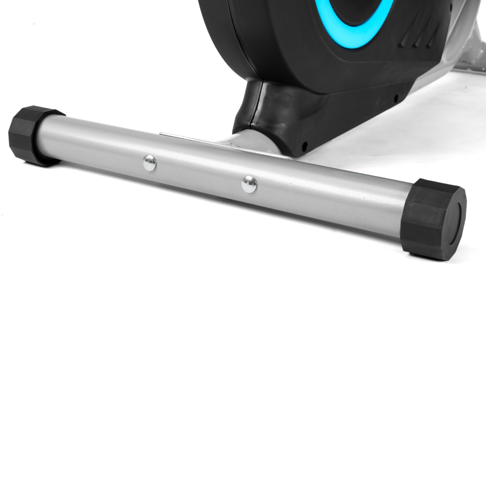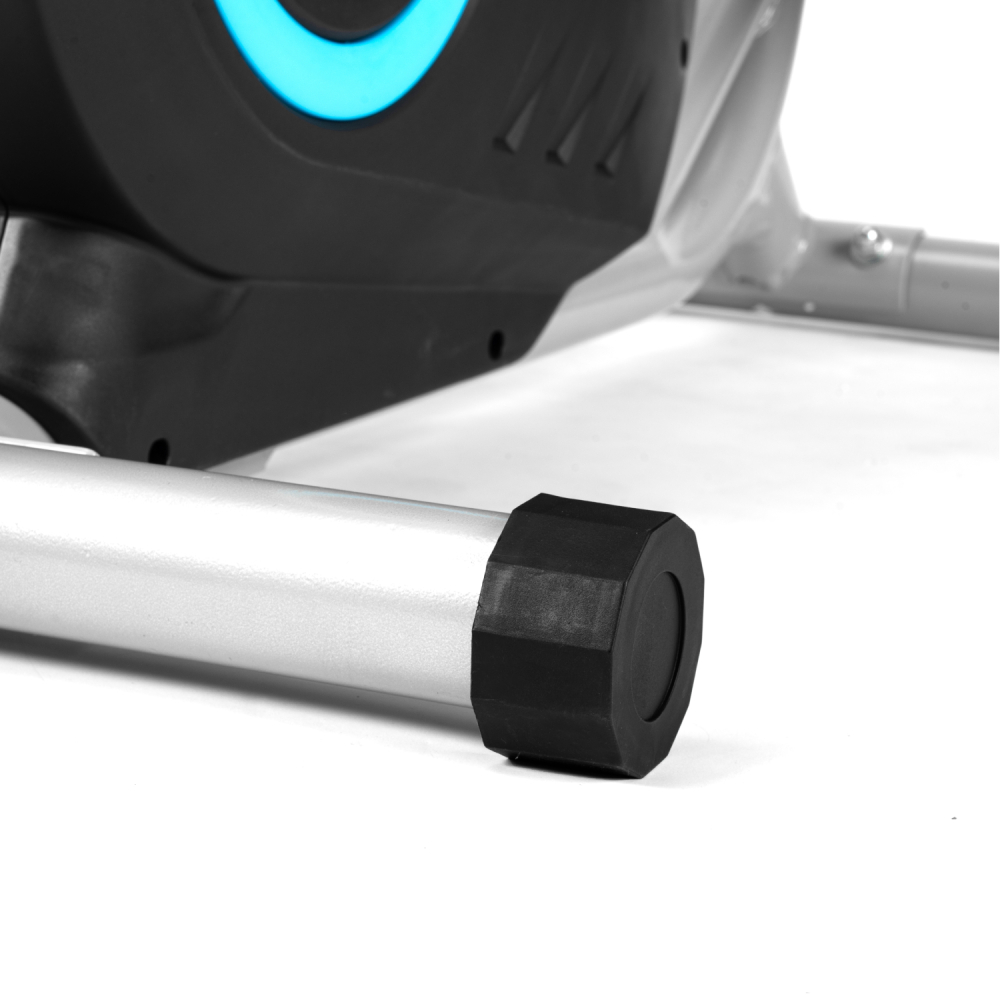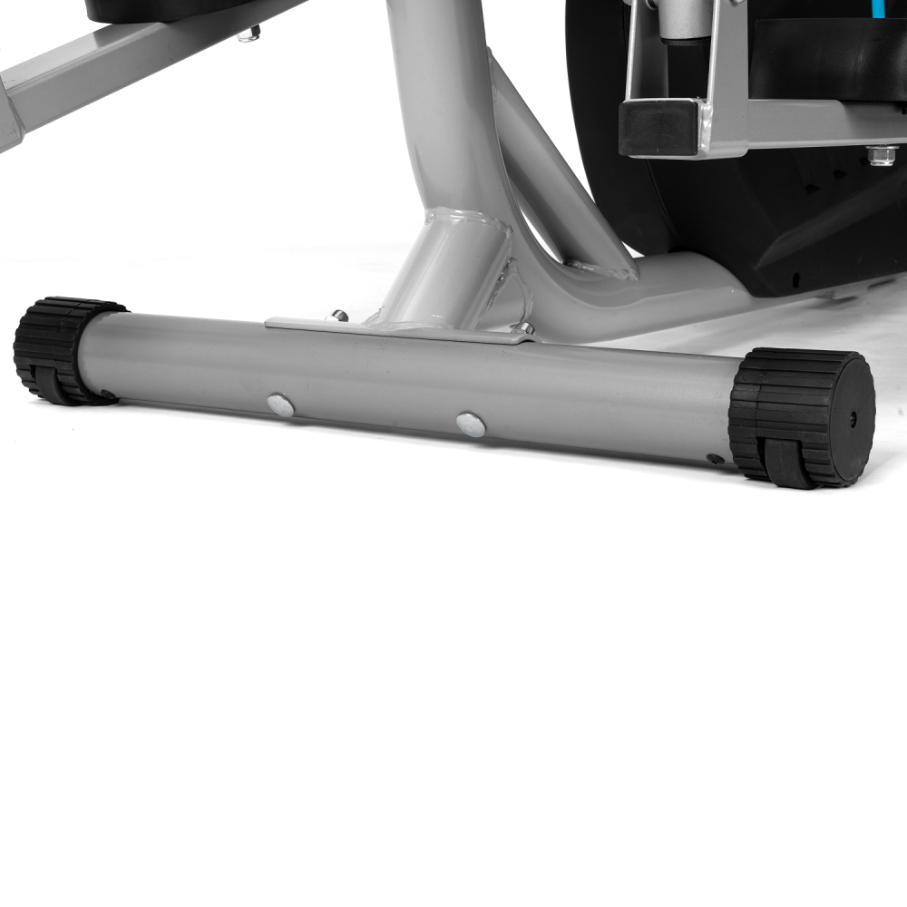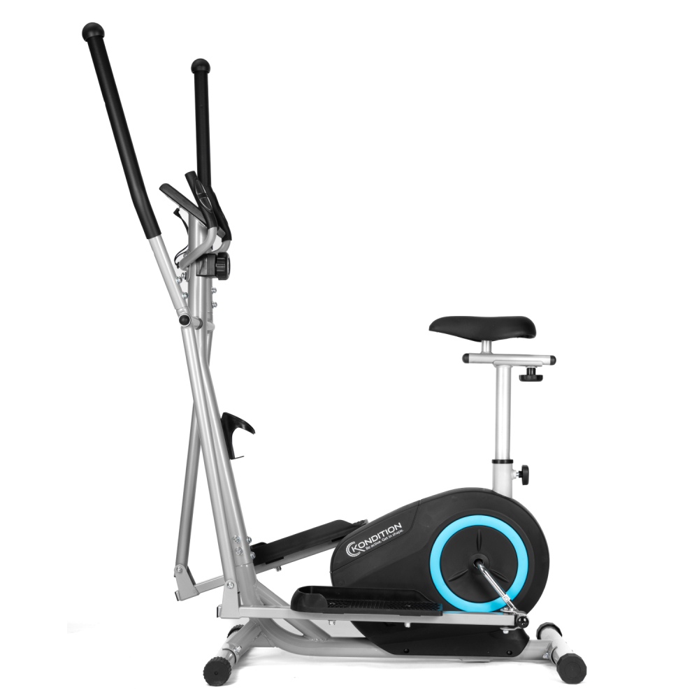 Эллиптический тренажёр DFC Condition SQ-2300C — удобный и функциональный эллиптический тренажер для дома, предназначенный для комфортных и эффективных кардио-тренировок. Во время занятий активно работают мышцы ног, а также мышцы рук, плечевого пояса и корпуса, что делает тренировки на эллипсоиде комплексными и результативными. Модель способна выдержать пользователя весом до 110 кг. Тренажёр оснащён магнитной системой нагрузки с инерционным весом маховика 7 кг. Механическая регулировка сопротивления с 8 уровнями нагрузки позволяет подобрать оптимальную интенсивность тренировки в зависимости от подготовки пользователя. Рифлёные педали с нескользящей поверхностью обеспечивают надёжную фиксацию ног и предотвращают соскальзывание. Удобный хват обеспечивают поручни: расстояние между длинными поручнями составляет 48,3 см, а между короткими — 19 см, что делает тренировку комфортной и безопасной. Сиденье регулируется на 5 уровней, обеспечивая индивидуальную посадку для пользователей разного роста. Тренажёр оснащён монохромным LCD-дисплеем, который отображает основные параметры тренировки: скорость, время, дистанцию, калории, пульс, общую дистанцию и режим сканирования. Для контроля состояния организма во время тренировки на поручнях установлены сенсорные датчики пульса. Дисплей работает от двух батареек типа AAA (не входят в комплект). Эллипсоид устойчиво стоит благодаря компенсаторам неровности пола, легко перемещается на транспортировочных роликах, а подставка под планшет и держатель для бутылки позволяют держать всё необходимое под рукой. Эллиптический тренажёр DFC Condition SQ-2300C сочетает комфорт, функциональность и простоту в использовании. Такой эллипс станет отличным решением для регулярных и эффективных домашних тренировок. Гарантия на детали подверженные естественному износу в процессе эксплуатации — до 6 месяцев с момента установки тренажера при условии регулярного планового ТО. Важно: гарантия не распространяется на преждевременный износ из-за чрезмерной эксплуатации тренажера.