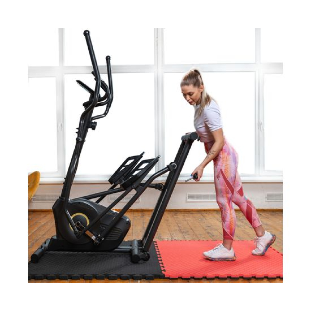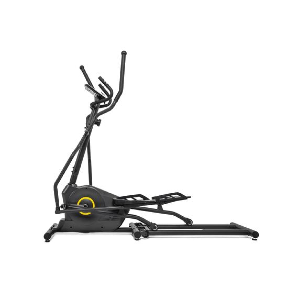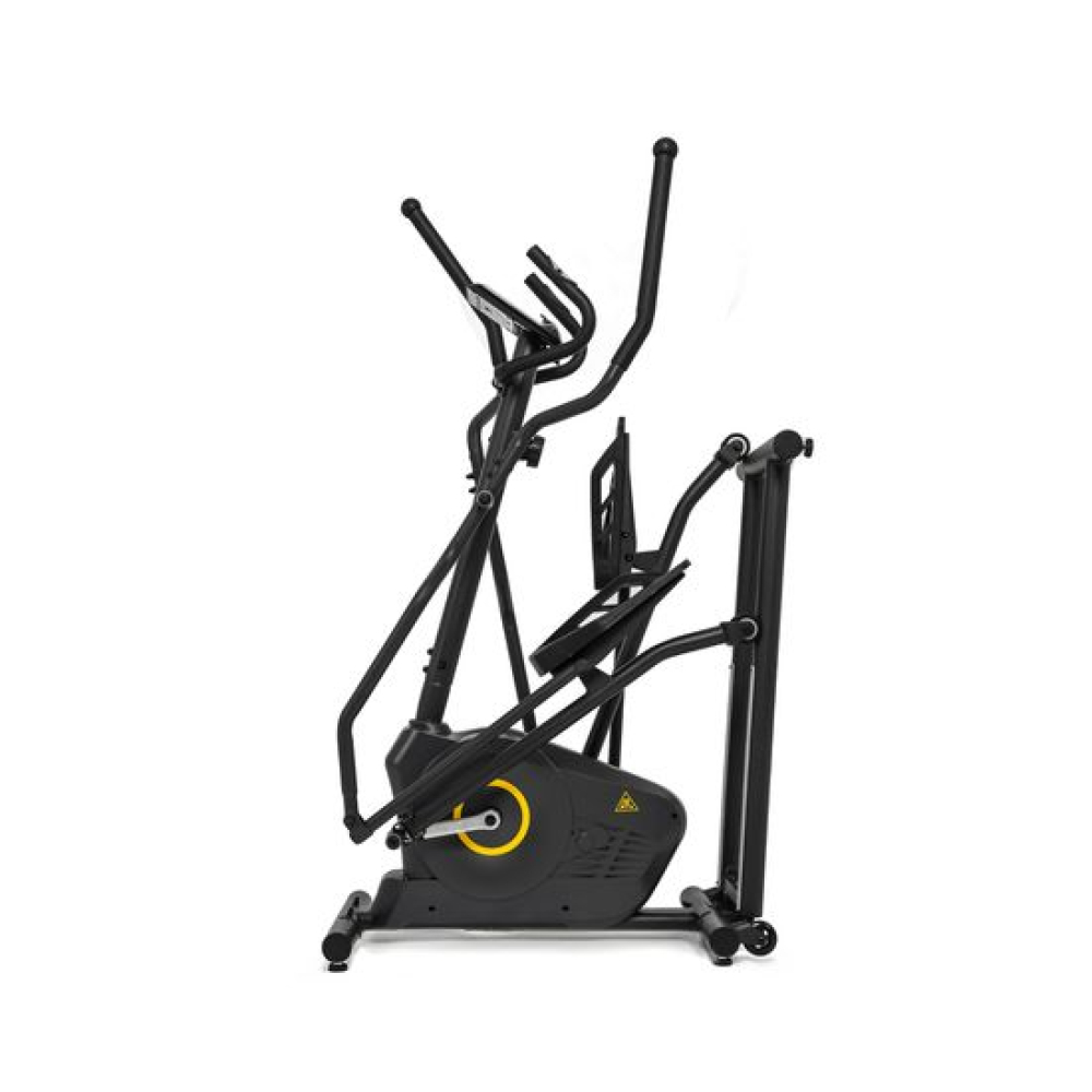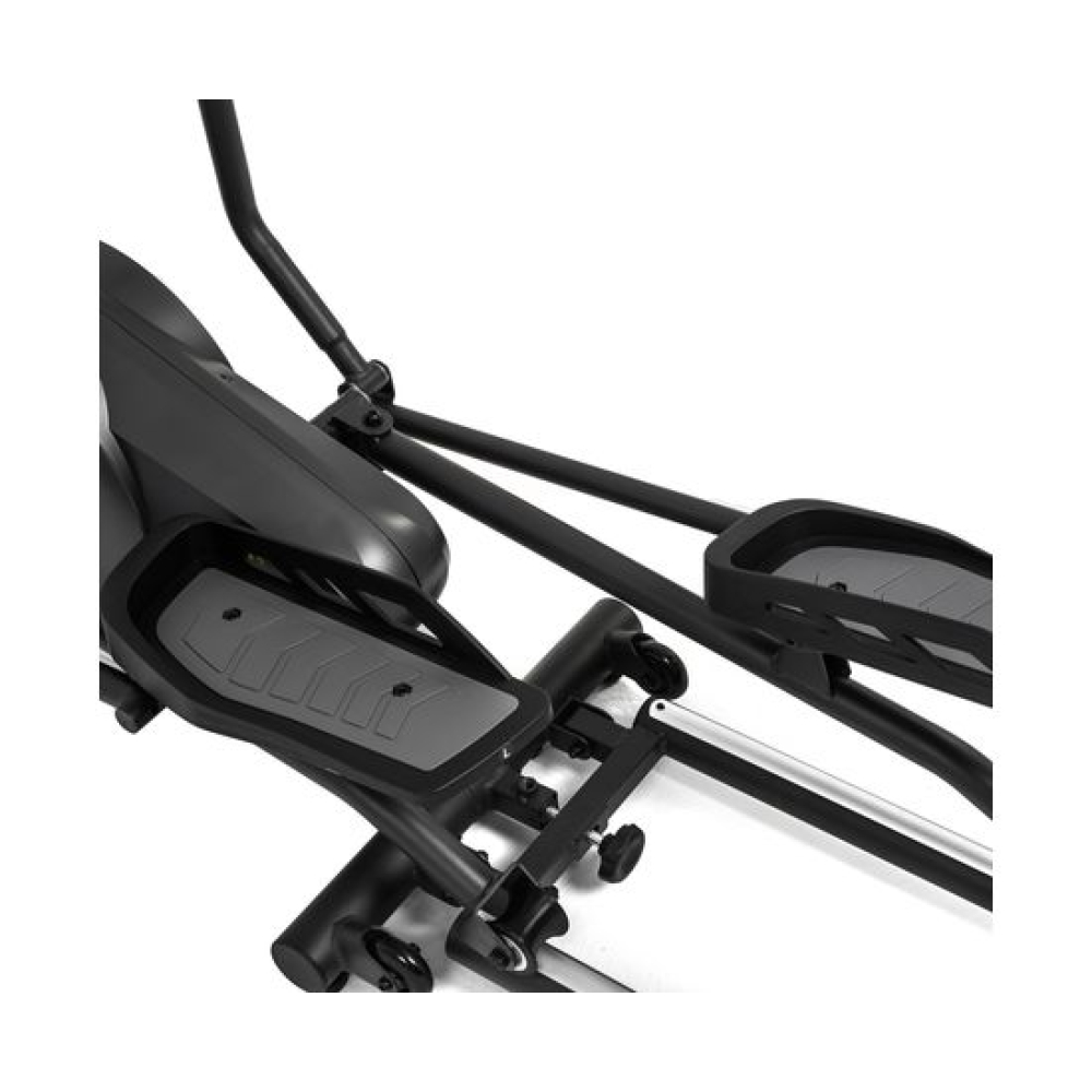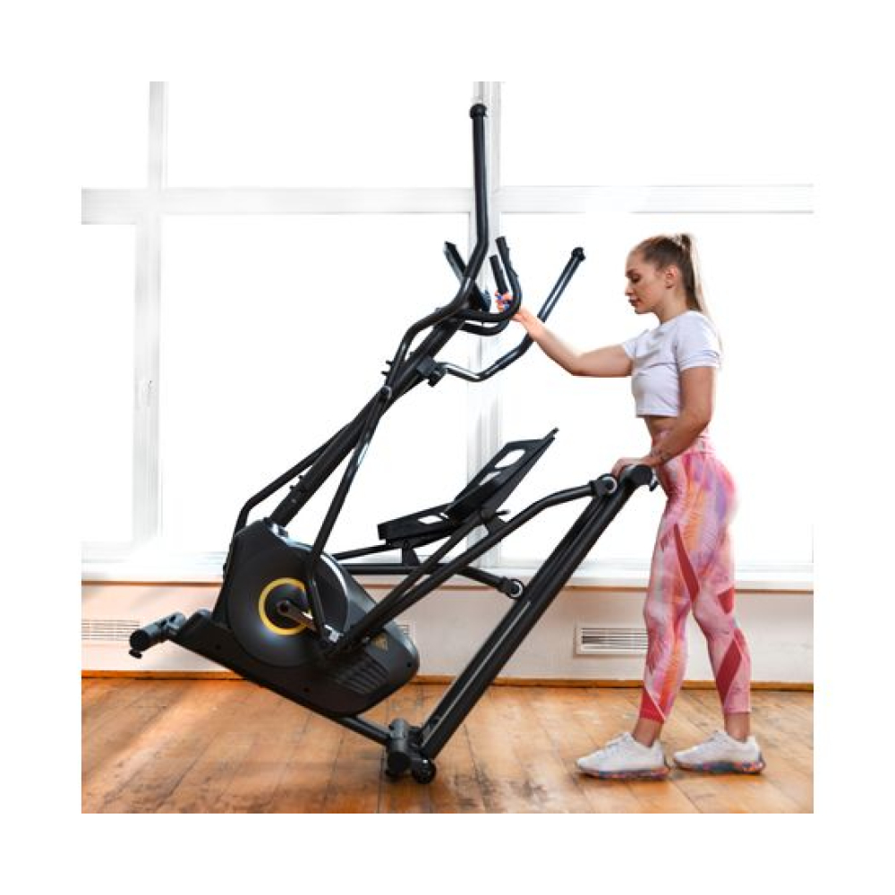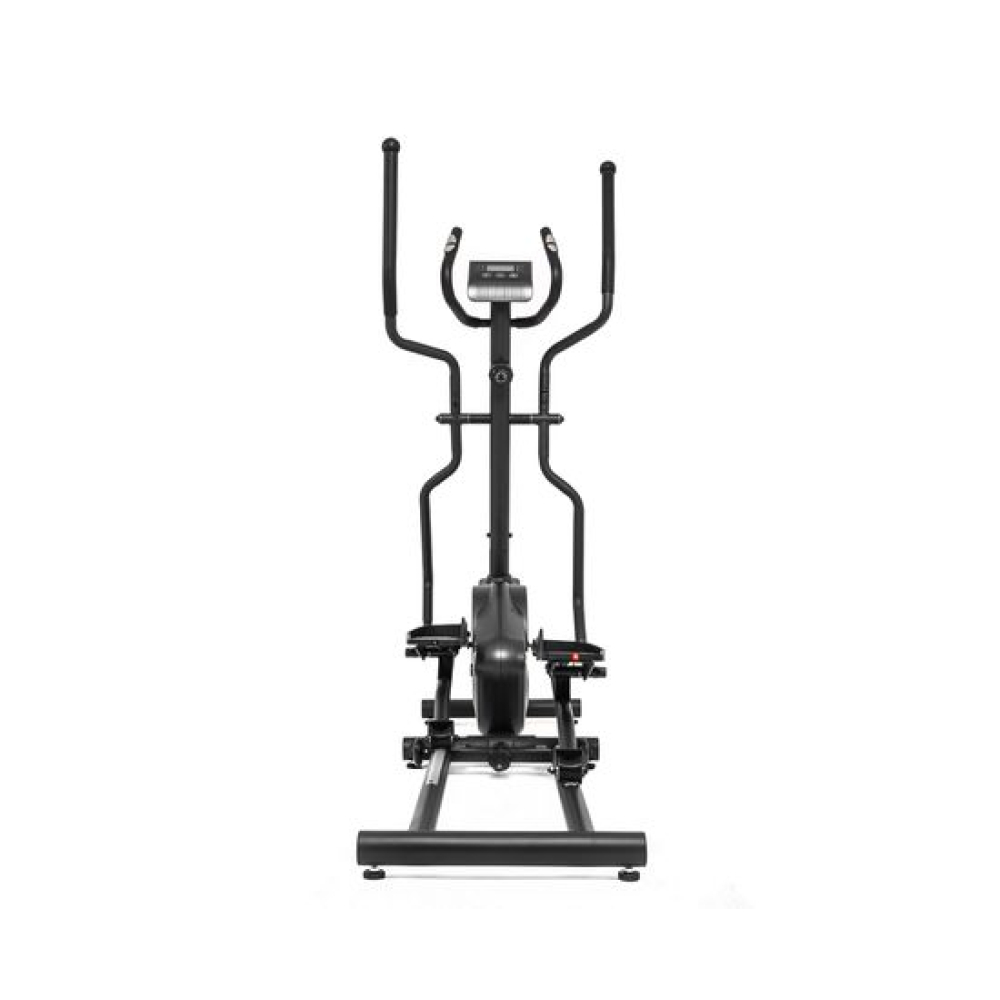 E6710T — эллиптический тренажёр компактных размеров для домашнего применения и пользователей не тяжелее 120 килограмм. Имеет складную конструкцию, что облегчает его хранение в ограниченном пространстве даже самых компактных квартир.Система нагрузкиСистема нагрузки — магнитная, с механической регулировкой. Для занятий доступно 8 уровней сложности. Для выбора подходящего уровня нагрузки необходимо установить поворотный регулятор в соответствующем положении.Комфорт и удобство тренировокВ этой модели эллиптического тренажёра есть всё для комфортных и результативных тренировок. На передней консоли можно удобно разместить планшет. Там же расположен дисплей, где отображаются основные параметры тренировки: скорость, дистанция, количество потраченных калорий, уровень пульса. Пульс считывается при помощи датчиков, расположенных на поручнях.Хранение и транспортировкаТренажёр удобно хранить, благодаря складной системе. В сложенном виде он не занимает много пространства. Модель оснащена транспортировочными роликами, что позволяет легко перемещать его в доме или квартире. В комплектацию входят инструменты для сборки.