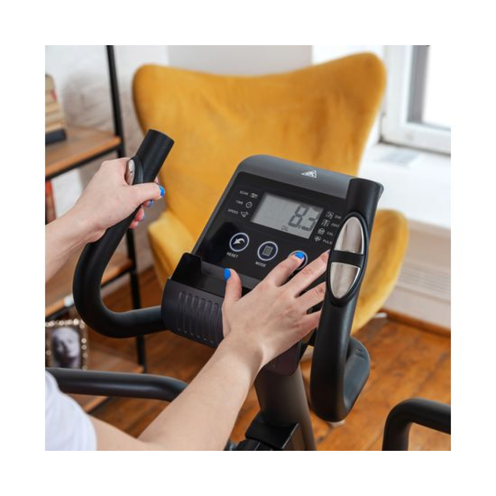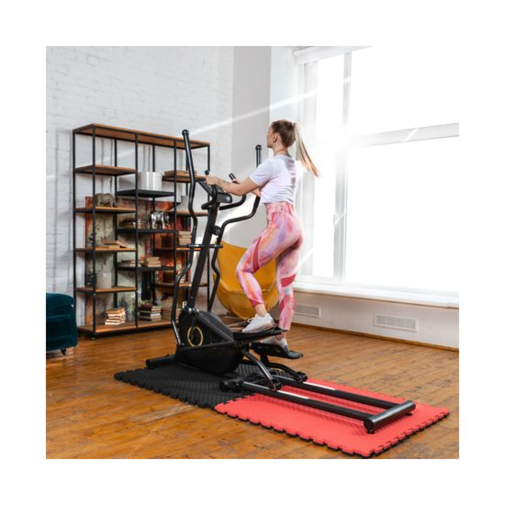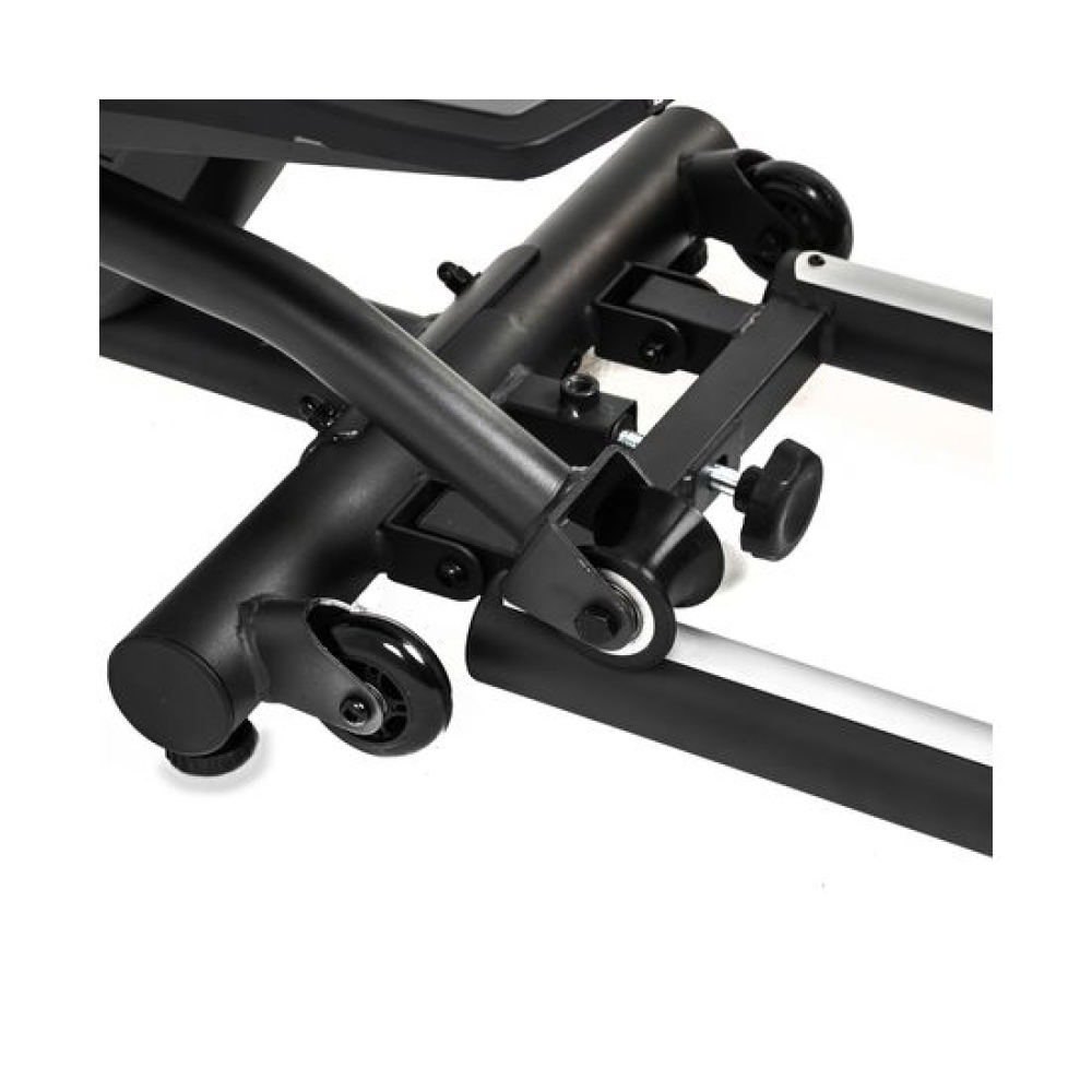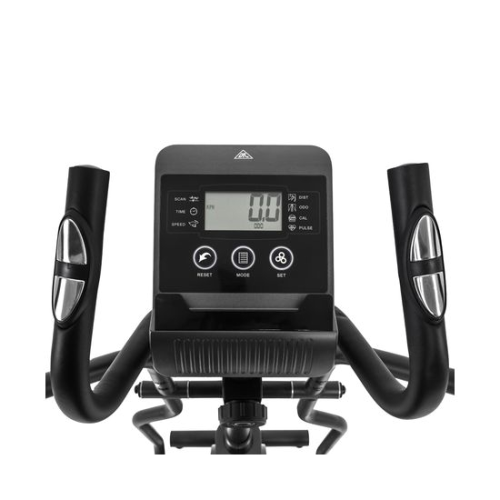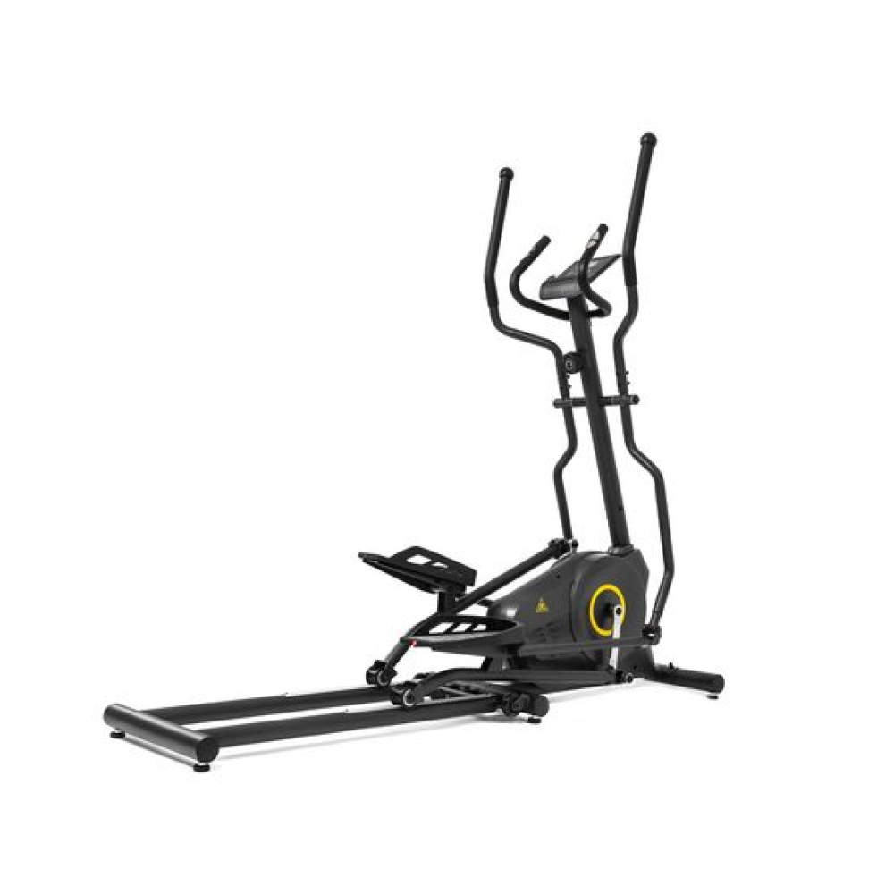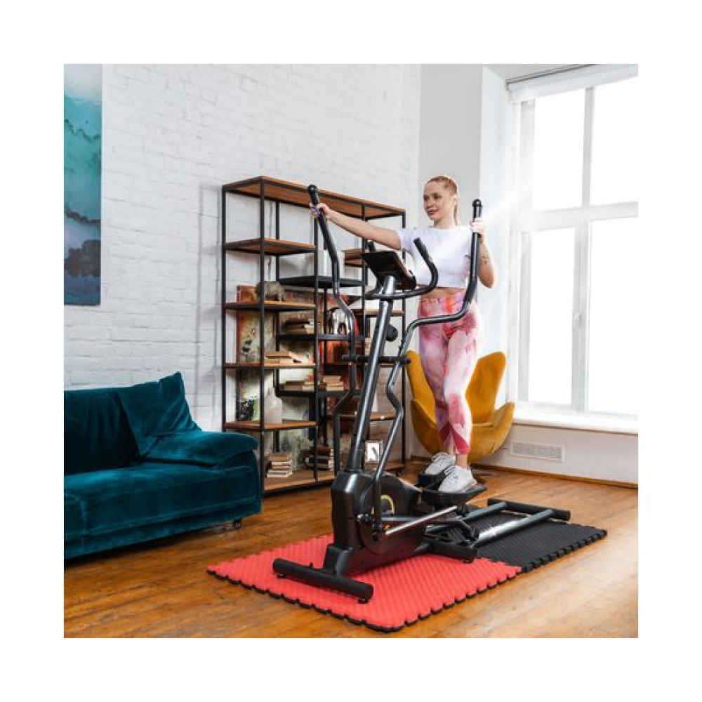 E6710T — эллиптический тренажёр компактных размеров для домашнего применения и пользователей не тяжелее 120 килограмм. Имеет складную конструкцию, что облегчает его хранение в ограниченном пространстве даже самых компактных квартир.Система нагрузкиСистема нагрузки — магнитная, с механической регулировкой. Для занятий доступно 8 уровней сложности. Для выбора подходящего уровня нагрузки необходимо установить поворотный регулятор в соответствующем положении.Комфорт и удобство тренировокВ этой модели эллиптического тренажёра есть всё для комфортных и результативных тренировок. На передней консоли можно удобно разместить планшет. Там же расположен дисплей, где отображаются основные параметры тренировки: скорость, дистанция, количество потраченных калорий, уровень пульса. Пульс считывается при помощи датчиков, расположенных на поручнях.Хранение и транспортировкаТренажёр удобно хранить, благодаря складной системе. В сложенном виде он не занимает много пространства. Модель оснащена транспортировочными роликами, что позволяет легко перемещать его в доме или квартире. В комплектацию входят инструменты для сборки.