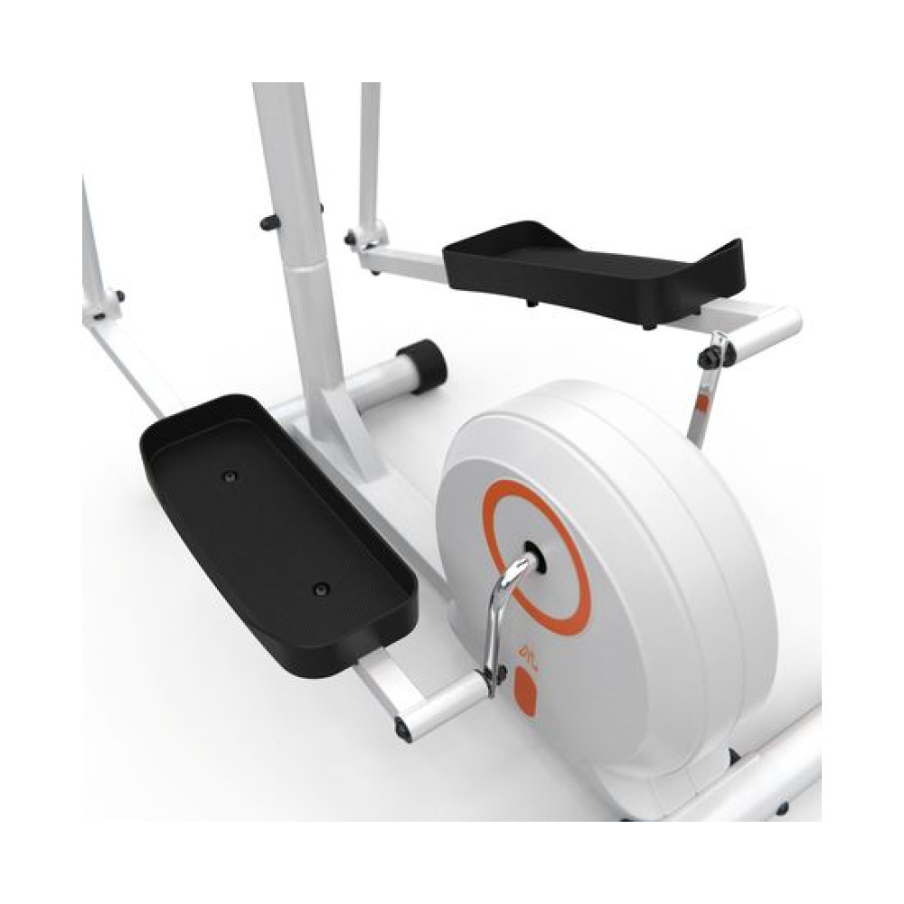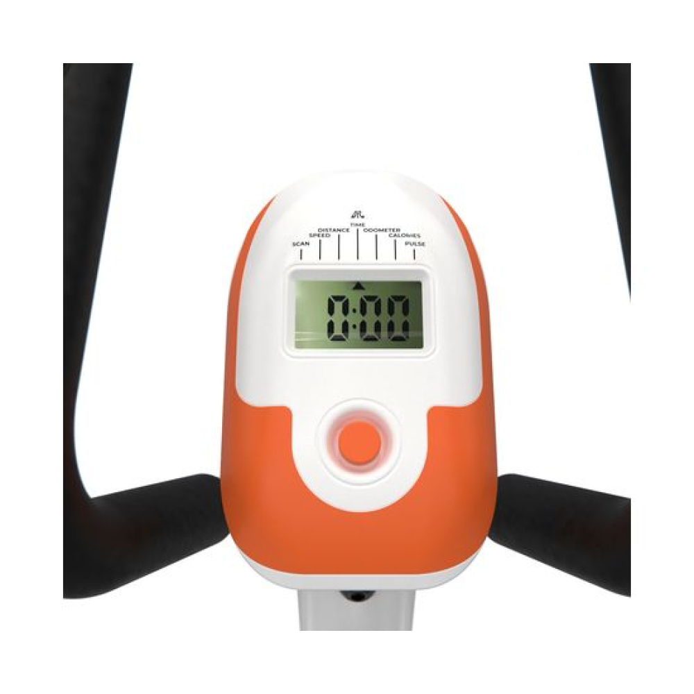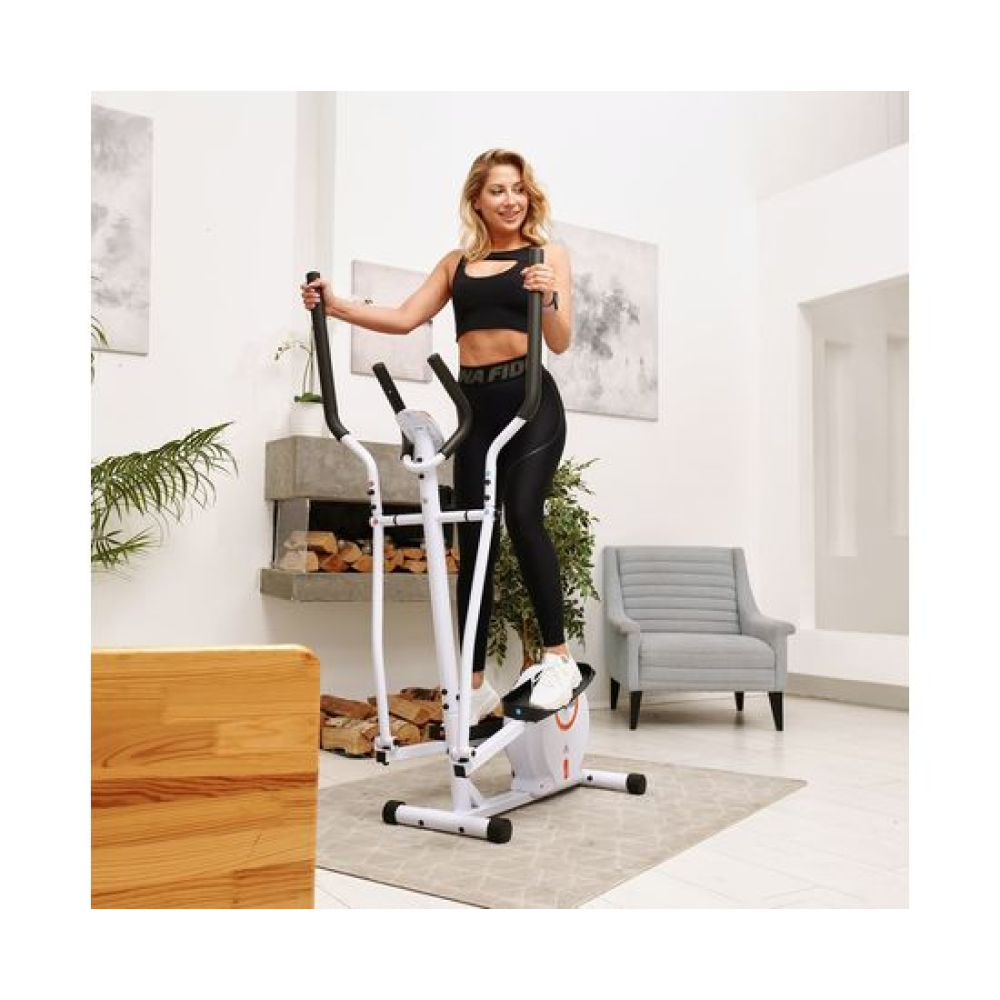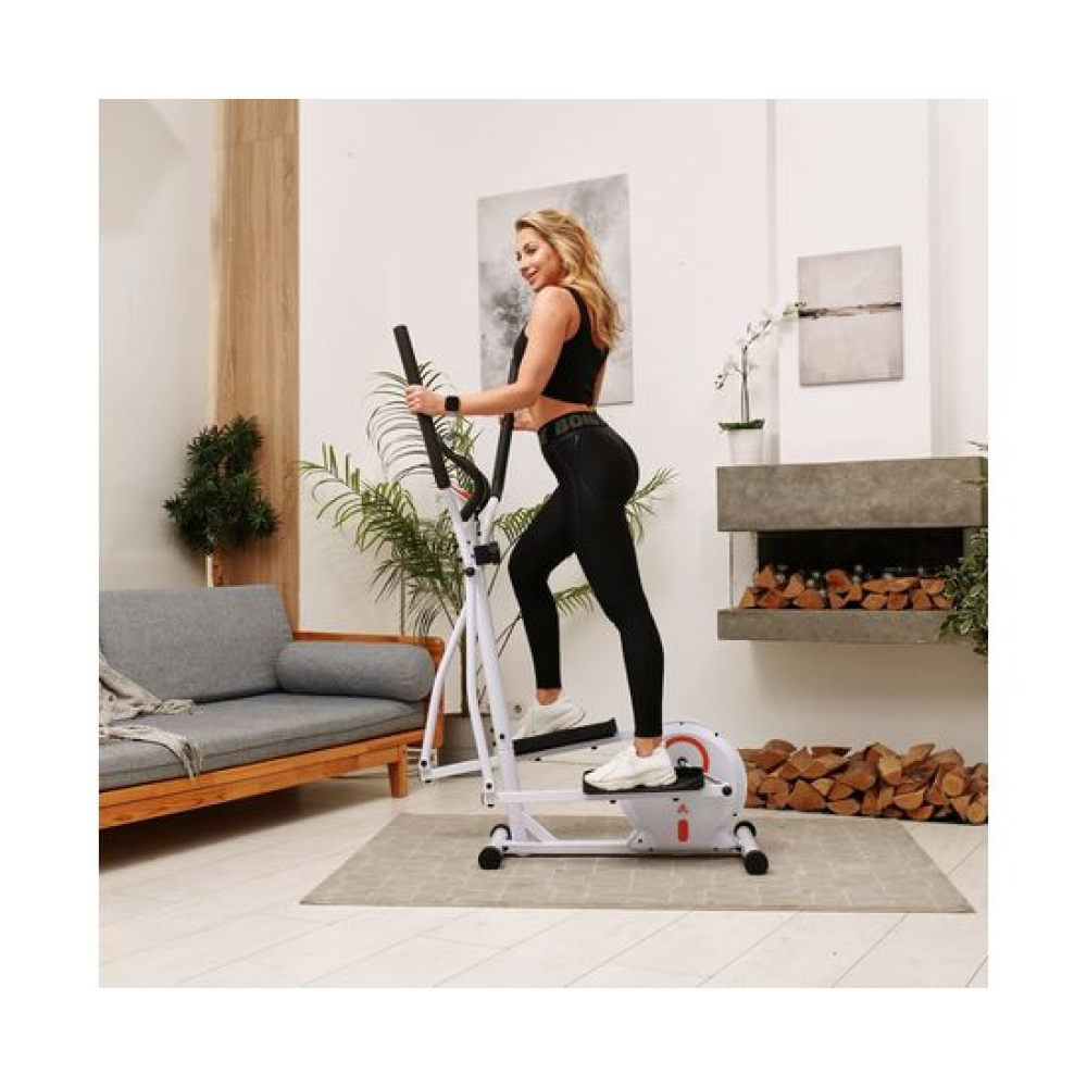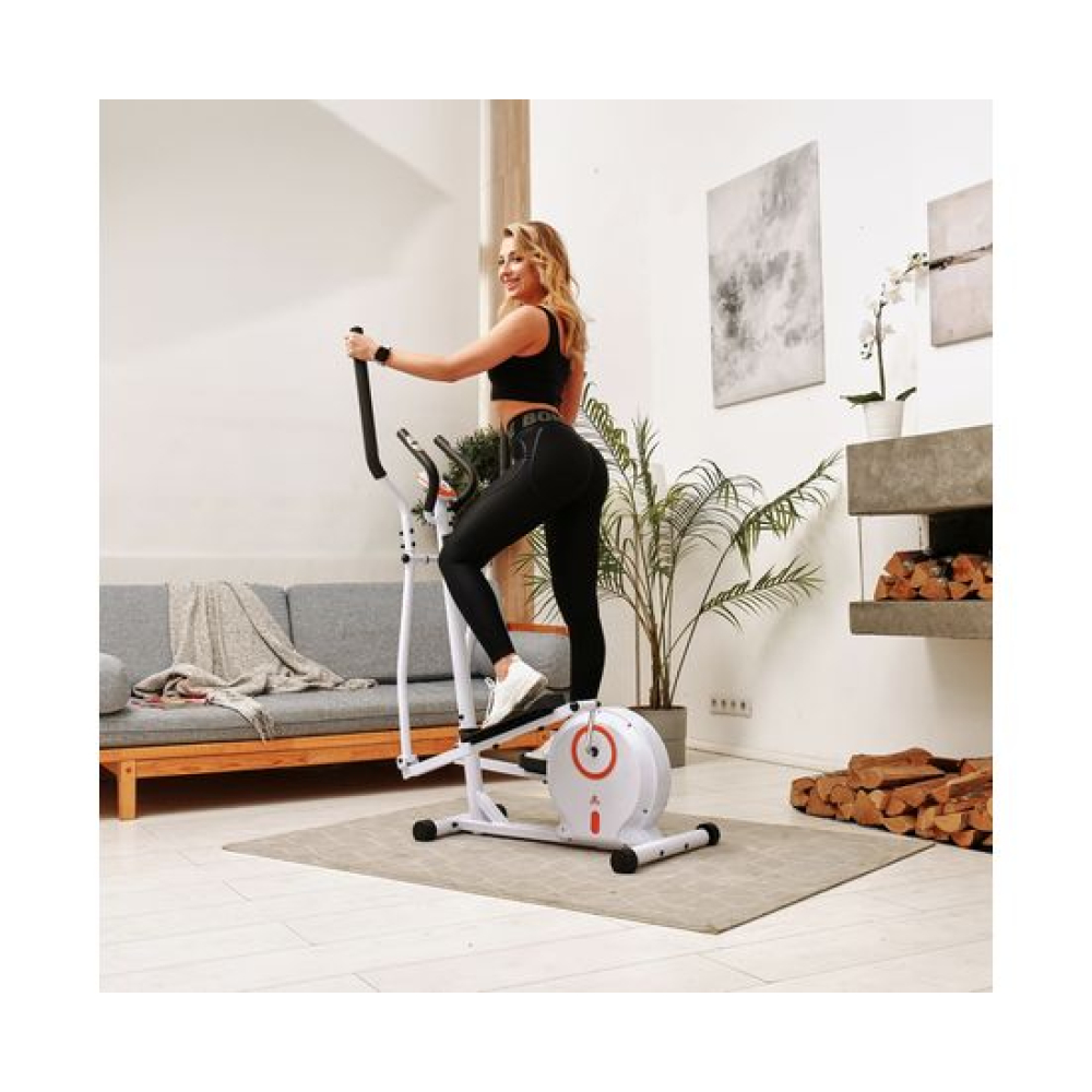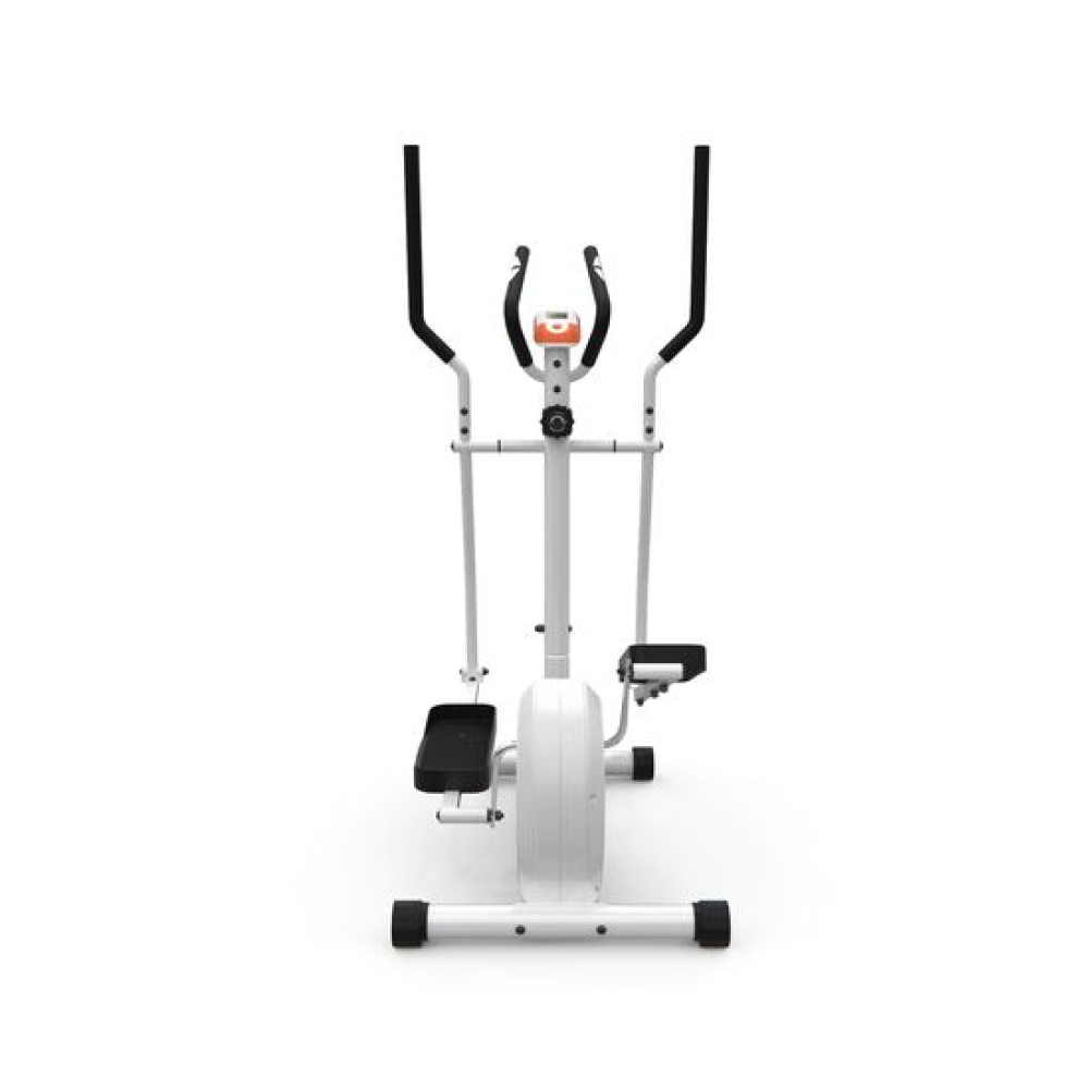 Хватит искать повод для похода в спортивный зал! С компактным и эффективным эллиптическим тренажером DFC E85001HWO оранжево-белого цвета вы можете заниматься в любое время, не выходя из своего дома.Этот тренажер обладает магнитной системой нагрузки с возможностью регулировки на 8 уровней. Вы сами вольны выбирать уровень, который соответствует вашим целям и физической подготовке. Регулировка производится механически, с помощью ручки под консолью.Тренажер E85001HWO подойдет людям с любой физической подготовкой, идеально подойдет как для начинающих, так и для более опытных спортсменов. Максимальный вес пользователя - 110 кг. Расстояние между педалями составляет 26,5 см, а длина шага - 28 см. Педали покрыты рифлёной поверхностью, что обеспечивает устойчивое положение ног и предотвращает скольжение.Дополнительное преимущество эллиптического тренажера E85001HWO - это сенсорные датчики пульса, расположенные на поручнях. Теперь вы можете контролировать свой пульс во время занятий и поддерживать его в необходимом для вас режиме.Мониторинг вашего прогресса также доступен через монохромный LCD дисплей. Вы можете отслеживать время, скорость, расстояние, одометр, калории и пульс. Для работы консоли понадобятся всего лишь 2 батареи типа "АА" или "ААА" 1,5В, что значительно упрощает использование этого тренажера всеми членами семьи.Покупайте эллиптический тренажер DFC E85001HWO и получите возможность заниматься спортом в удобное время прямо у себя дома! Доставка осуществляется по всей территории России.