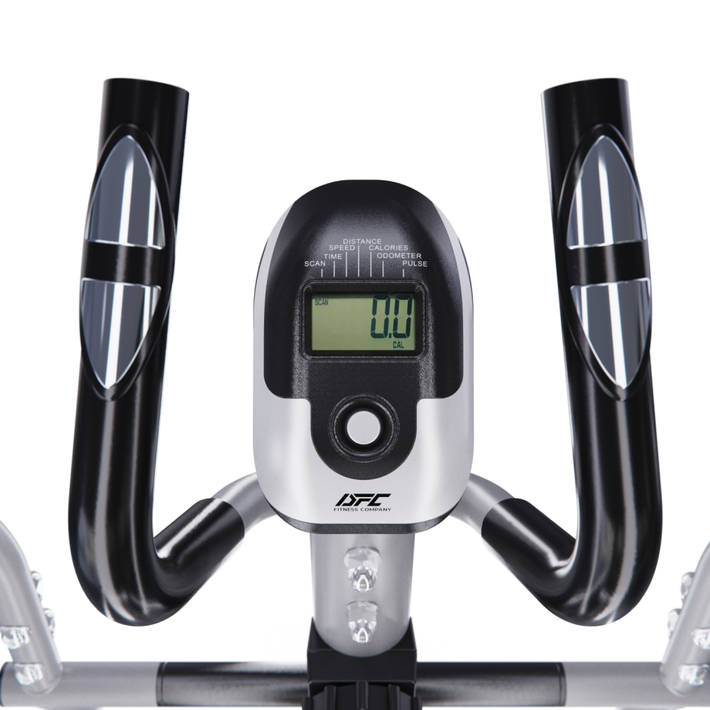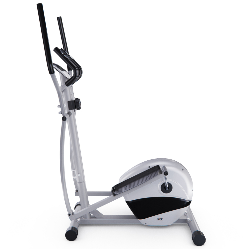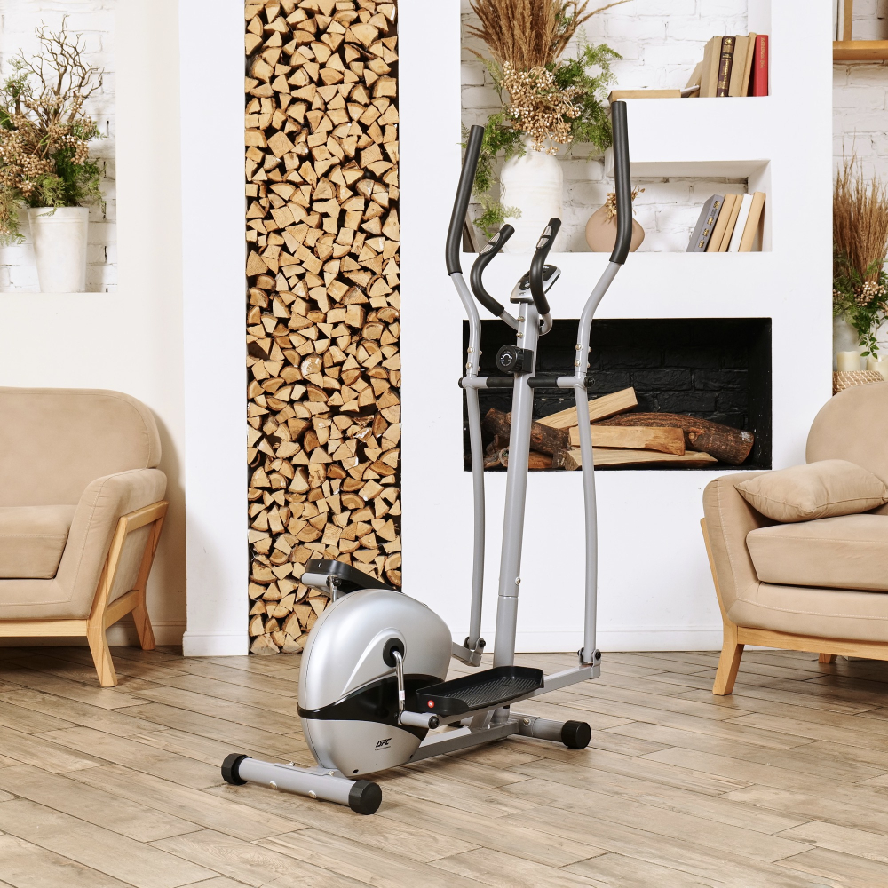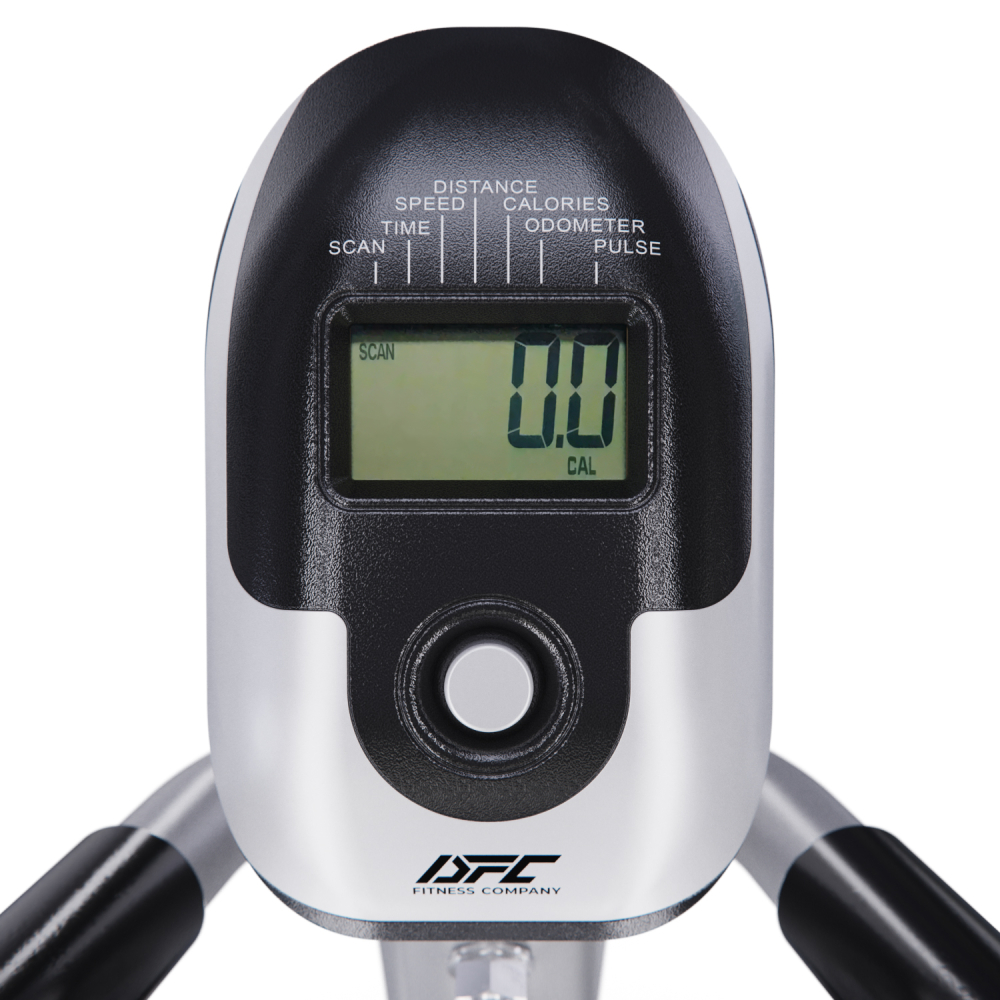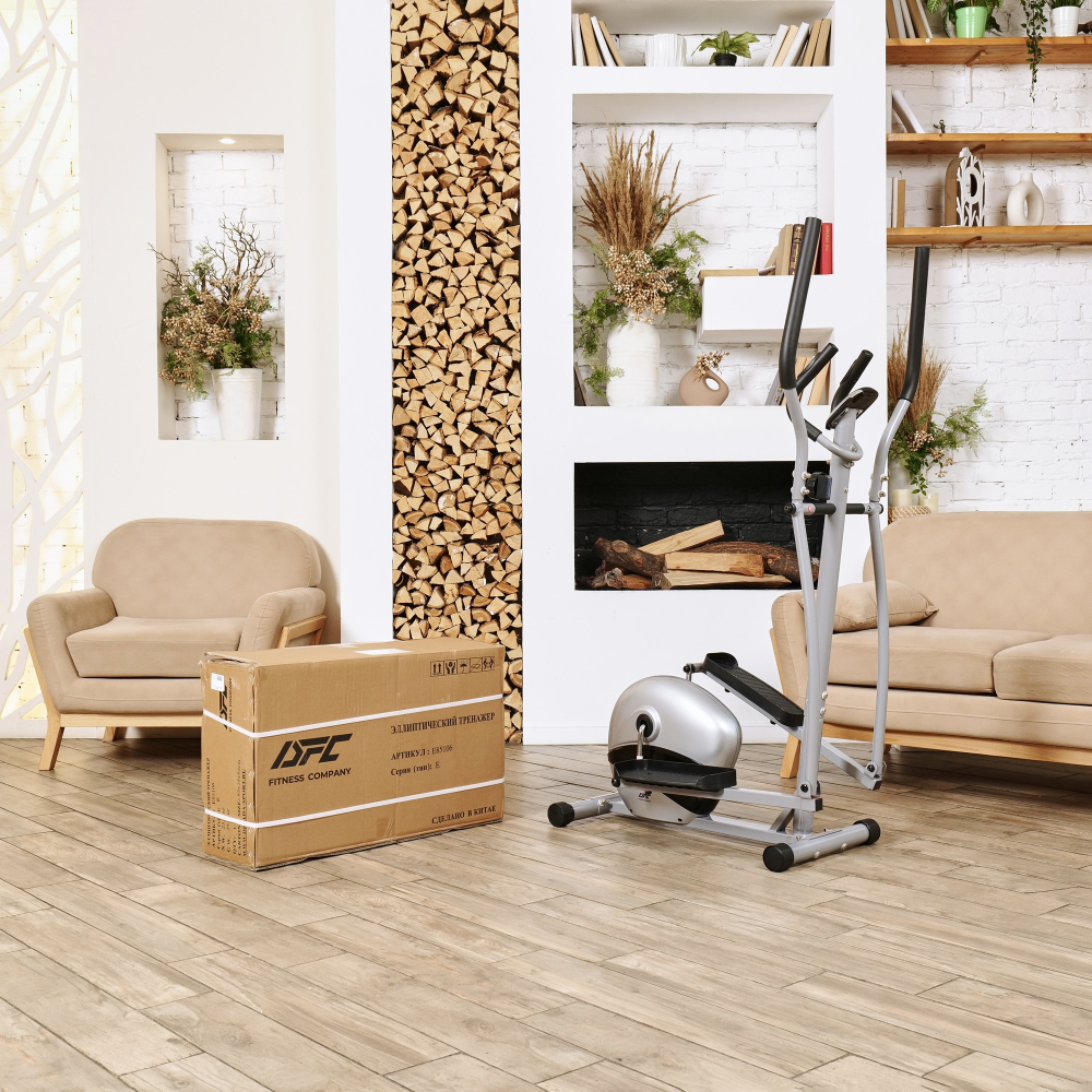 Эллиптический тренажёр DFC E85106 — идеальное решение для домашних тренировок. Он подходит для пользователей весом до 100 кг и оснащён магнитной системой нагрузки с 8 уровнями регулировки. Благодаря компактным размерам и компенсаторам неровности пола, тренажёр легко разместить в любом помещении. Сенсорные датчики на поручнях позволяют контролировать пульс во время тренировки. Монохромный дисплей показывает скорость, время, расстояние, обороты, пульс и калории, что позволяет отслеживать результаты и корректировать программу тренировок. Простая механическая регулировка нагрузки и питание от батареек типа АА или ААА делают тренажёр экономичным и удобным в использовании.