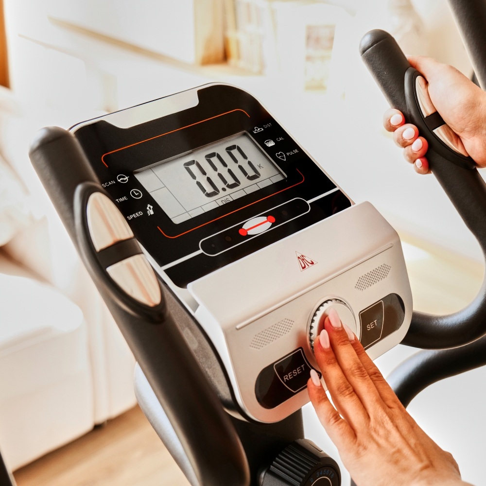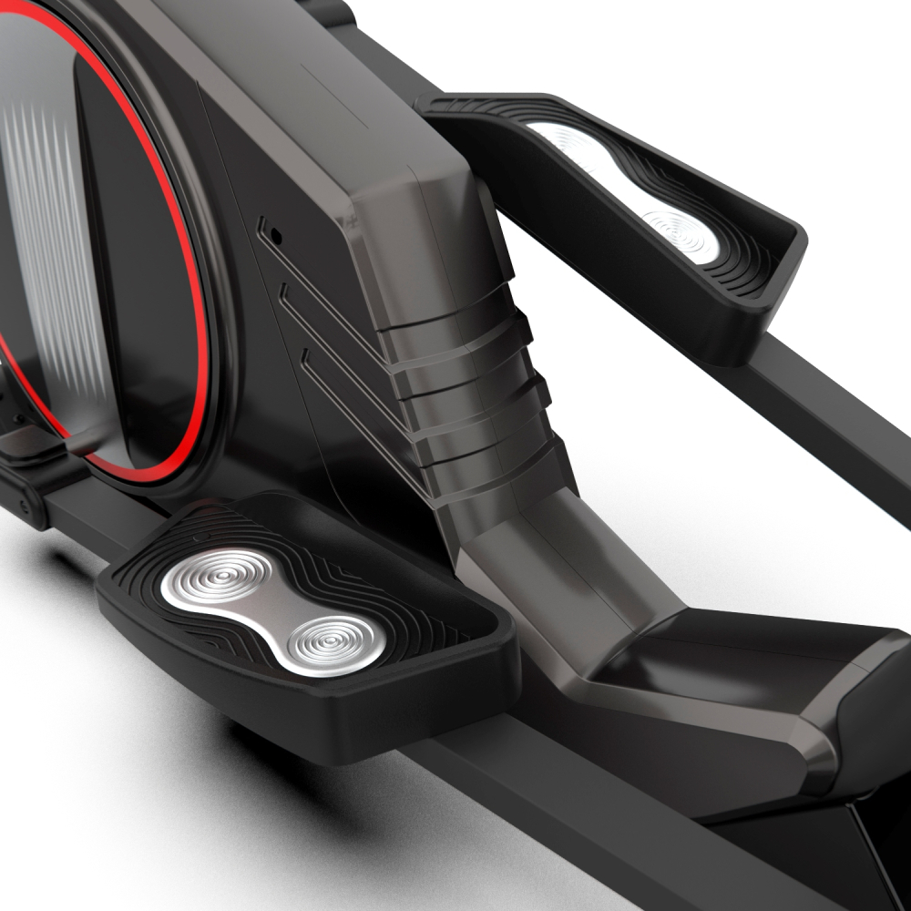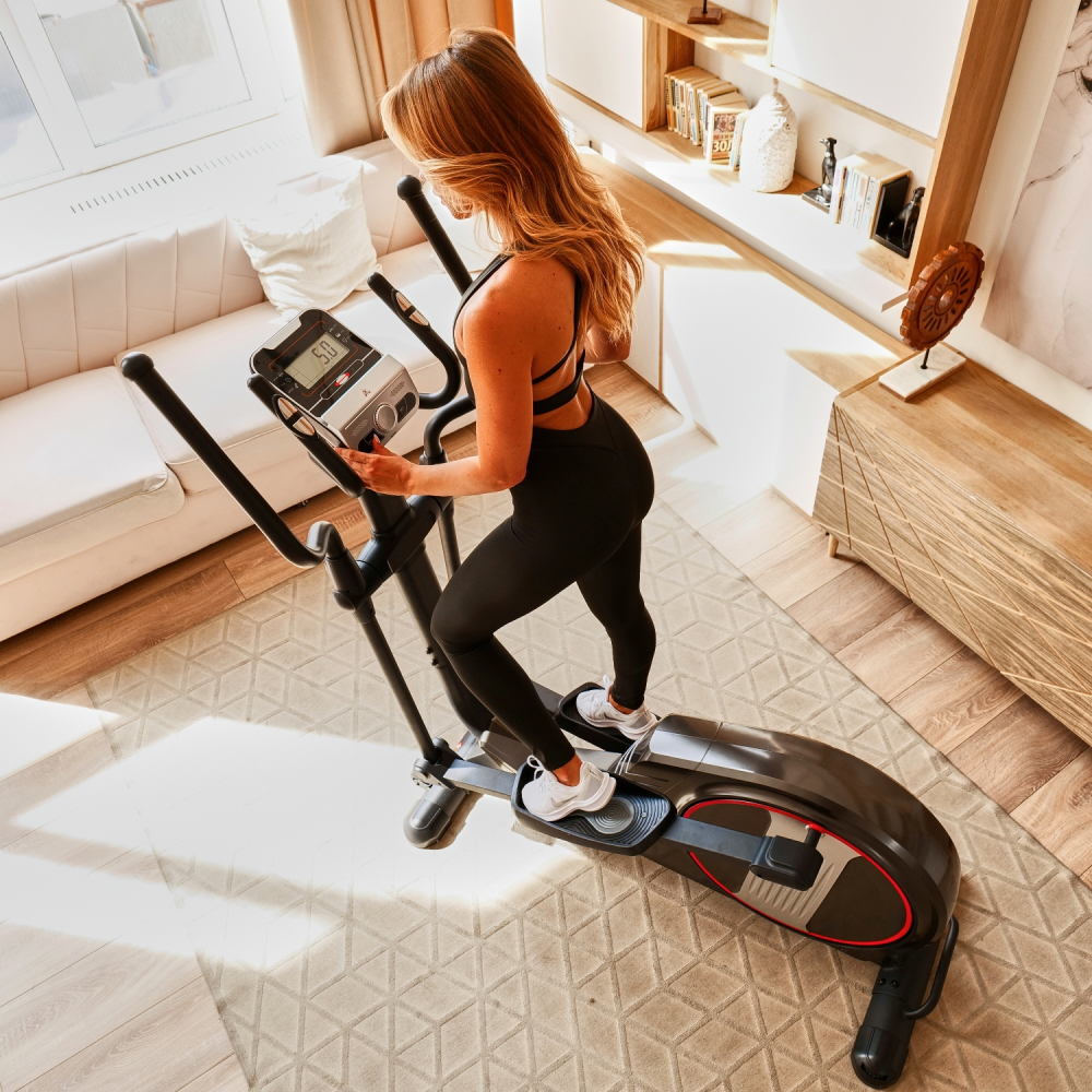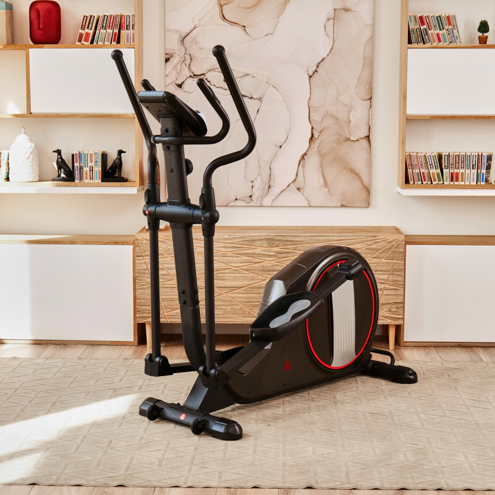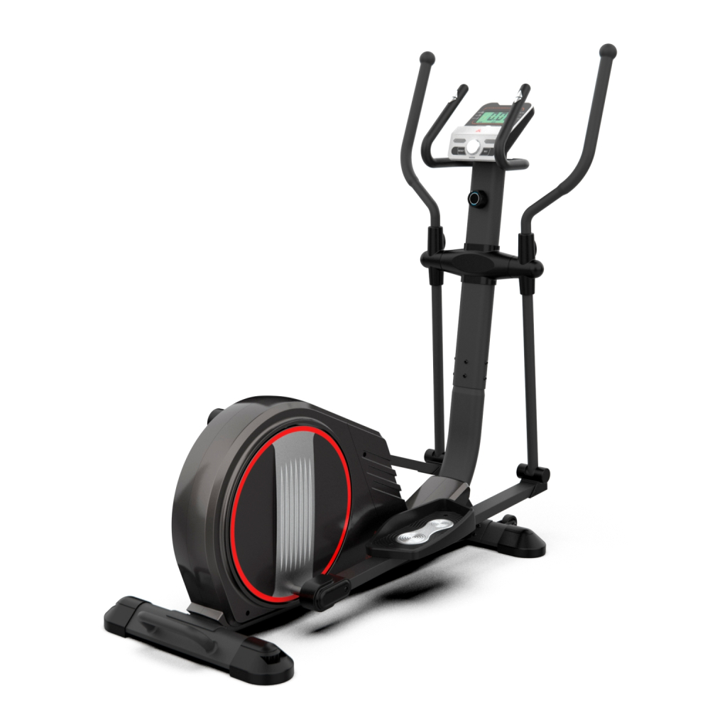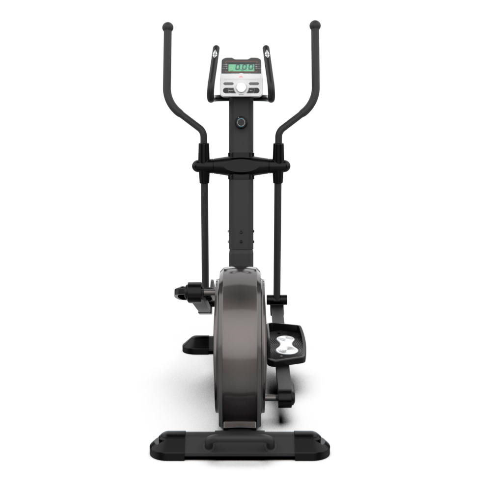 Эллиптический тренажер с задним расположением маховика для домашнего использования. Тренировка на эллиптическом тренажере - это прекрасная альтернатива бегу трусцой или ходьбе, с разницей в высоком сжигании калорий. Благодаря интенсивному движению рук верхние участки тела напрягаются, все тело укрепляется, повышается эффективность тренировки. Среднегабаритная модель с магнитной нагрузкой - система сопротивления с постоянным магнитом и тончайшей настройкой интенсивности. Регулировка нагрузки с помощью ручного привода на стойке тренажера. Консоль с монохромным LCD-дисплеем отображает все необходимые показатели во время тренировки. Измерение пульса осуществляется с помощью встроенных датчиков. Мощная рама тренажера ,усиленная конструкция из стального профиля, позволит заниматься пользователю весом до 120 кг. Широкие педали с нескользящей вставкой. Транспортировочные колеса в передней части обеспечивают свободное перемещение тренажера по комнате. Задний стабилизатор с регулировкой положения на неровной поверхности. Показания консоли : время, расстояние, количество сожженных калорий, скорость, пульс