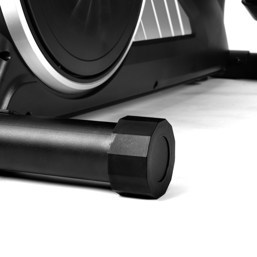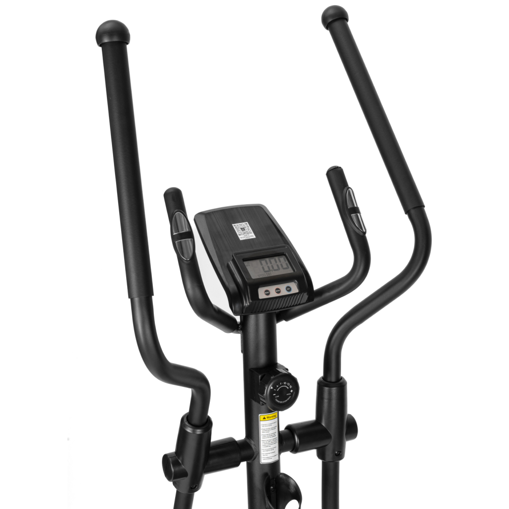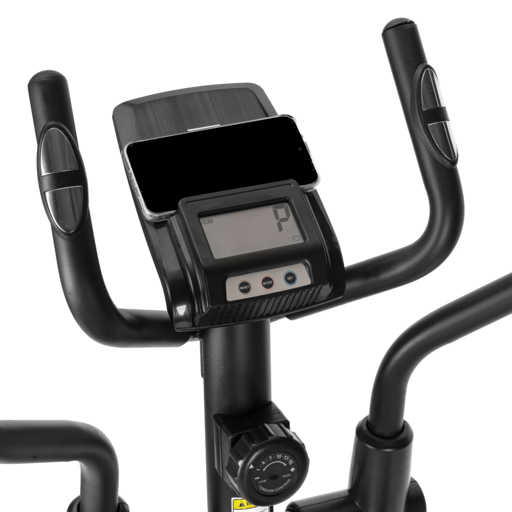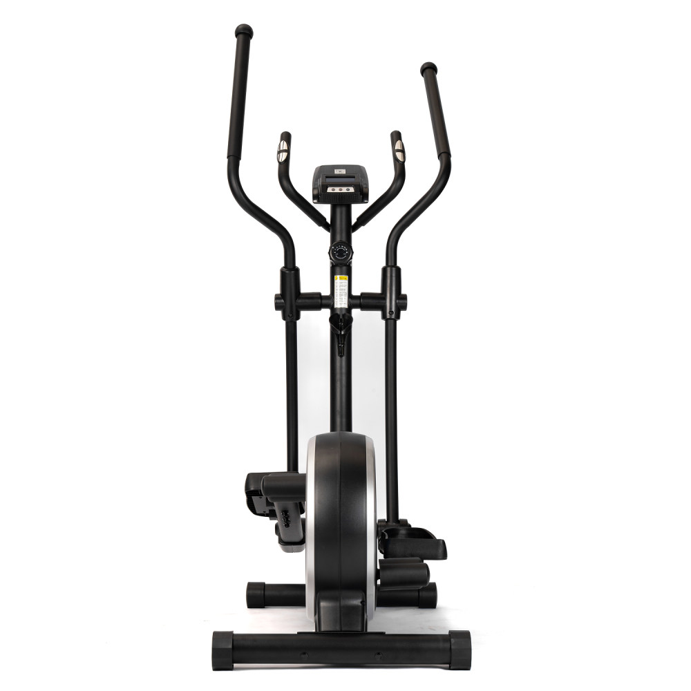 Эллиптический тренажёр DFC Merach SQ-2316B — удобный и функциональный эллиптический тренажер для дома, предназначенный для комфортных и эффективных кардио-тренировок. Во время тренировки активно работают мышцы ног, а также мышцы рук, плечевого пояса и корпуса, что делает занятия на эллипсоиде комплексными и эффективными. Модель способна выдержать пользователя весом до 160 кг. Тренажёр оснащён магнитной системой нагрузки с инерционным весом маховика 10 кг. Механическая регулировка сопротивления с 16 уровнями нагрузки позволяет подобрать оптимальную интенсивность тренировки в зависимости от уровня подготовки пользователя. Рифлёные педали с нескользящей поверхностью обеспечивают надёжную фиксацию ног во время тренировки, предотвращая соскальзывание и повышая безопасность. Удобный хват во время занятий обеспечивают поручни: расстояние между длинными поручнями составляет 54,3 см, а между короткими — 22,5 см, что делает тренировку комфортной и устойчивой. Одной из особенностей модели является встроенный Bluetooth-модуль, который позволяет подключаться к мобильным приложениям Kinomap и Merach. С их помощью можно получить доступ к разнообразным тренировкам, отслеживать прогресс и использовать персональные программы занятий. Перед подключением к приложению необходимо нажать на педали более двух раз, чтобы активировать Bluetooth. Тренажёр оснащён монохромным LCD-дисплеем, который отображает основные параметры тренировки: время, дистанцию, скорость, количество сожжённых калорий, пульс, общую дистанцию и режим сканирования. Для контроля состояния организма во время тренировки на поручнях установлены сенсорные датчики пульса. Дисплей работает от двух батареек типа AA (в комплект не входят). Эллипсоид стоит устойчиво благодаря компенсаторам неровности пола, легко перемещается на транспортировочных роликах, а подставка под планшет и держатель для бутылки держат всё необходимое под рукой. Эллиптический тренажёр DFC Merach SQ-2316B сочетает в себе комфорт, функциональность и современные технологии. Такой эллипс станет отличным решением для регулярных и эффективных домашних тренировок. Гарантия на детали подверженные естественному износу в процессе эксплуатации — до 6 месяцев с момента установки тренажера при условии регулярного планового ТО. Важно: гарантия не распространяется на преждевременный износ из-за чрезмерной эксплуатации тренажера.