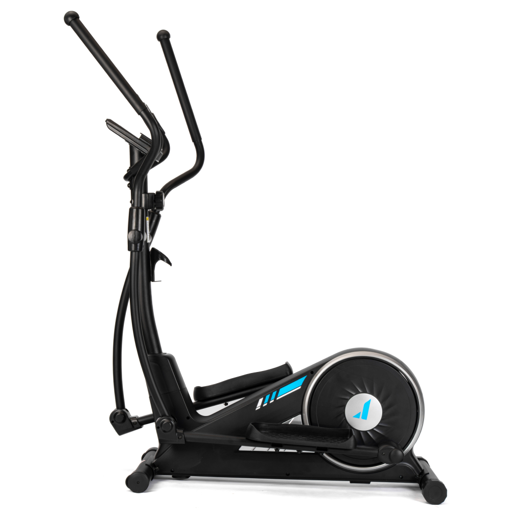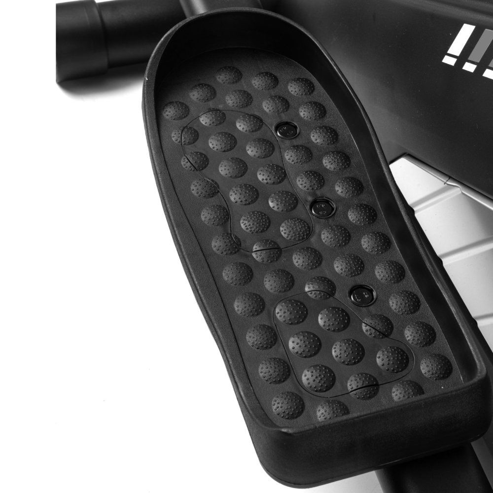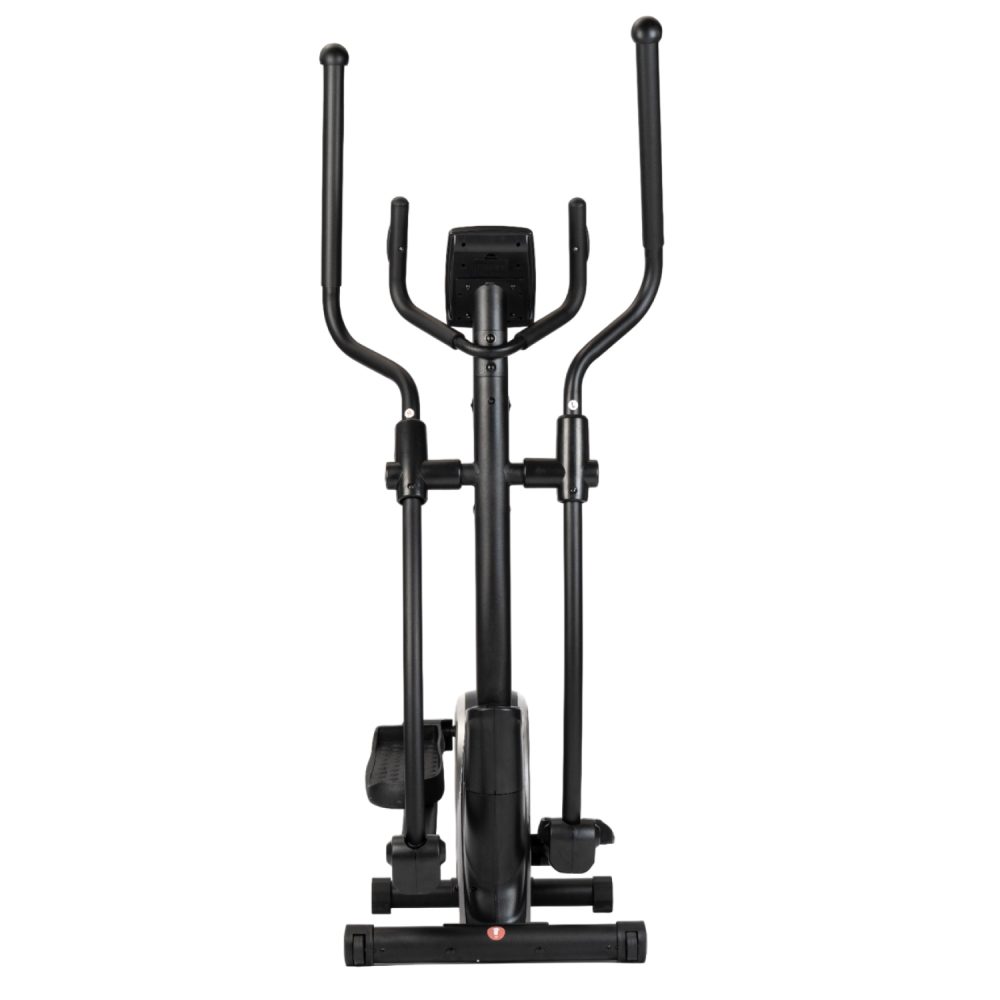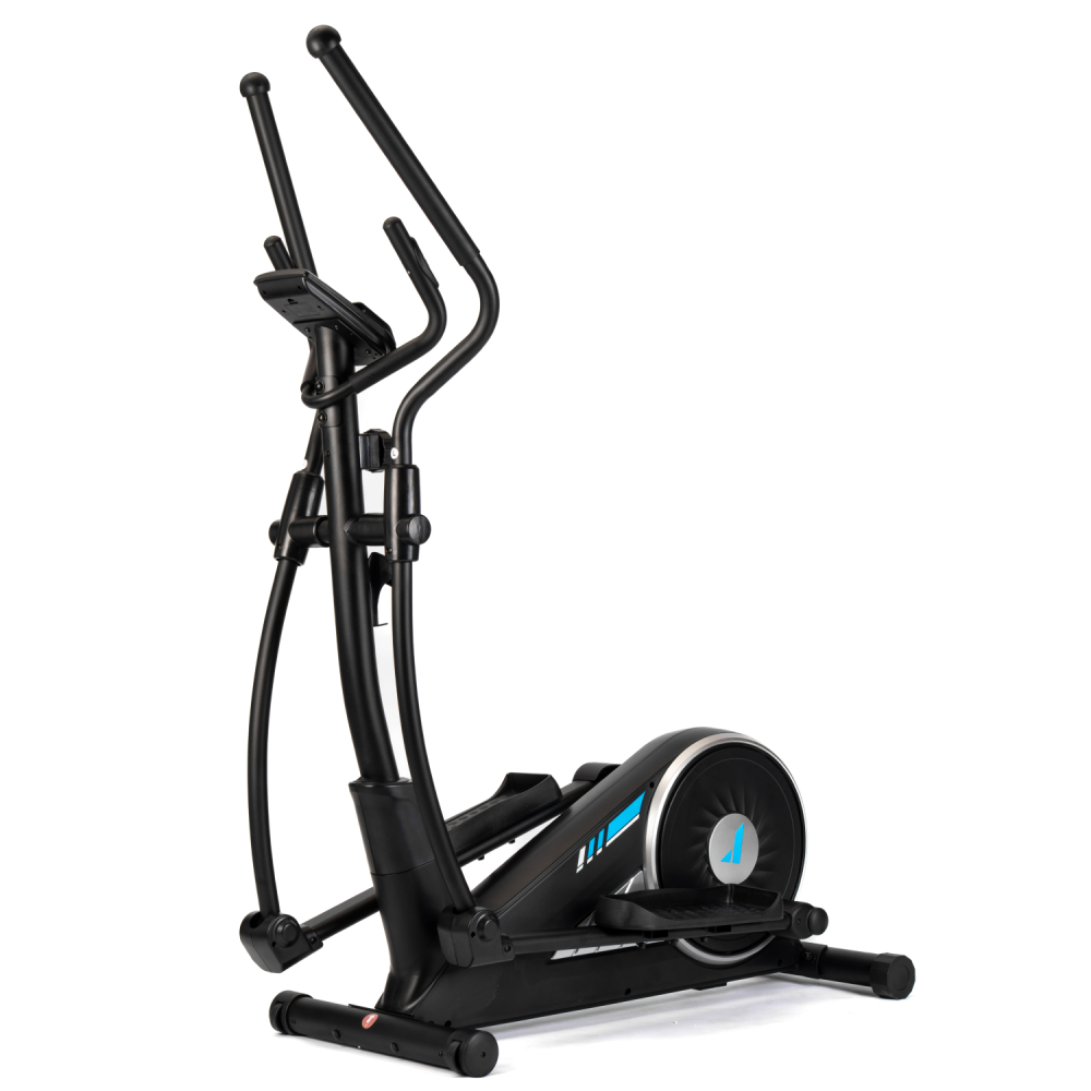 Эллиптический тренажёр DFC Merach SQ-2316B — удобный и функциональный эллиптический тренажер для дома, предназначенный для комфортных и эффективных кардио-тренировок. Во время тренировки активно работают мышцы ног, а также мышцы рук, плечевого пояса и корпуса, что делает занятия на эллипсоиде комплексными и эффективными. Модель способна выдержать пользователя весом до 160 кг. Тренажёр оснащён магнитной системой нагрузки с инерционным весом маховика 10 кг. Механическая регулировка сопротивления с 16 уровнями нагрузки позволяет подобрать оптимальную интенсивность тренировки в зависимости от уровня подготовки пользователя. Рифлёные педали с нескользящей поверхностью обеспечивают надёжную фиксацию ног во время тренировки, предотвращая соскальзывание и повышая безопасность. Удобный хват во время занятий обеспечивают поручни: расстояние между длинными поручнями составляет 54,3 см, а между короткими — 22,5 см, что делает тренировку комфортной и устойчивой. Одной из особенностей модели является встроенный Bluetooth-модуль, который позволяет подключаться к мобильным приложениям Kinomap и Merach. С их помощью можно получить доступ к разнообразным тренировкам, отслеживать прогресс и использовать персональные программы занятий. Перед подключением к приложению необходимо нажать на педали более двух раз, чтобы активировать Bluetooth. Тренажёр оснащён монохромным LCD-дисплеем, который отображает основные параметры тренировки: время, дистанцию, скорость, количество сожжённых калорий, пульс, общую дистанцию и режим сканирования. Для контроля состояния организма во время тренировки на поручнях установлены сенсорные датчики пульса. Дисплей работает от двух батареек типа AA (в комплект не входят). Эллипсоид стоит устойчиво благодаря компенсаторам неровности пола, легко перемещается на транспортировочных роликах, а подставка под планшет и держатель для бутылки держат всё необходимое под рукой. Эллиптический тренажёр DFC Merach SQ-2316B сочетает в себе комфорт, функциональность и современные технологии. Такой эллипс станет отличным решением для регулярных и эффективных домашних тренировок. Гарантия на детали подверженные естественному износу в процессе эксплуатации — до 6 месяцев с момента установки тренажера при условии регулярного планового ТО. Важно: гарантия не распространяется на преждевременный износ из-за чрезмерной эксплуатации тренажера.