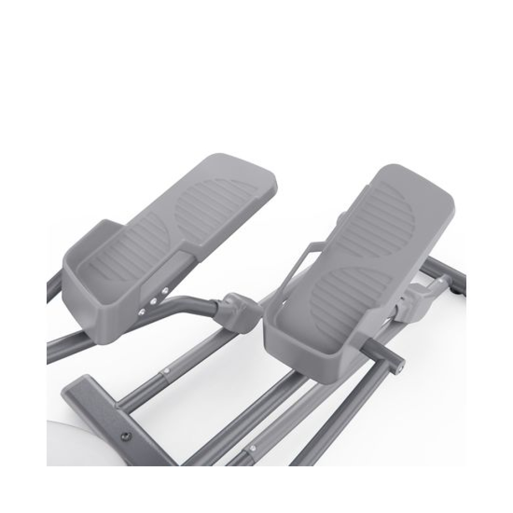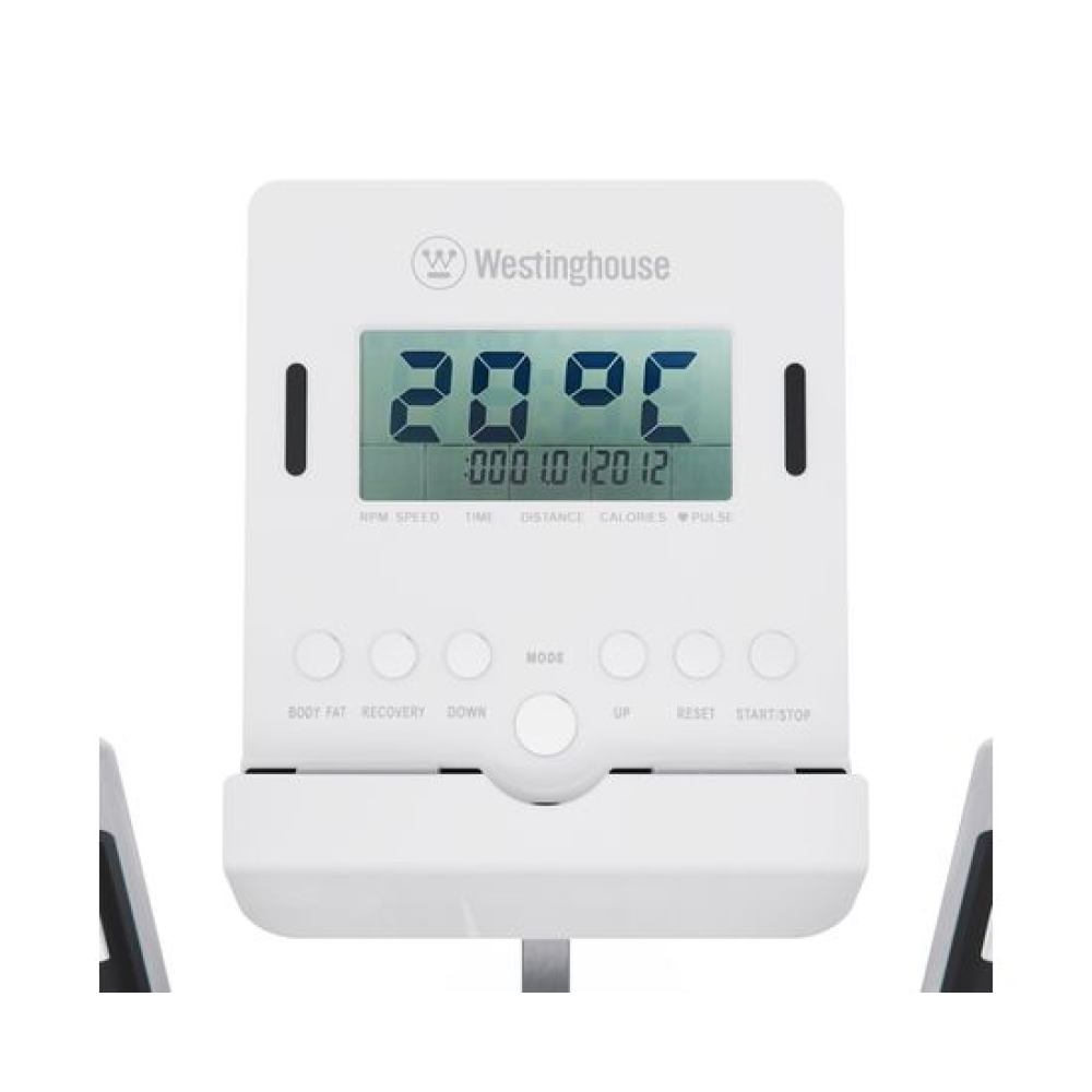 Эллиптический тренажёр DFC Westinghouse WE13M-WH — это мощный и удобный кардио тренажёр, созданный специально для домашнего использования. Он обеспечивает полноценную аэробную нагрузку на все группы мышц без ударной нагрузки на суставы, помогает сжигать калории, развивать выносливость и улучшать сердечно-сосудистую систему.Модель способна выдержать пользователя весом до 120 кг. Тренажёр оснащён магнитной системой нагрузки, которая обеспечивает надёжную и плавную регулировку сопротивления. Механическая регулировка с 8 уровнями нагрузки позволяет легко подобрать оптимальную интенсивность тренировки, а увеличенный инерционный вес маховика 15 кг способствует плавной и стабильной работе тренажёра, создавая комфортные условия для длительных и эффективных тренировок.Нескользящие педали обеспечивают отличное сцепление даже при интенсивных занятиях. Они просторные, устойчивые и предотвращают проскальзывание стоп, обеспечивая дополнительную безопасность. Длина шага составляет 51 см, что позволяет комфортно тренироваться как высоким, так и невысоким пользователям, делая движение естественным и эффективным.Все данные отображаются на LCD-дисплее, где вы можете отслеживать ключевые параметры: сканирование, скорость, темп, время, дистанцию, калории и пульс. Для удобного контроля за состоянием организма во время тренировки на поручнях установлены сенсорные датчики пульса. В комплекте две батарейки типа АА.Для устойчивости тренажёр оснащён компенсаторами неровности пола, благодаря которым он надёжно стоит даже на неидеальной поверхности. Встроенные транспортировочные ролики позволяют легко переместить тренажёр с места на место, что особенно удобно при использовании в ограниченном пространстве.Эллиптический тренажёр DFC Westinghouse WE13M-WH — это оптимальное сочетание надёжности, комфорта и функциональности. Тренажёр продуман до мелочей: есть держатель для бутылки, чтобы вода всегда была под рукой, и держатель для планшета или телефона, позволяющий смотреть видео или слушать музыку во время тренировки.Гарантия на детали подверженные естественному износу в процессе эксплуатации — до 6 месяцев с момента установки тренажера при условии регулярного планового ТО. Важно: гарантия не распространяется на преждевременный износ из-за чрезмерной эксплуатации тренажера.