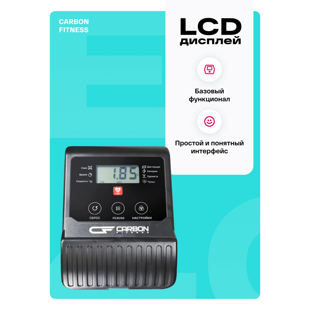 CARBON FITNESS E40 оснащен LCD консолью, на которой отображаются все важные параметры: время, скорость, дистанция, калории и пульс. Тренажер предлагает ручной режим тренировок, что позволяет легко адаптировать занятия под ваши индивидуальные цели. Также предусмотрена подставка для планшета или смартфона, что позволяет оставаться на связи во время тренировки. Эллиптический тренажер CARBON FITNESS E40 — это надежный и удобный инструмент для поддержания физической активности и достижения ваших фитнес-целей в домашних условиях!
