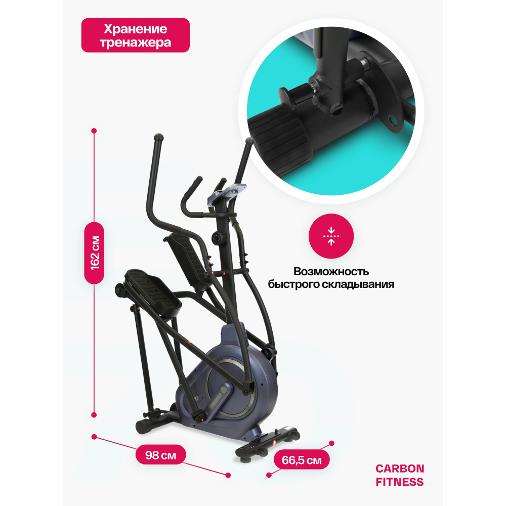 Этот тренажер — не только мощный инструмент для фитнеса, но и стильное решение для дома. Компактные размеры и складная конструкция (всего 98x65,5x162 см в сложенном виде) делают его идеальным выбором даже для небольших помещений. Мягкие поручни с эргономичным дизайном и антискользящие педали обеспечат комфорт и безопасность на каждом этапе вашей тренировки.