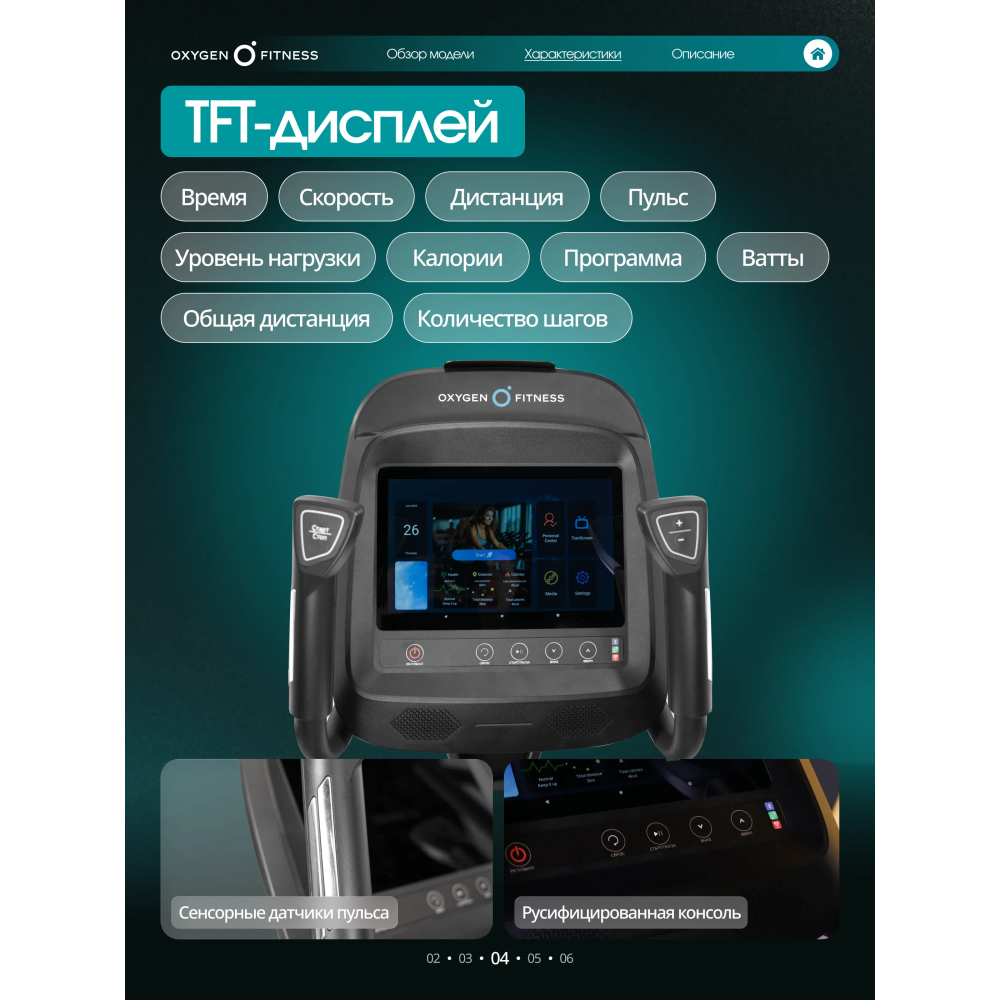 Тренажёр оснащён современной TFT-консолью с расширенным набором показателей: