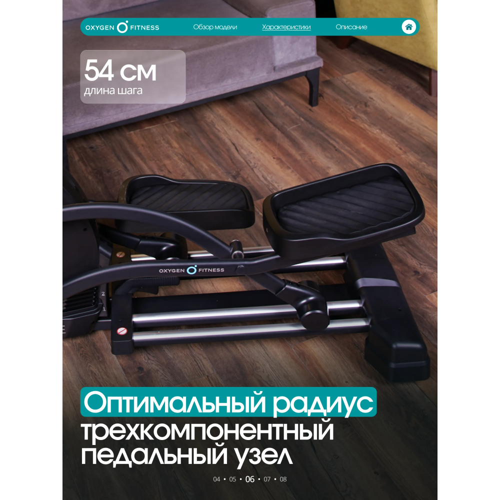 Технические характеристики Эллиптический тренажер домашний OXYGEN FITNESS AZURE