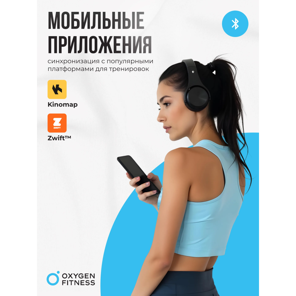 • интеграция с приложениями: Bluetooth позволяет подключаться к мобильным приложениям Kinomap™ и Zwift™, улучшая качество тренировок;