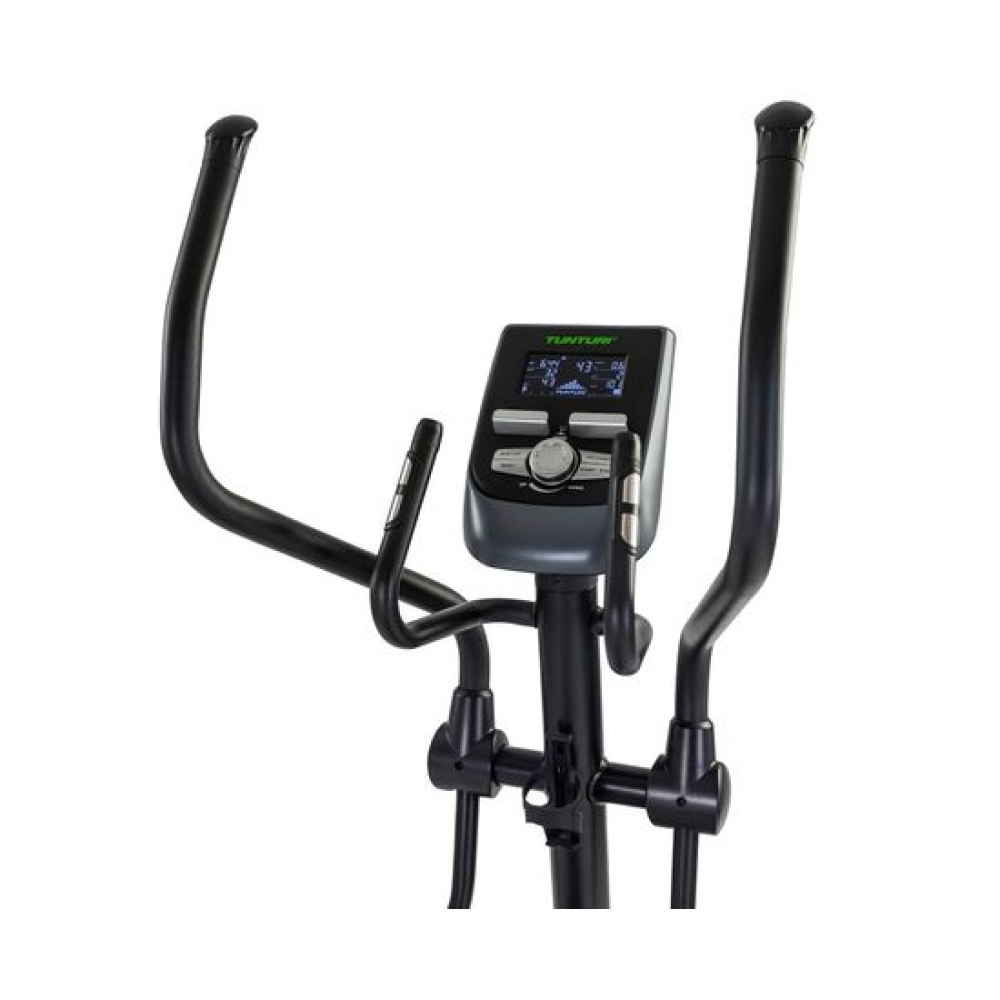 Эллиптический тренажер TUNTURI PERFORMANCE C55 – это отличное решение для тех, кто стремится к улучшению здоровья и физической формы в комфортной обстановке своего дома! Этот высококачественный тренажёр с передним приводом сочетает в себе современные технологии и удобство использования, что делает его идеальным выбором для пользователей всех уровней подготовки.Максимальный вес пользователя составляет 135 кг. Инерционный вес маховика 15 кг создает плавное движение и повышает эффективность каждой тренировки. Сенсорные датчики на поручнях помогают отслеживать сердечную активность, а эргономичные ручки и удобные педали обеспечивают комфорт во время тренировок.Электромагнитная система обеспечивает плавное и бесшумное изменение уровней сопротивления (32 уровня). Это позволяет легко адаптировать тренировку под свои цели, выбирая подходящую интенсивность. Увеличенная длина шага 50 см и Q-фактор 5 см создают комфортные и естественные движения, благодаря чему прорабатываются основные группы мышц, снижая риск травм и обеспечивая более глубокую проработку мышц ног и ягодиц.LCD дисплей 5,5" с возможностью изменения угла наклона отображает такие показатели, как время, скорость, об/мин, расстояние, калории, ИМТ, нагрузка, пульс. Встроенный эргометр контролирует и замеряет производимую мощность. Тренажер также включает 21 встроенную программу, включая режимы: быстрый старт, ручной, целевые с контролем ЧСС/нагрузки и пользовательские. Возможность интеграции с приложением Tunturi Routes при помощи Bluetooth позволяет отслеживать свои результаты и делает тренировки более интерактивными и увлекательными, а также помогает поддерживать мотивацию.Тренажер имеет удобный держатель для бутылки, что позволяет всегда иметь под рукой воду во время тренировки, а благодаря подставке под планшет вы можете смотреть видео или слушать музыку в процессе тренировок. Транспортировочные ролики позволяют тренироваться где угодно и легко перемещать тренажор.
