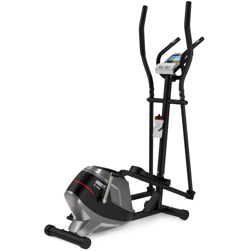 Электромагнитный эллиптический тренажер для дома UNIX Fit SL 350E идеален для поддержания отличной физической формы, похудения, укрепления сердечно-сосудистой системы и повышения выносливости.. . Принцип функционирования электромагнитного эллиптического тренажера заключается во взаимодействии между маховиком (инерционный вес 16,5 кг) и индуктивной катушкой. Подвижный магнит отсутствует. Для изменения уровня сопротивления достаточно нажать соответствующую клавишу на консоли управления: увеличение силы тока повышает нагрузку, уменьшение — снижает ее, облегчая вращение педалей. Процесс регулировки отличается быстротой, плавностью и бесшумностью, позволяя выбирать именно тот уровень интенсивности, который подходит именно вам.. . Для удобства контроля прогресса предусмотрен информативный дисплей, показывающий продолжительность тренировки, количество сожженных калорий, пройденное расстояние и скорость движения. Кардио тренажер имеет подставку для смартфона или планшета, позволяющую смотреть за любимые фильмы или слушать музыку прямо во время занятий.. . Электроуправляемая система распределения нагрузки предлагает 32 уровня сложности. Оптимальная длина шага в 35 см обеспечивает правильное положение тела и минимизирует риск повреждения коленей и позвоночника. Для точности измерений предусмотрена встроенная функция эргометра, измеряющая нагрузку в ваттах (от 1 до 428 Вт). Сенсорные датчики на рукоятках позволяют быстро и удобно проверять частоту сердечных сокращений, помогая подбирать оптимальный темп упражнений.. . Но главная особенность модели SL-350E заключается в широком спектре режимов для тренировки. Здесь предусмотрена 21 программа, среди которых есть три специализированные пульсозависимые программы, ручные настройки и индивидуальные профили.. . Регулярные занятия на спортивном тренажере для фитнеса помогают сжигать жир, укреплять мышцы ног и рук, ягодиц, спины, пресса, повышая общий тонус организма. Это отличный вариант кардионагрузки, обеспечивающий комплексное воздействие на тело и поддерживающий здоровье сердечно-сосудистой системы.. . Универсальность эллипсоида впечатляет: независимо от вашей цели — похудение, укрепление мышц ног, формирование красивой фигуры или поддержка здорового образа жизни — эллипс UNIX Fit SL-350E способен удовлетворить любые потребности. Заниматься на нем легко и приятно. Компактные размеры позволяют разместить кардиотренажер практически в любой комнате вашего дома.. . Эллипсоидный тренажер UNIX Fit SL 350E — это не просто приобретение спортивного оборудования, это инвестиция в ваше здоровье, привлекательную внешность и отличное настроение. Универсальность позволяет эффективно проработать все группы мышц, сделать тренировки продуктивными и комфортными, приближая вас к цели обрести идеальную фигуру и повысить общий уровень качества жизни . *Бутылка поставляется в комплекте. *Для данной модели подходит коврик UNIX Fit 135x75 см. .