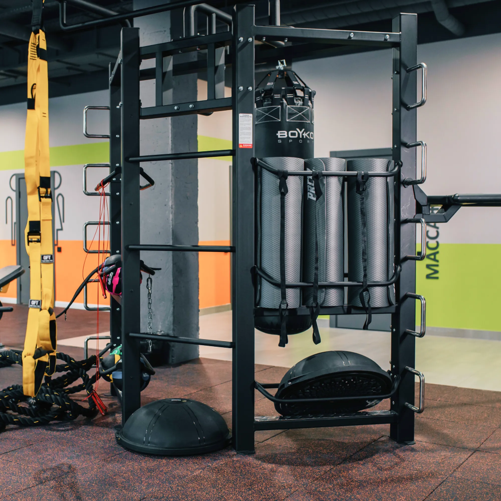 Модули включают подставки для хранения: медболов, гирь, эспандеров, скакалок, ремней (аксессуары в комплект не входят).