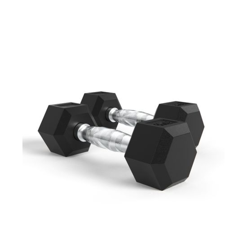 Гантель обрезиненная с хромированной ручкой. Вес гантели 3 кг, в комплекте 2 штуки (пара).Ручка с насечками для предотвращения скольжения.Гексагональная гантель – обрезиненная модель удобной конструкции.Гантель имеет много граней и не катается по полу. Обрезиненная поверхность не царапает пол при ударе.Гантели используются в фитнесе, лечебной физкультуре, бодибилдинге и других спортивных тренировках.