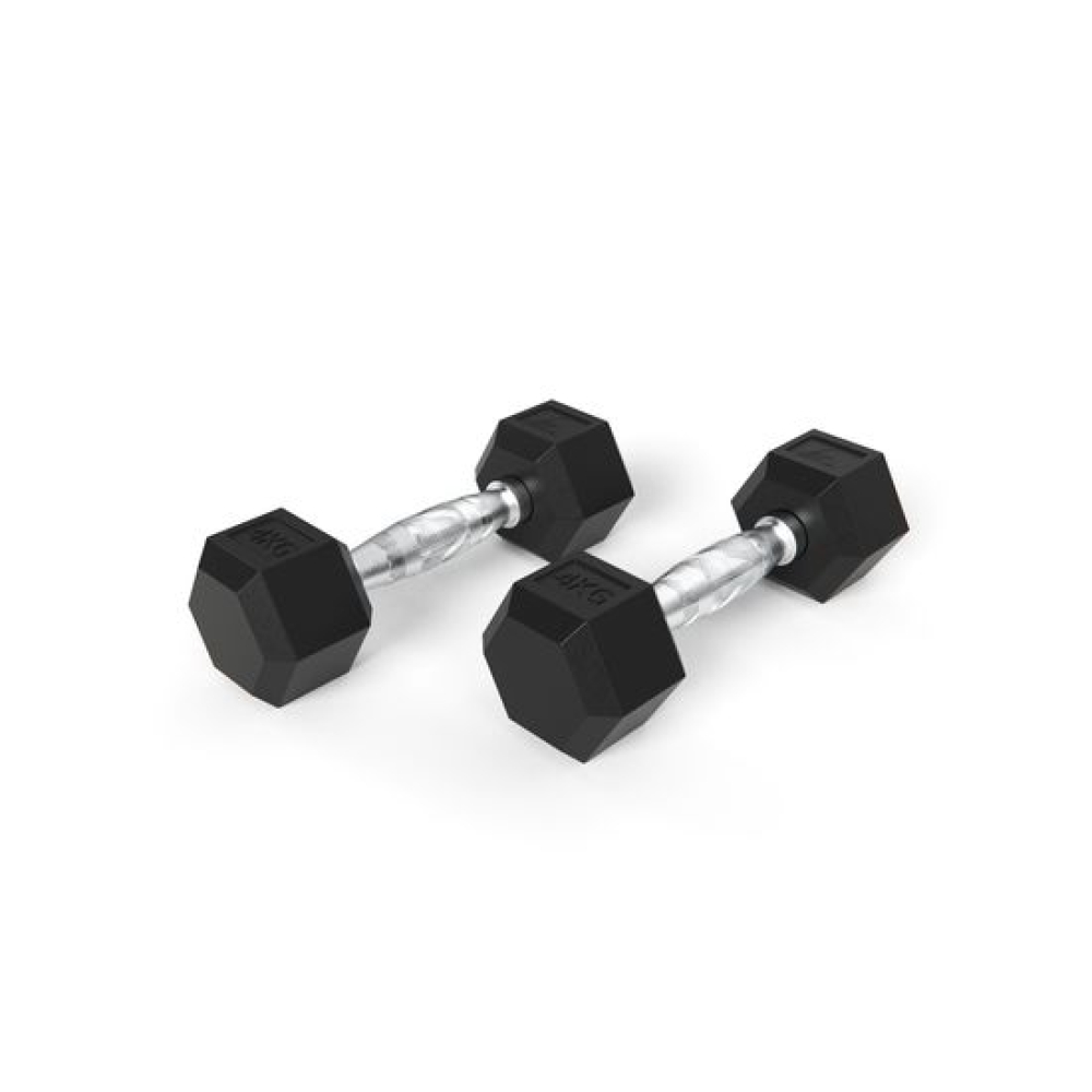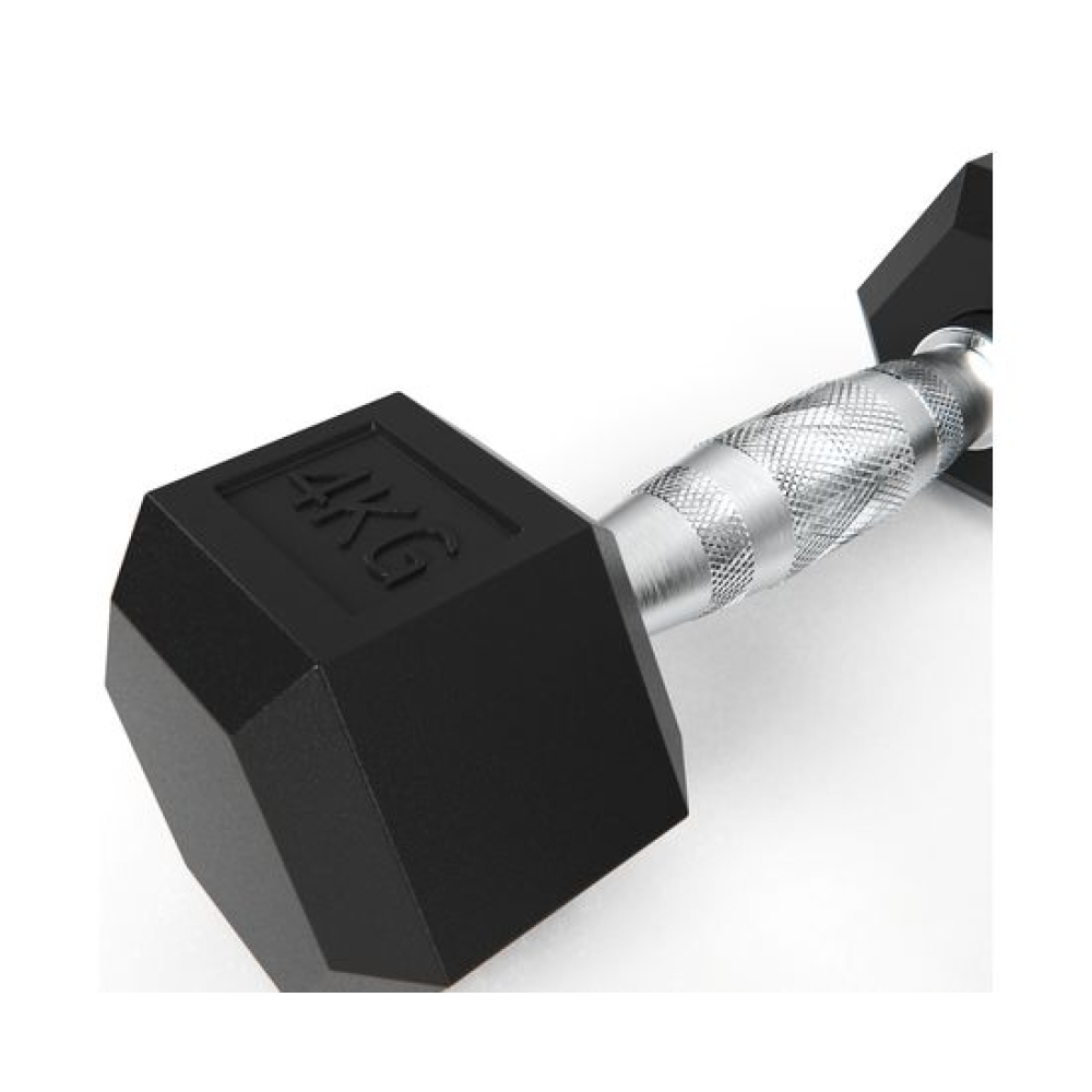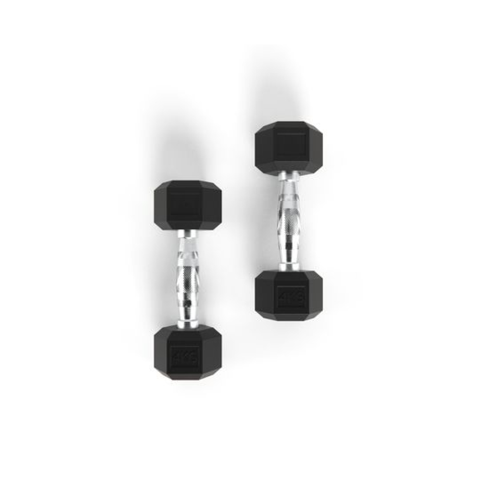 Гантель обрезиненная с хромированной ручкой. Вес гантели 4 кг, в комплекте 2 штуки (пара).Ручка с насечками для предотвращения скольжения.Гексагональная гантель – обрезиненная модель удобной конструкции.Гантель имеет много граней и не катается по полу. Обрезиненная поверхность не царапает пол при ударе.Гантели используются в фитнесе, лечебной физкультуре, бодибилдинге и других спортивных тренировках.