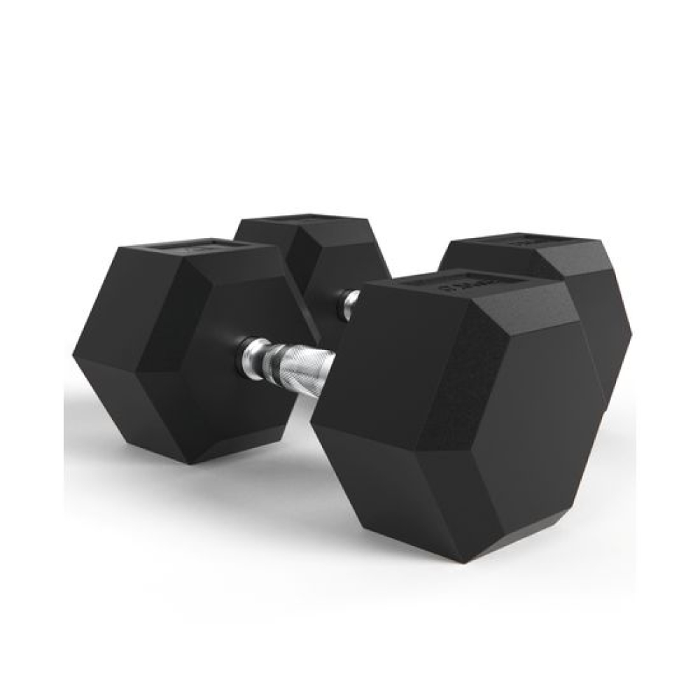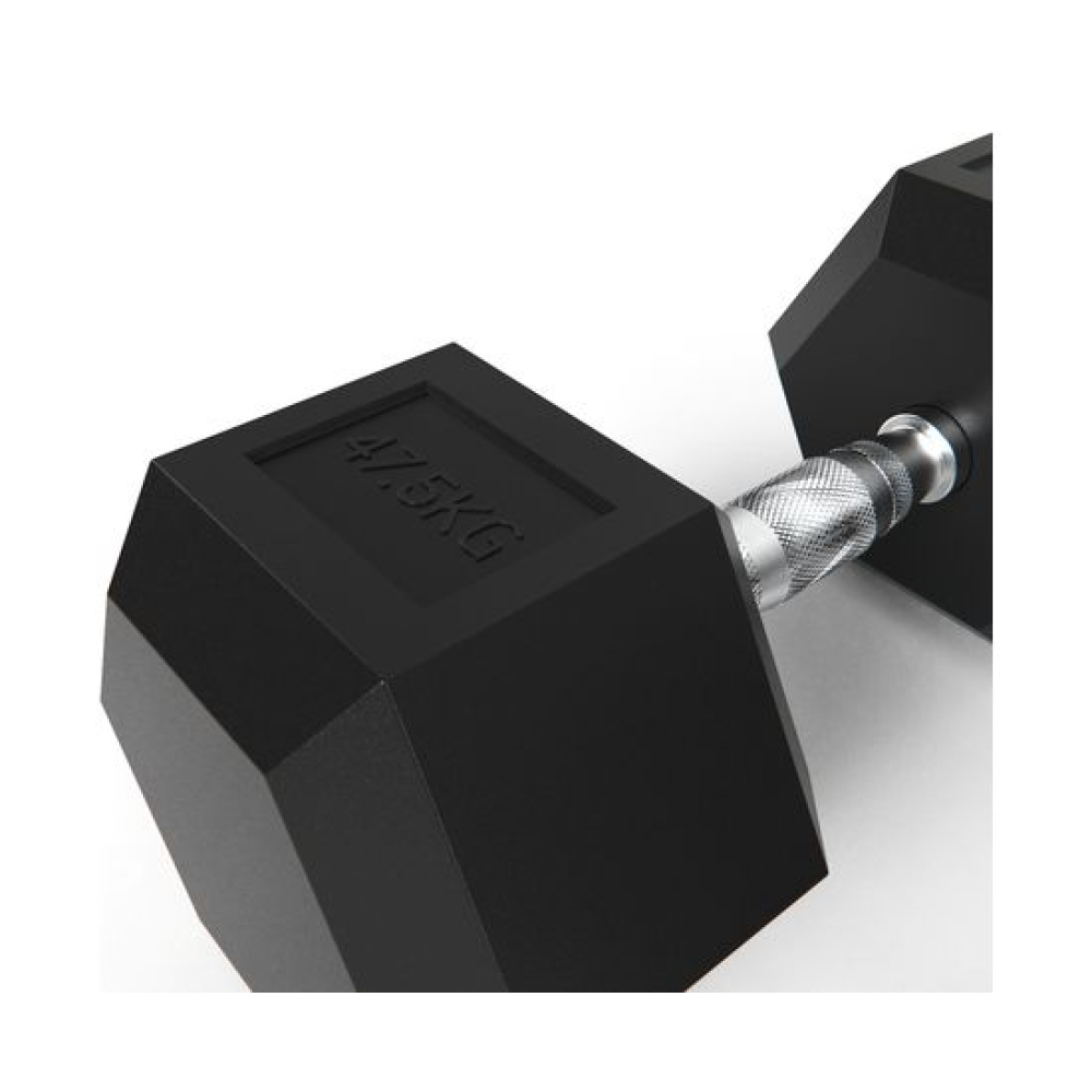 Гантель обрезиненная с хромированной ручкой. Вес гантели 47.5 кг, в комплекте 2 штуки (пара).Ручка с насечками для предотвращения скольжения.Гексагональная гантель – обрезиненная модель удобной конструкции.Гантель имеет много граней и не катается по полу. Обрезиненная поверхность не царапает пол при ударе.Гантели используются в фитнесе, лечебной физкультуре, бодибилдинге и других спортивных тренировках.