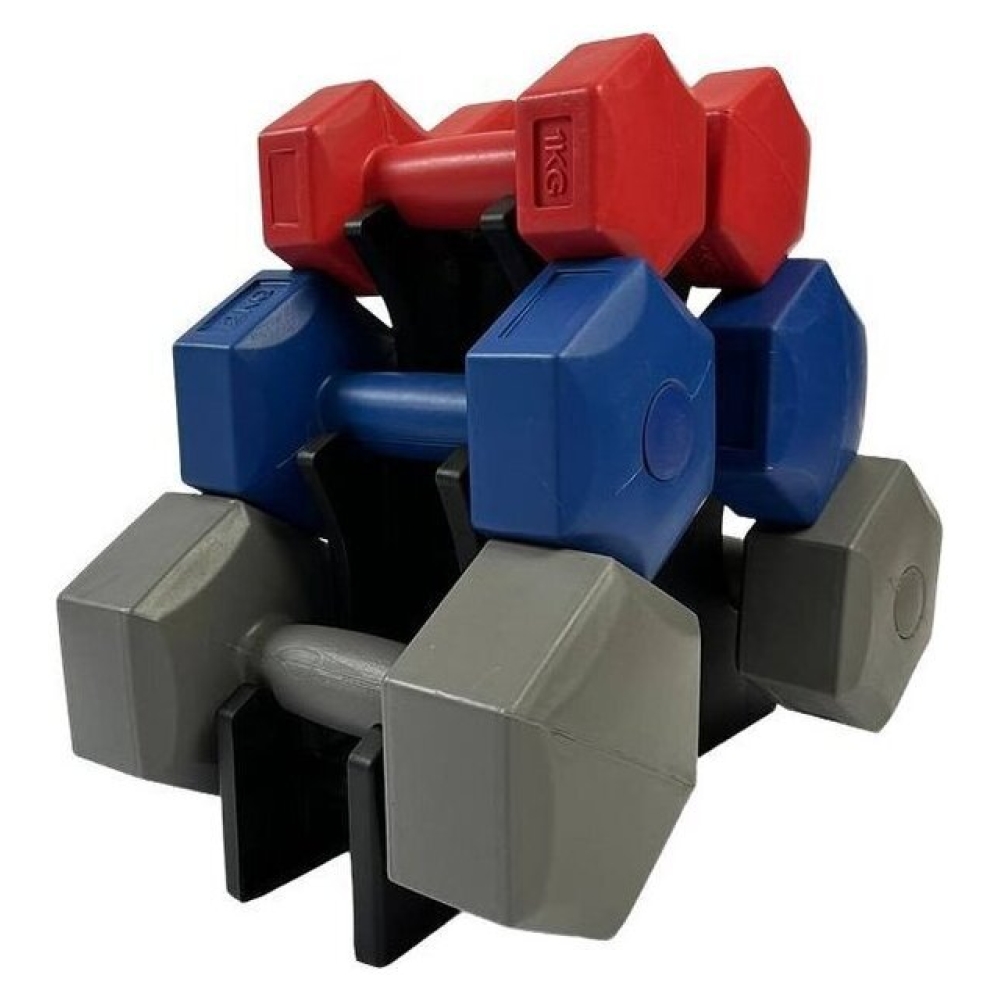 | Комплектация | - 2 гантели по 1 кг- 2 гантели по 2 кг- 2 гантели по 3 кг- подставка |