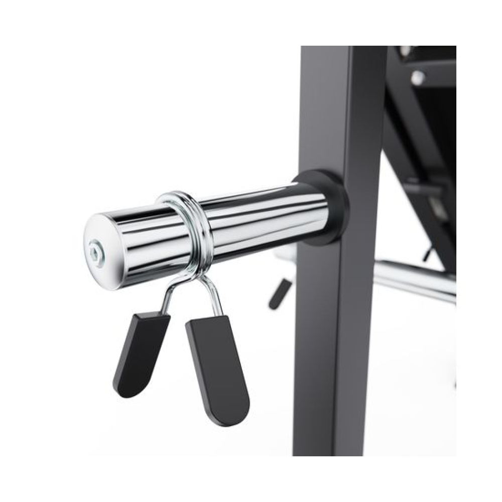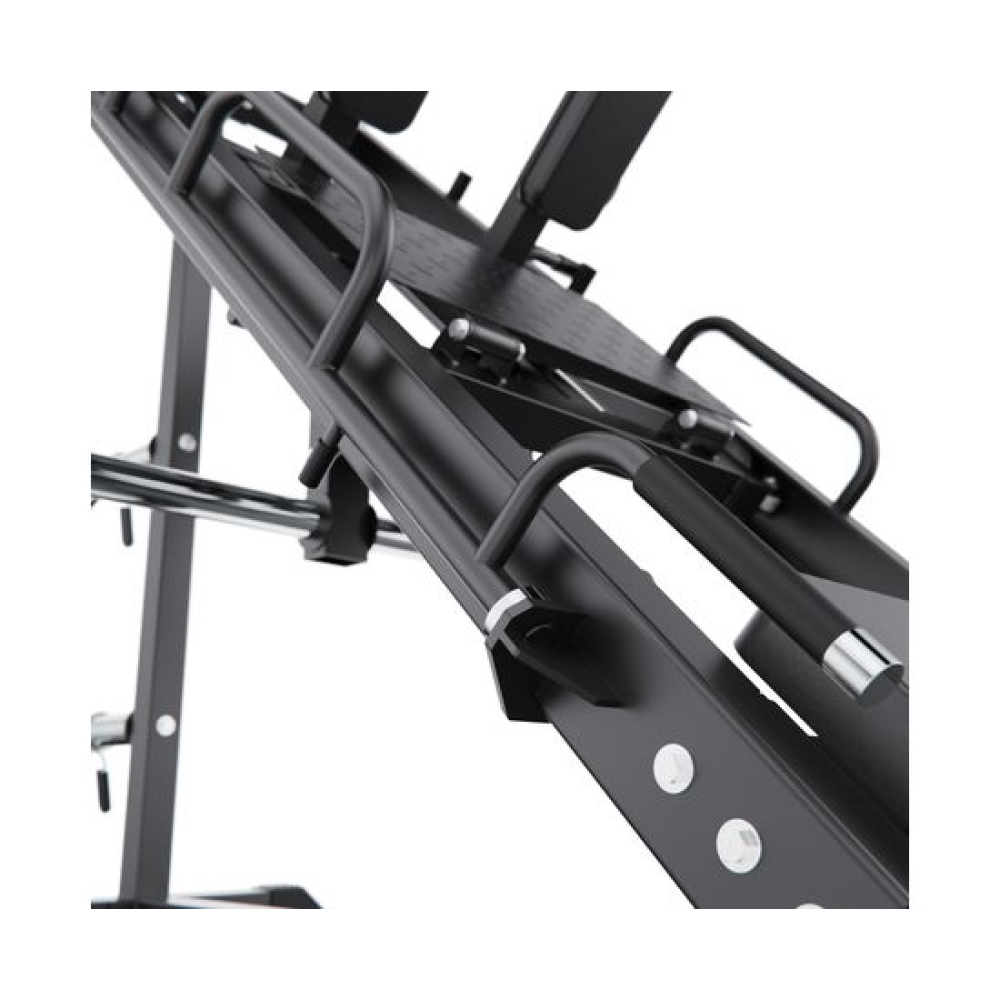 Жим ногами / Гакк-машина STEELVER SV9205 предназначена для домашнего использования и обеспечивает комфортную и эффективную тренировку нижней части тела.Конструкция тренажера рассчитана на максимальную нагрузку до 250 кг, что позволяет использовать его как новичкам, так и опытным спортсменам. Тренажер оснащён 4 посадочными местами с диаметром посадочного отверстия 50 мм, что совместимо с большинством стандартных весовых дисков.Максимальная нагрузка на узел подвешивания весовых дисков составляет 150 кг, а для хранения дисков — 75 кг. Для удобства и безопасности во время занятий установлен пружинный зажим, который надежно фиксирует диски на грифе, предотвращая их смещение. Такая конструкция обеспечивает стабильность и безопасность при тренировках с большими весами.Для комфортных и безопасных тренировок тренажёр оснащён удобной спинкой, которая надёжно поддерживает спину и помогает сохранять правильное положение тела во время выполнения упражнений. Рифлёная платформа для ног обеспечивает устойчивый упор и предотвращает соскальзывание стоп при жиме.Конструкция позволяет регулировать положение под рост пользователя, а также переставлять спинку, что даёт возможность выполнять различные упражнения в режимах жима ногами и гакк-приседаний. Тренажер имеет прочную раму с профилем 75 х 75 х 3 мм, что гарантирует надежность и долговечность конструкции.Гарантия на детали подверженные естественному износу в процессе эксплуатации — до 6 месяцев с момента установки тренажера при условии регулярного планового ТО. Важно: гарантия не распространяется на преждевременный износ из-за чрезмерной эксплуатации тренажера.